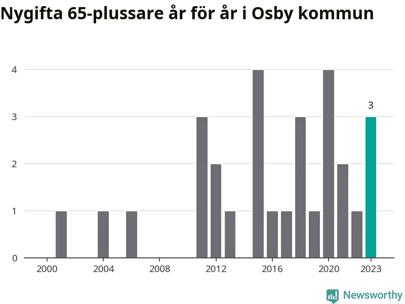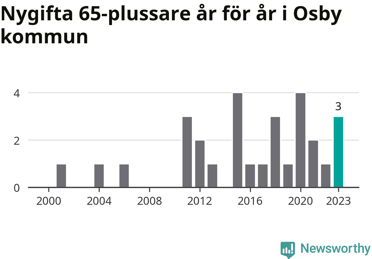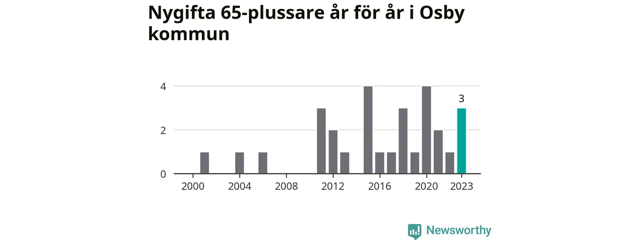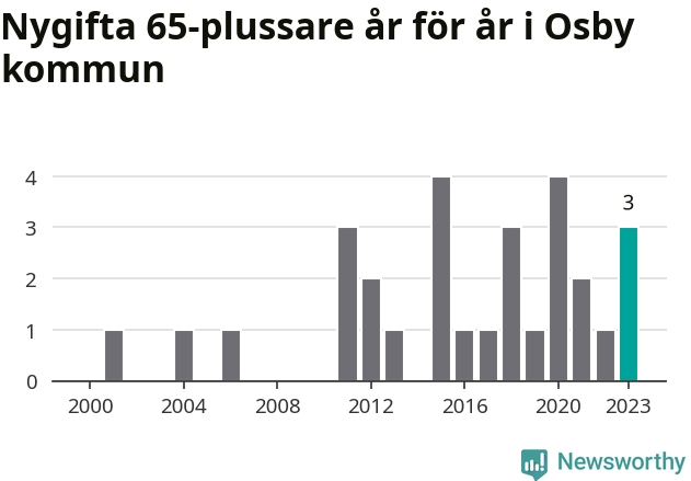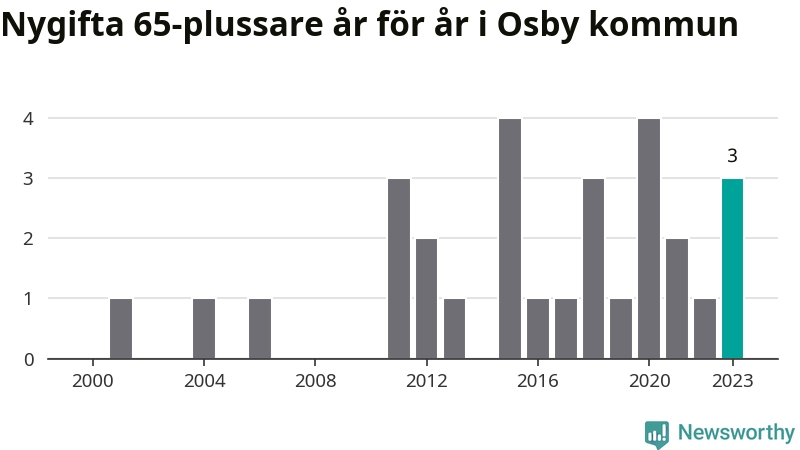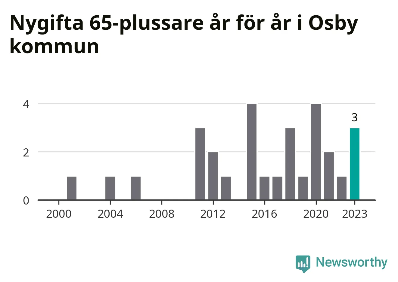 Bröllop bland 65-plussare har ökat markant i Sverige de senaste 25 åren. I Osby har antalet nygifta seniorer ökat från tre under 00-talet till 20 senaste decenniet.