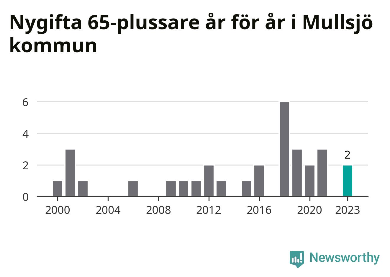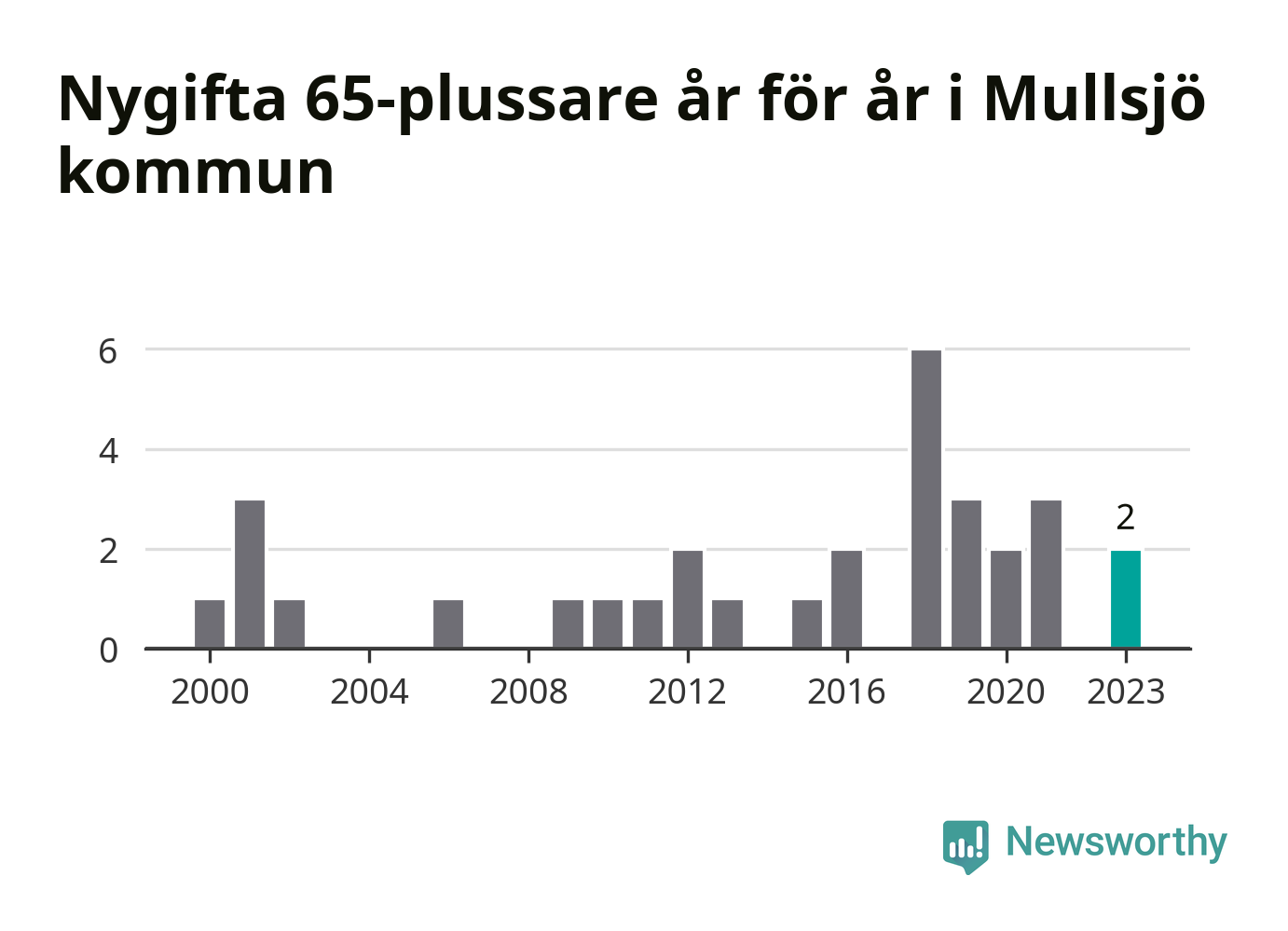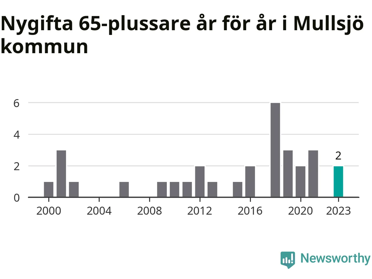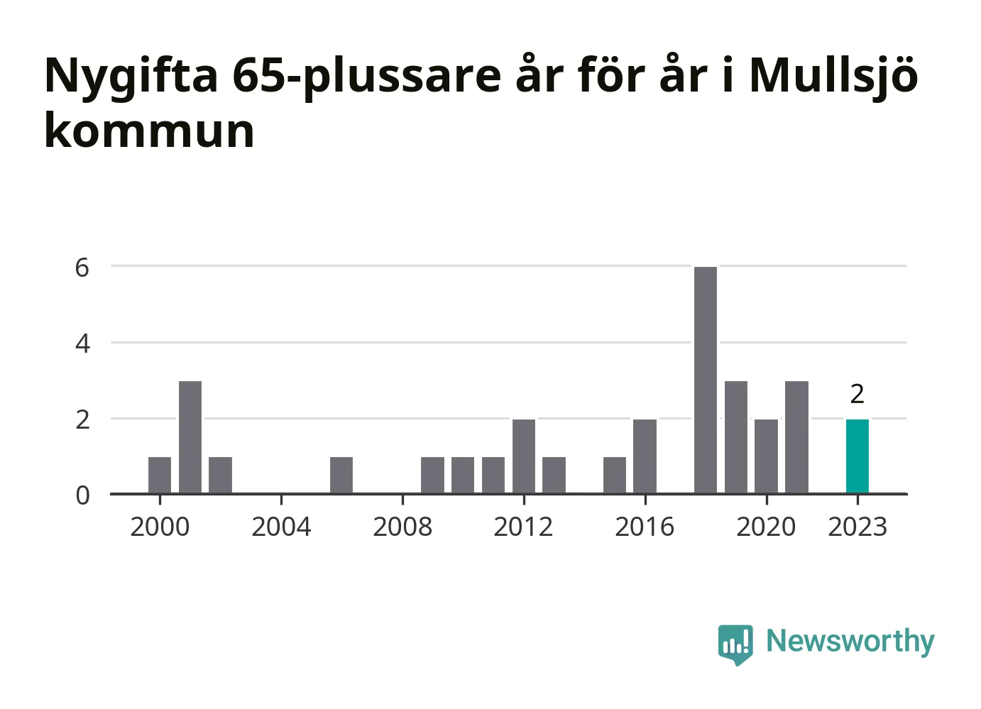 Sju personer. Så många Mullsjöbor gifte sig efter 65-årsdagen under hela 00-talet. Under det senaste decenniet, mellan 2014 och 2023, har samma siffra ökat till 19. Nästan en tredubbling, med andra ord.