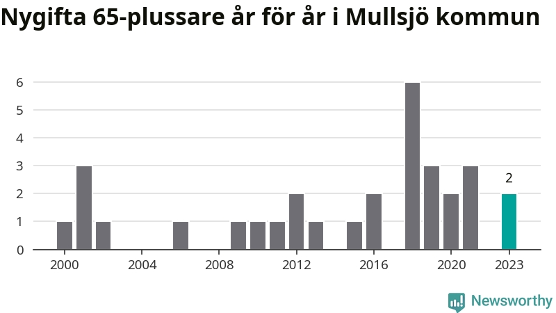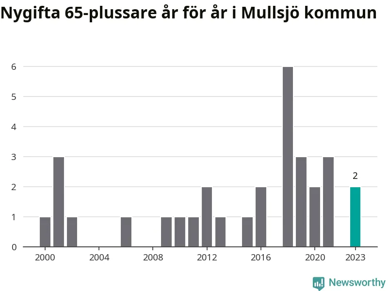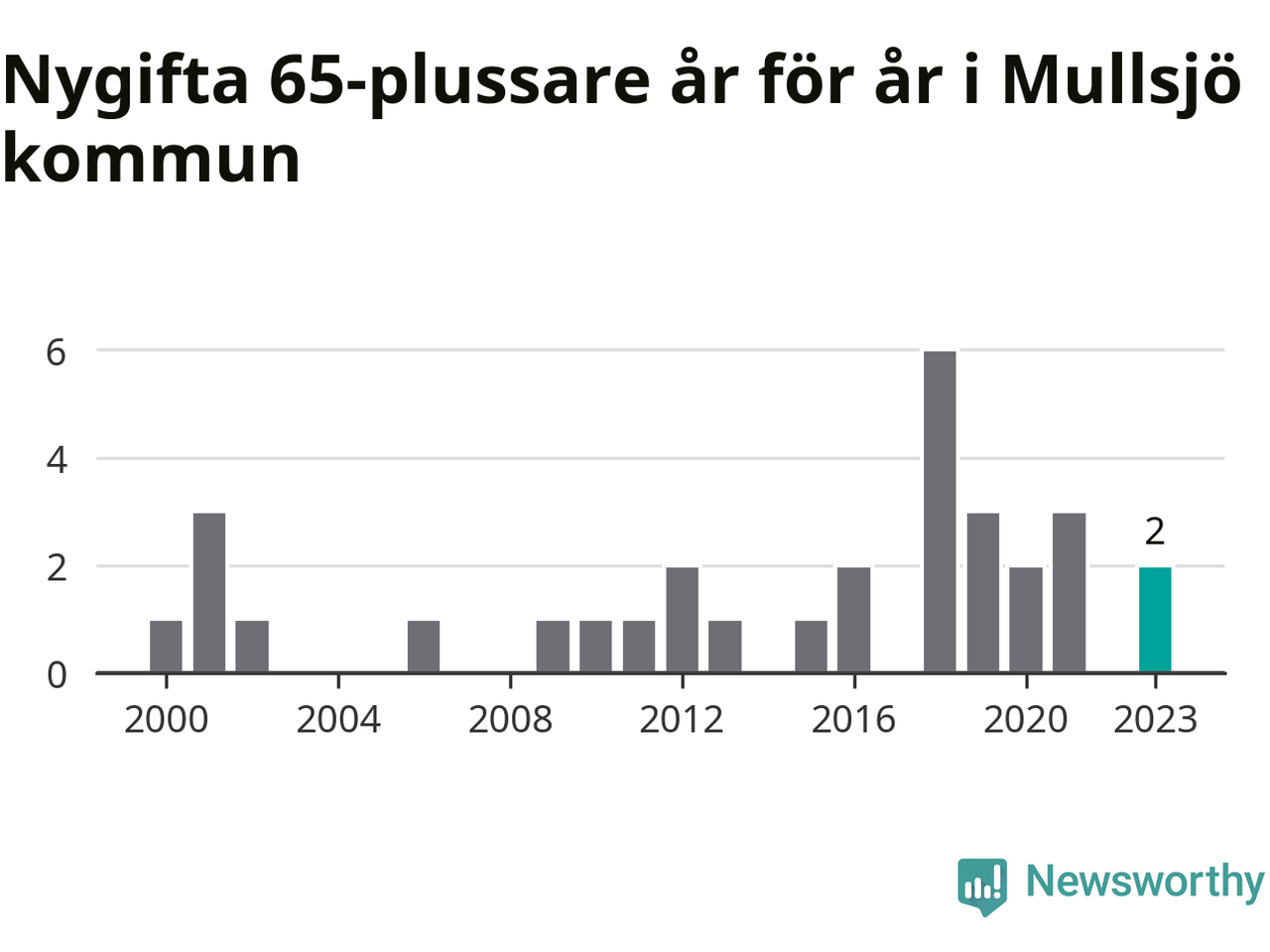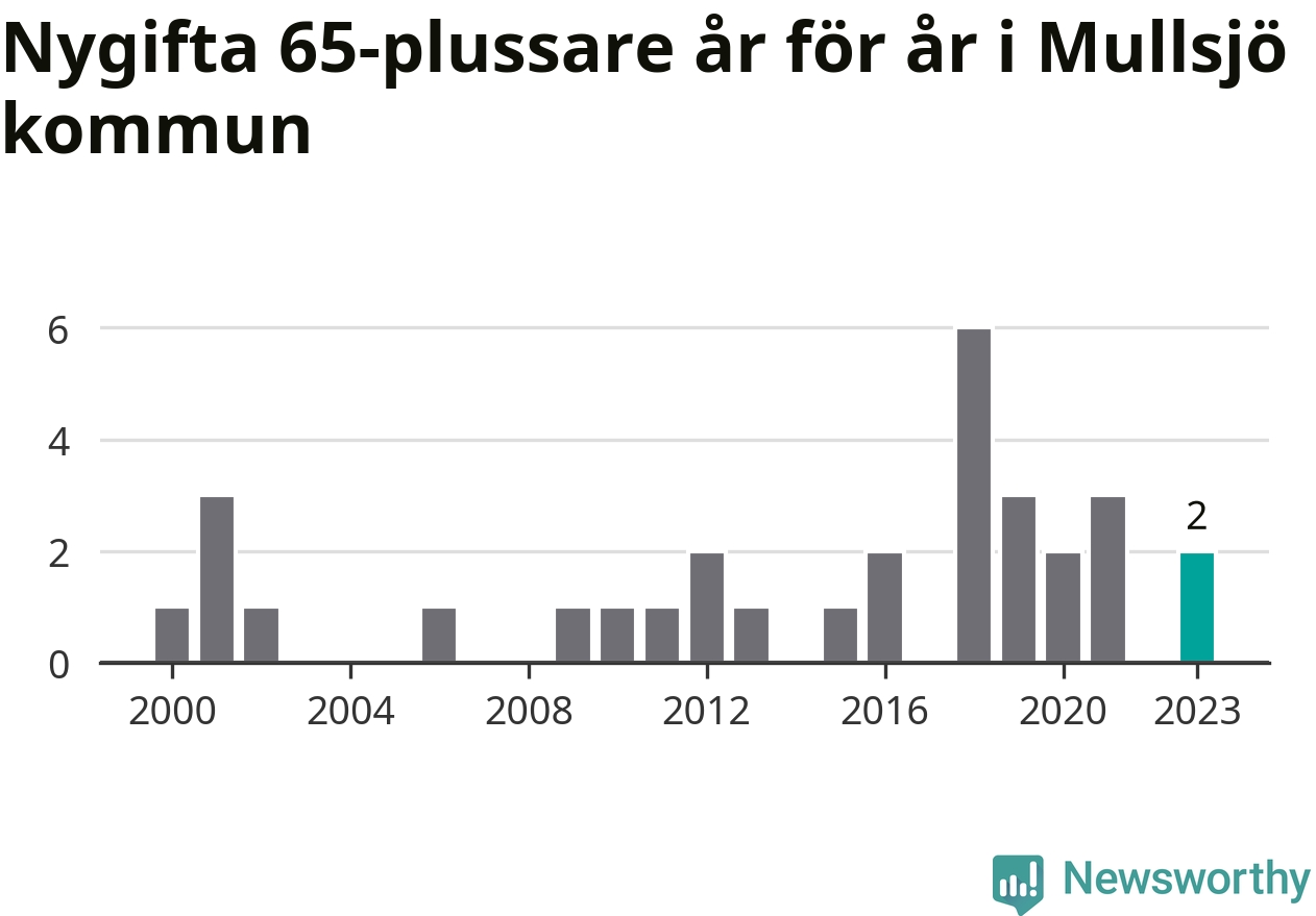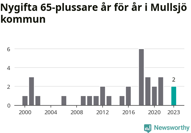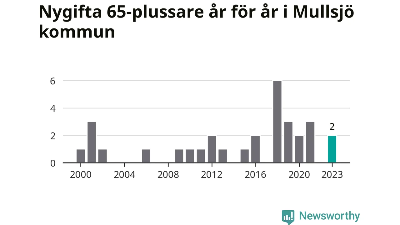 Sju personer. Så många Mullsjöbor gifte sig efter 65-årsdagen under hela 00-talet. Under det senaste decenniet, mellan 2014 och 2023, har samma siffra ökat till 19. Nästan en tredubbling, med andra ord.