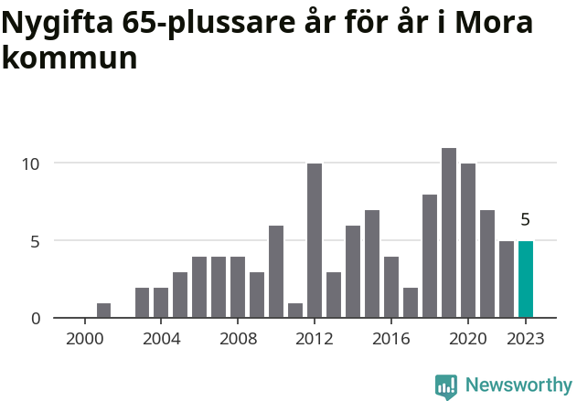 Allt fler gifter sig efter 65-årsdagen – nästan en tredubbling i Mora