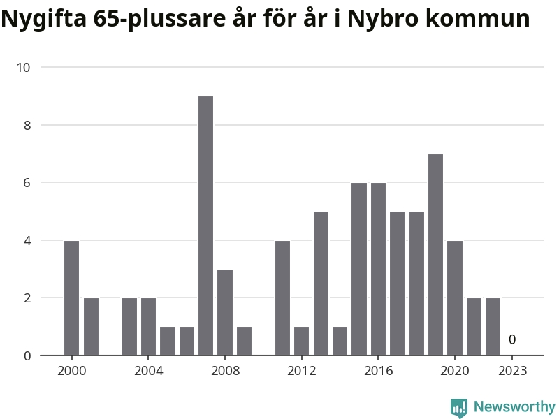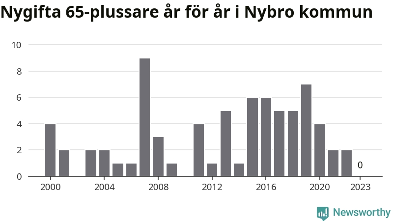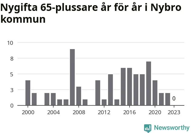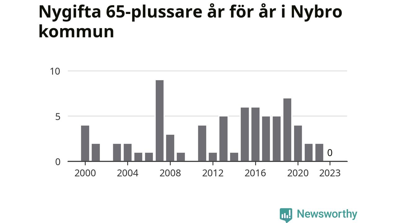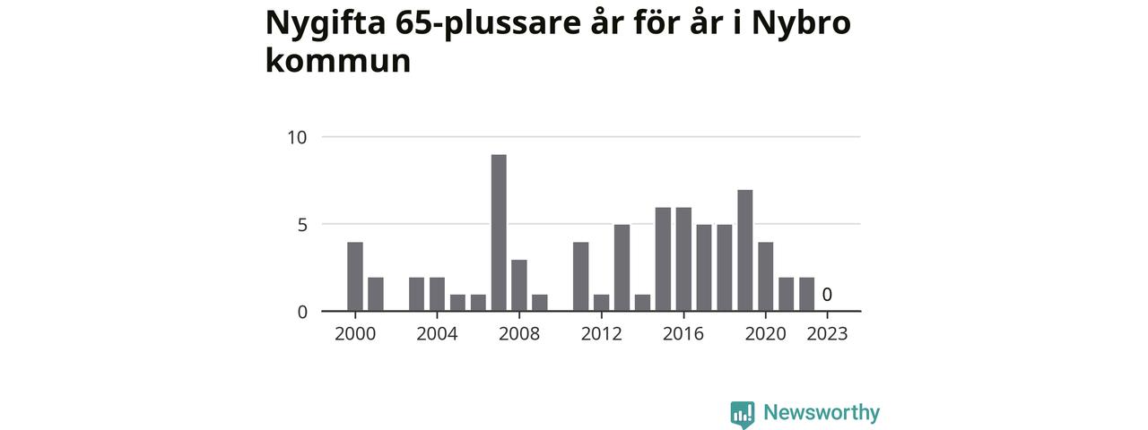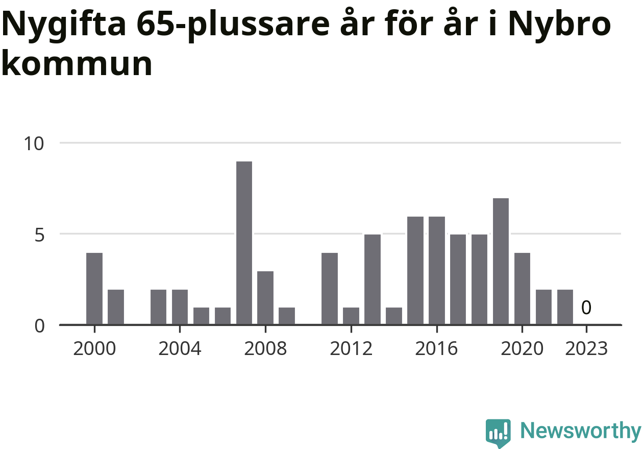 Bröllop bland 65-plussare har ökat markant i Sverige de senaste 25 åren. I Nybro har antalet nygifta seniorer ökat från 25 under 00-talet till 38 senaste decenniet.