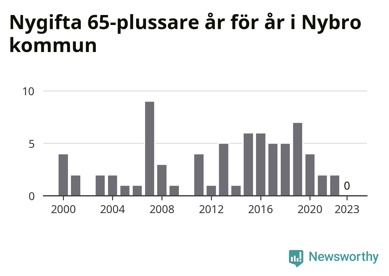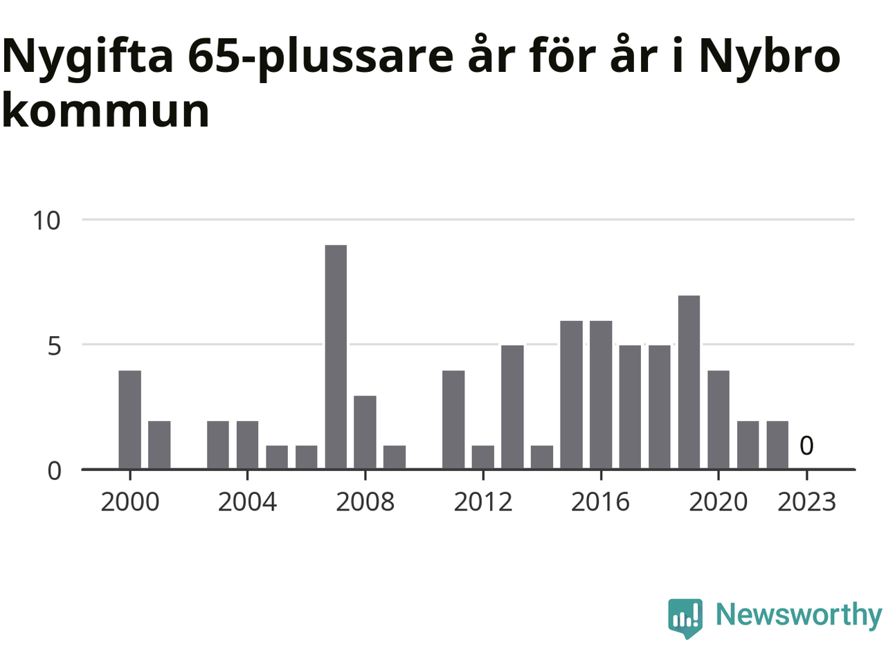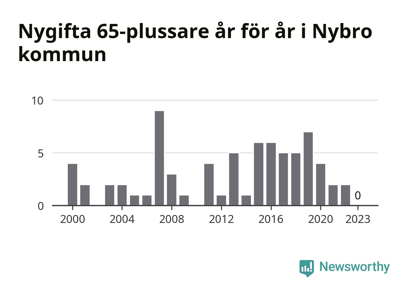 Bröllop bland 65-plussare har ökat markant i Sverige de senaste 25 åren. I Nybro har antalet nygifta seniorer ökat från 25 under 00-talet till 38 senaste decenniet.