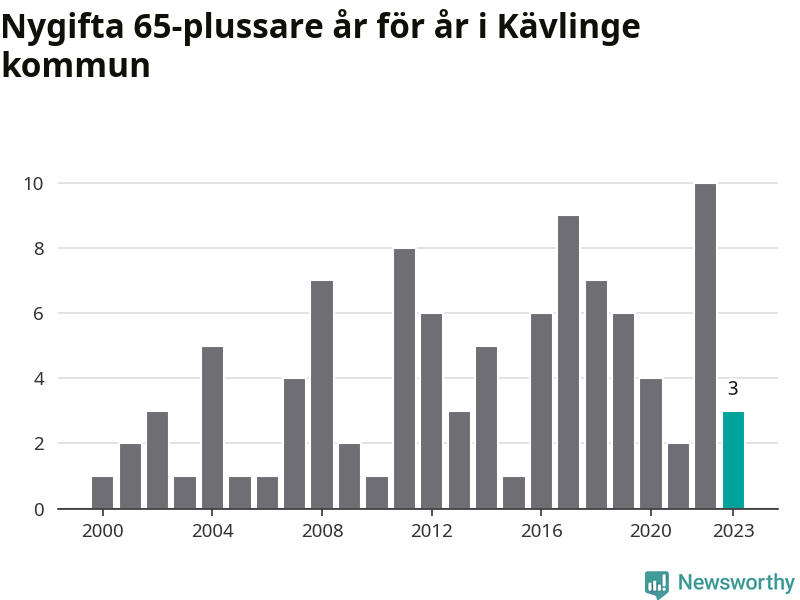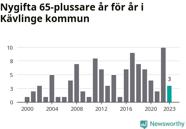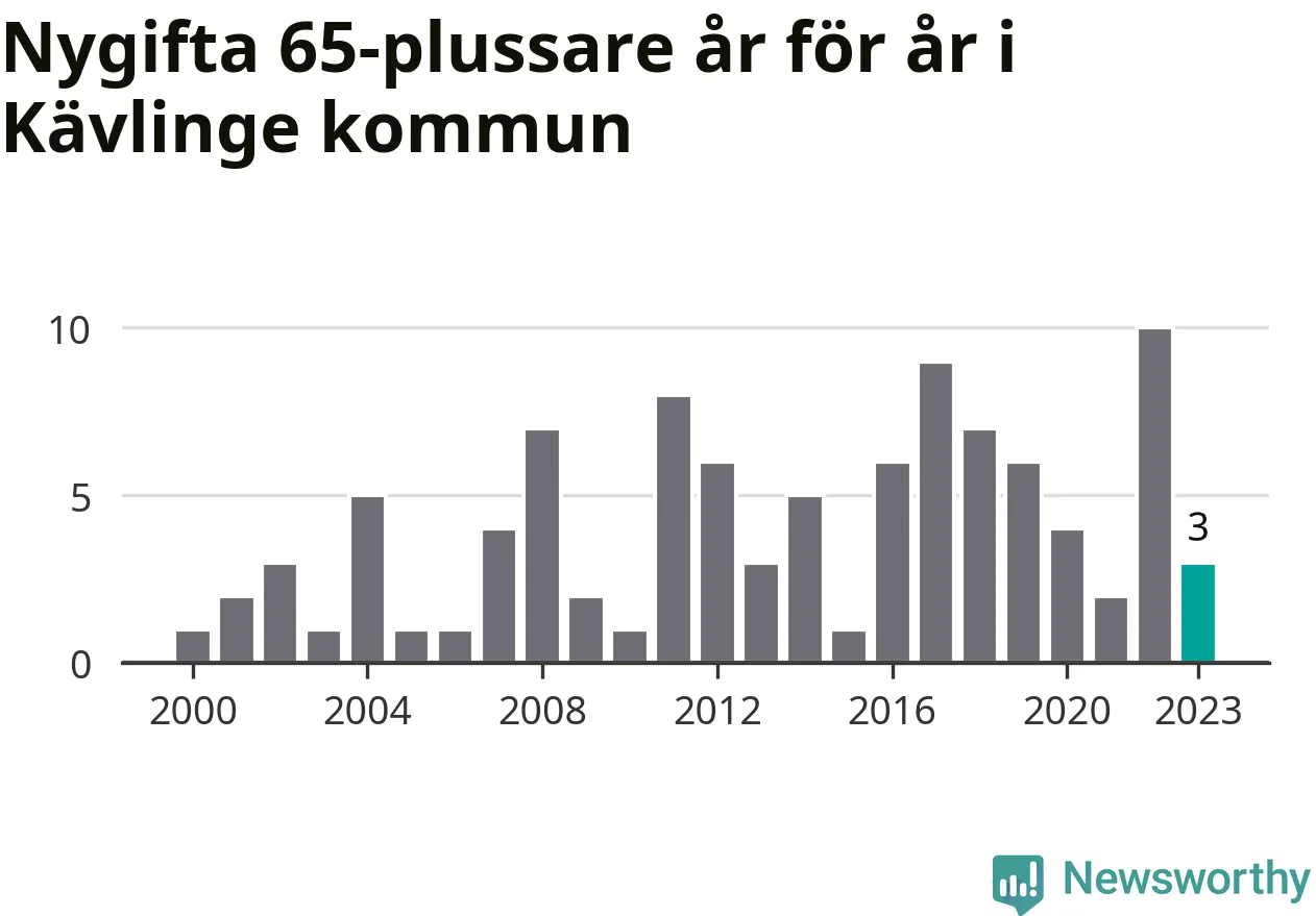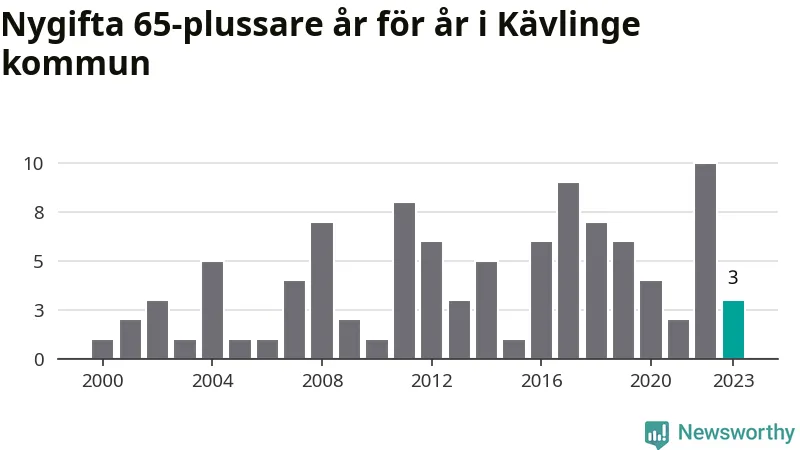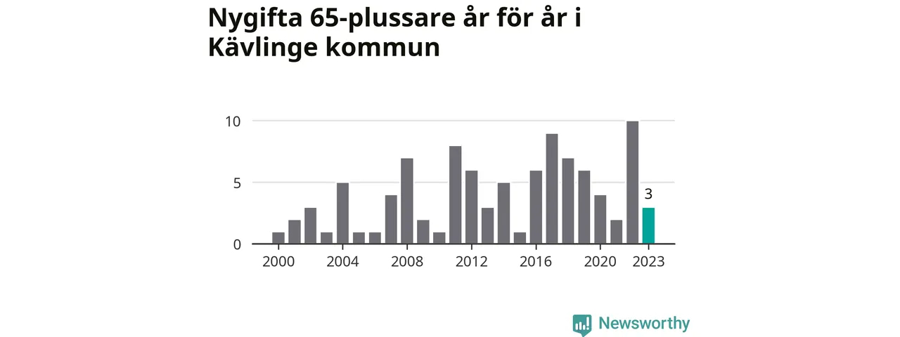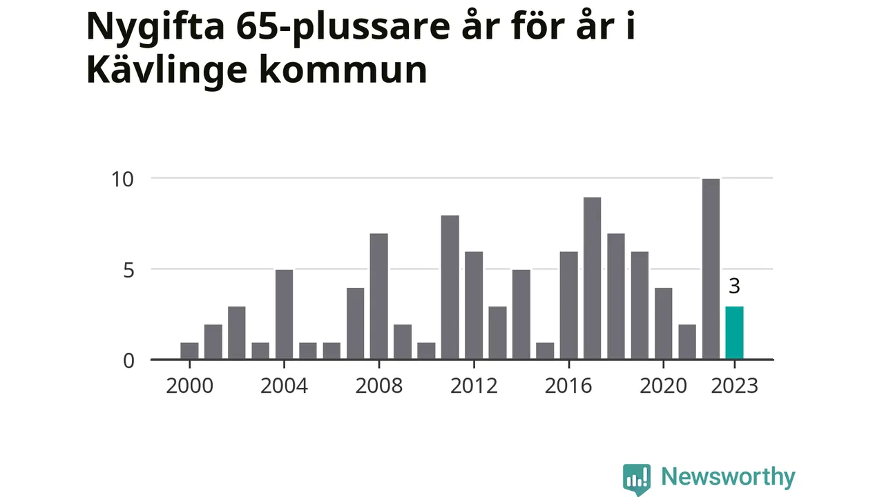 Bröllop bland 65-plussare har ökat markant i Sverige de senaste 25 åren. I Kävlinge har antalet nygifta seniorer ökat från 27 under 00-talet till 53 senaste decenniet.