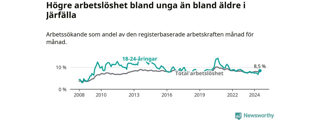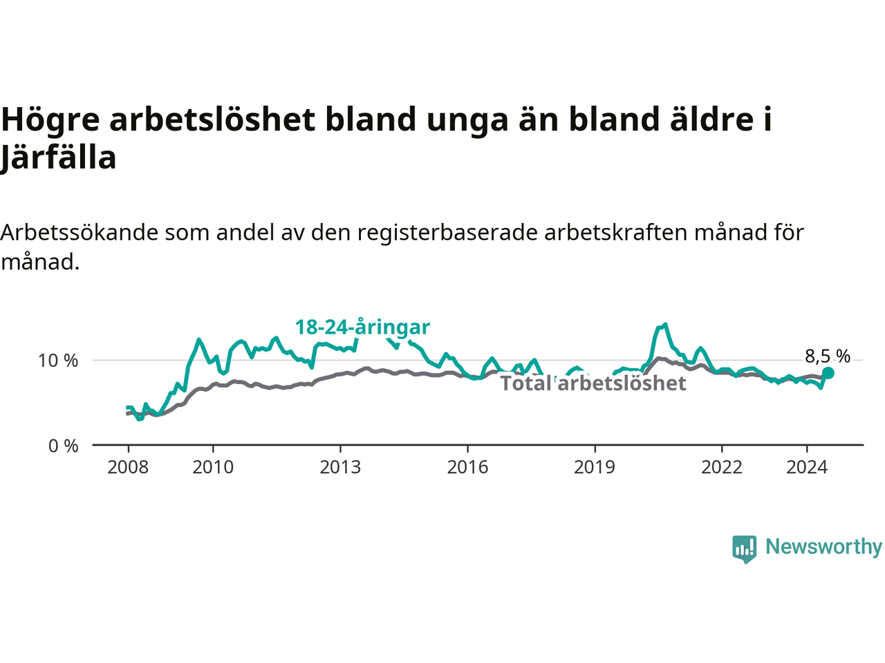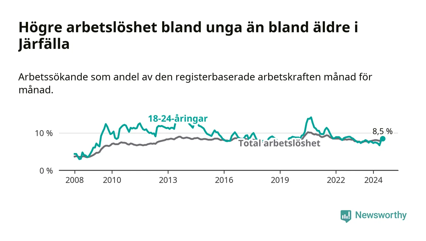 Det är sjunde månaden i följd som arbetslösheten i Järfälla är högre än den var under samma tidpunkt året innan. Den nuvarande arbetslöshetsnivån är därmed den högsta sedan mars 2022.