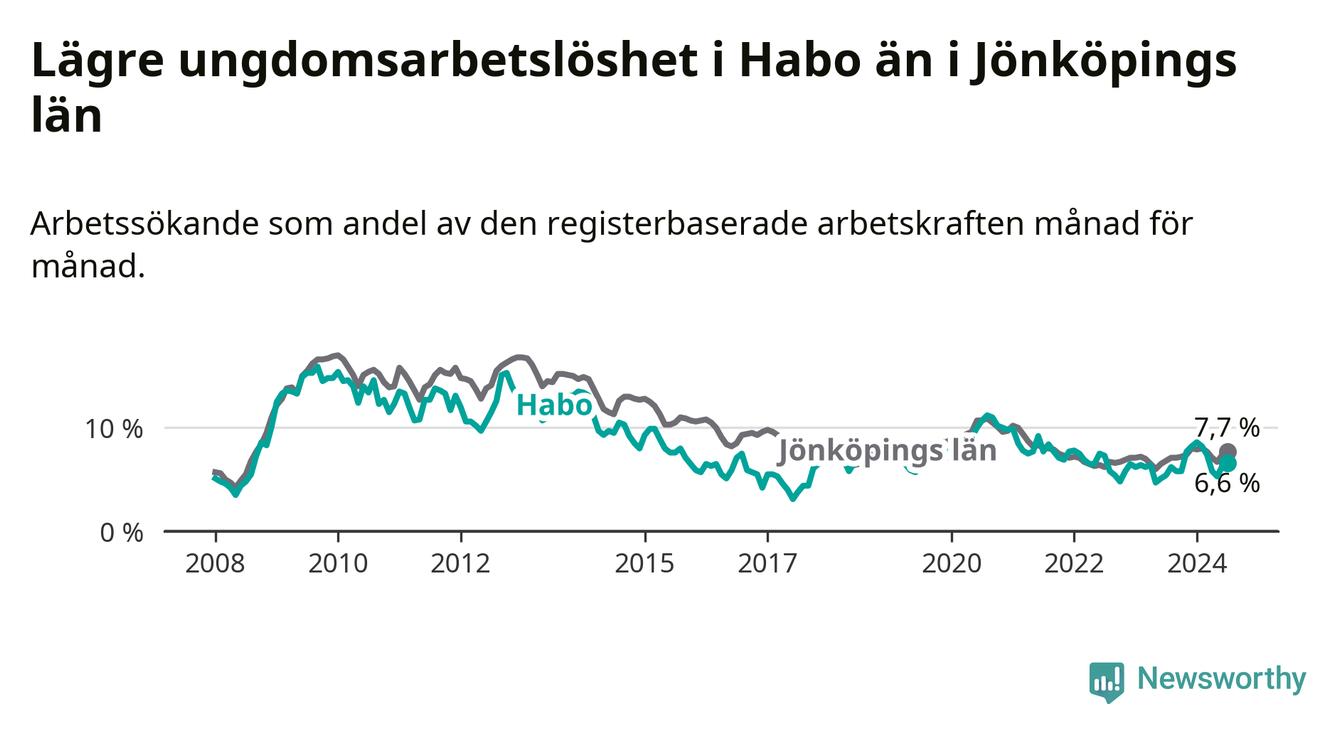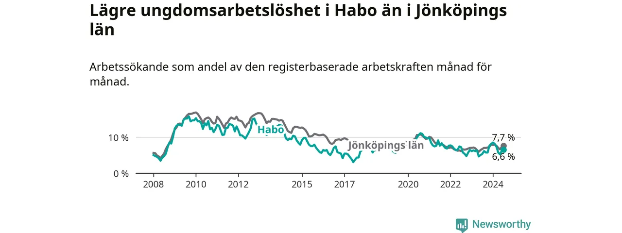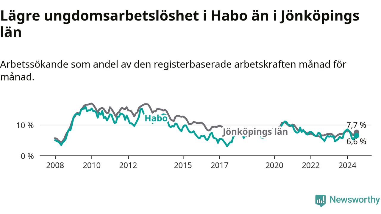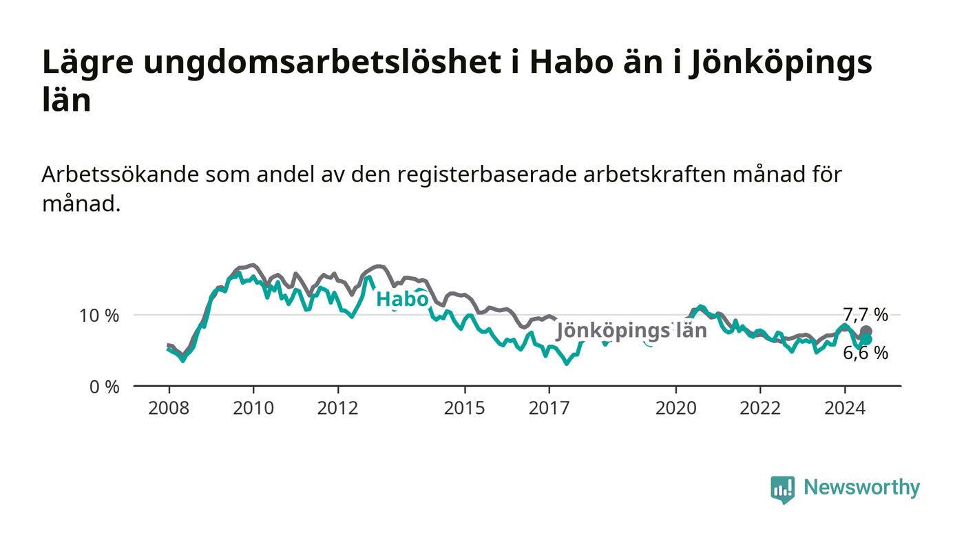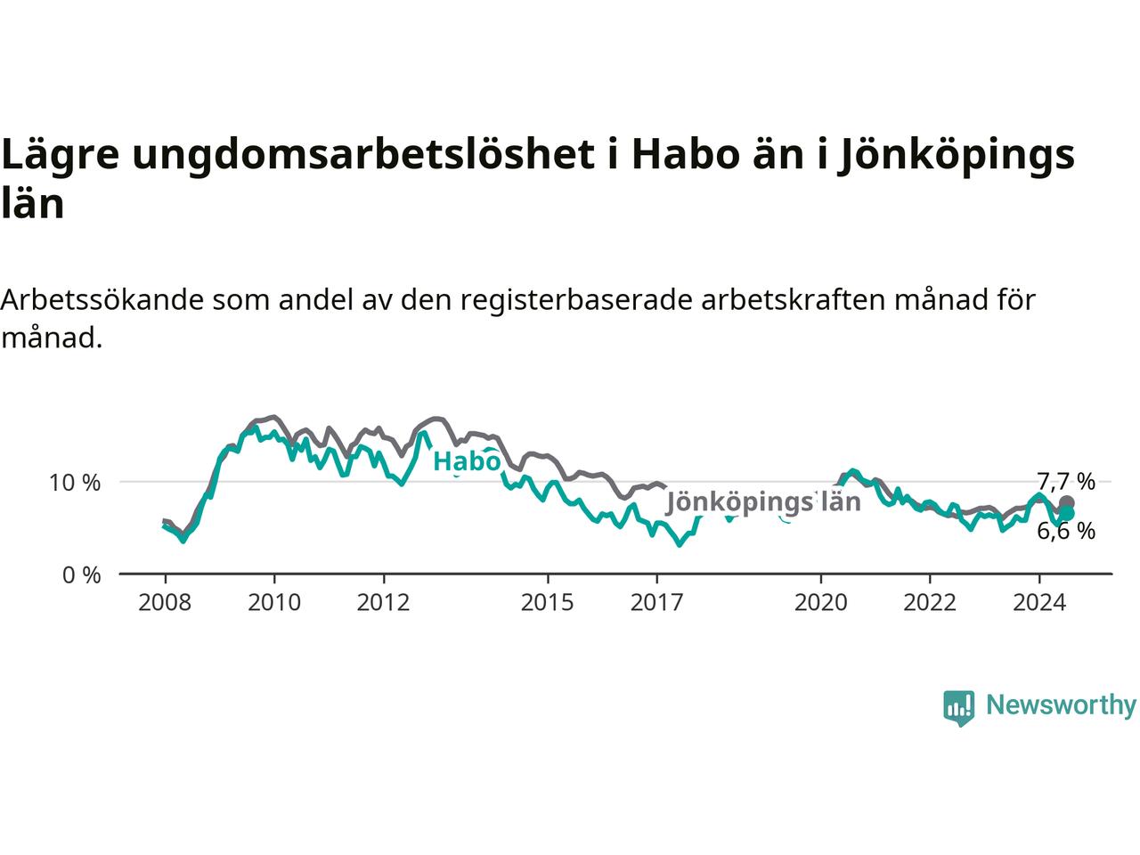 Graf: Arbetslöshet bland unga i Habo kommun och Jönköpings län
