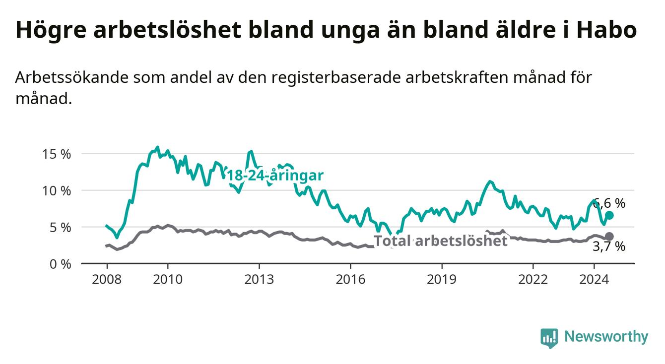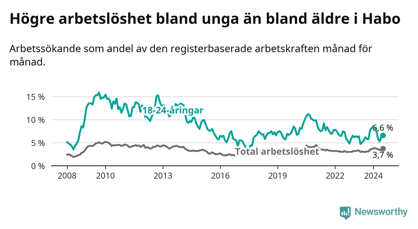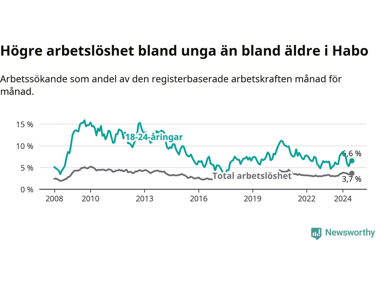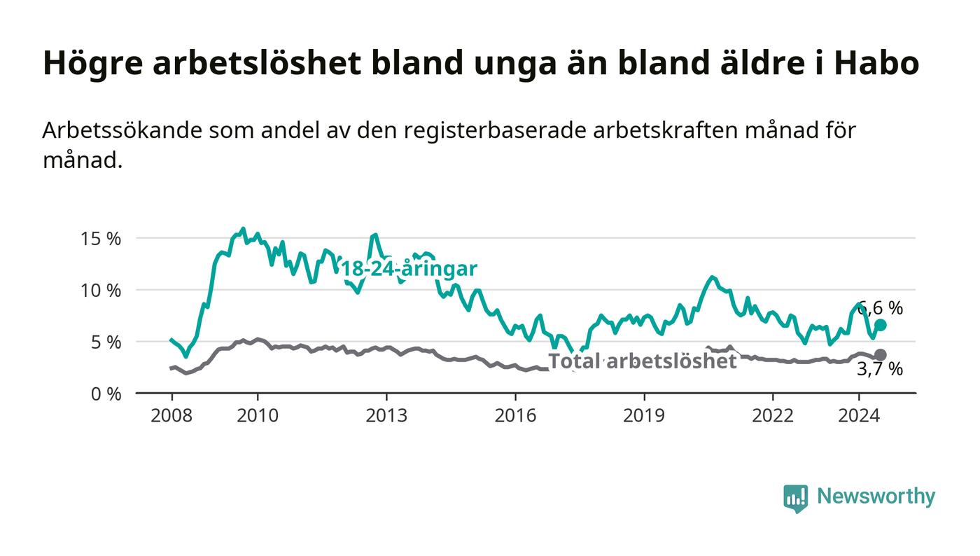 Graf: Arbetslöshet bland unga i Habo kommun och Jönköpings län
