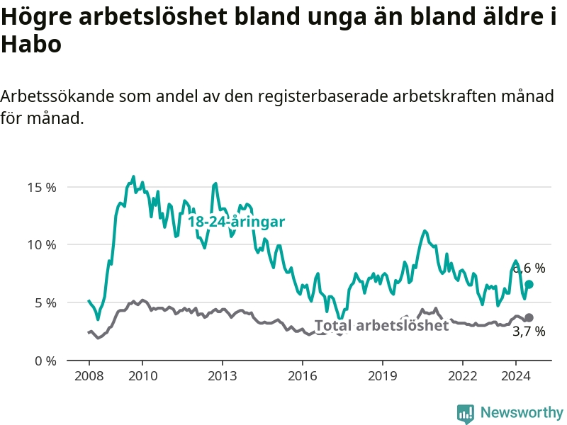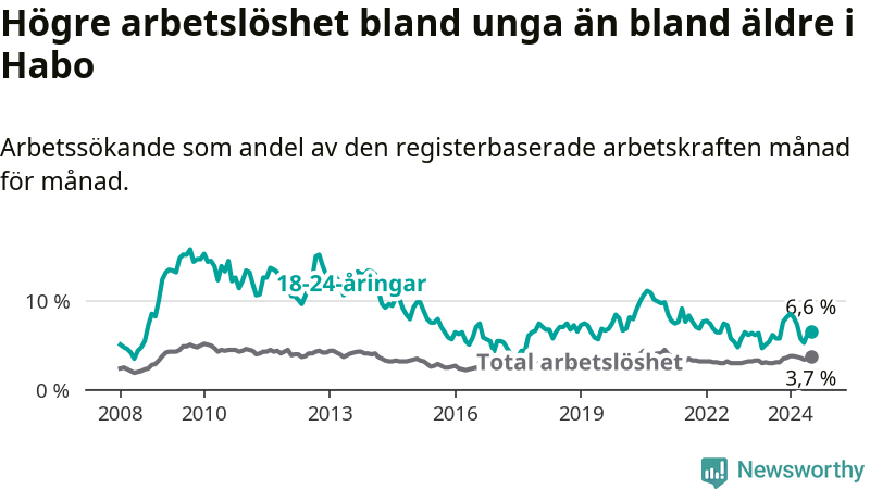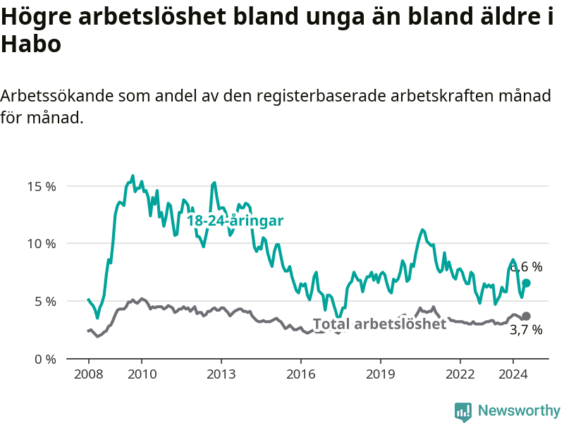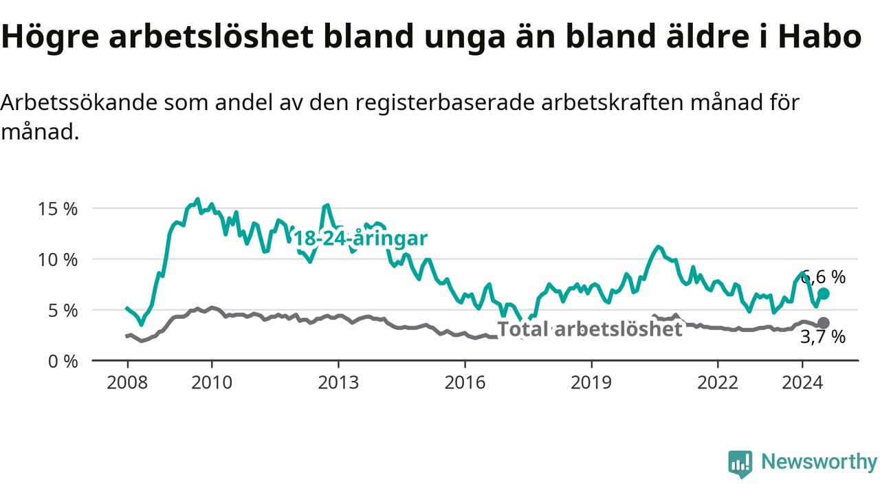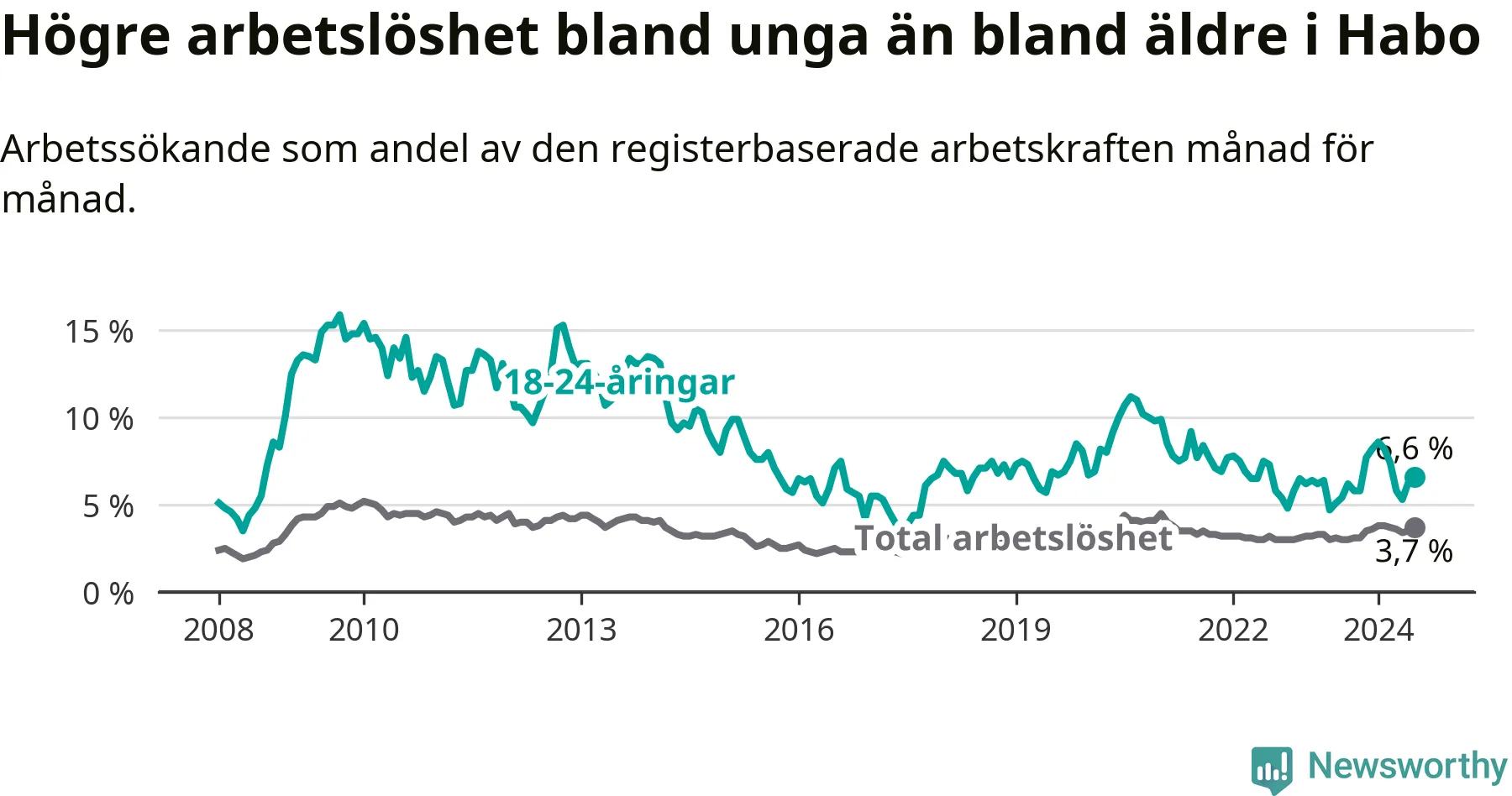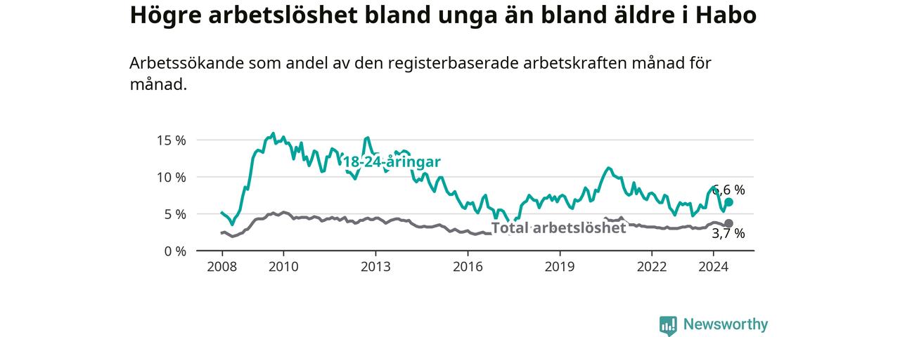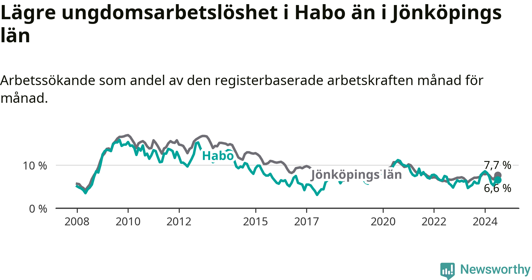 Graf: Arbetslöshet bland unga i Habo kommun och Jönköpings län