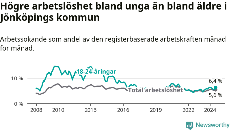 Arbetslöshet bland 18–24-åringar i Jönköpings län