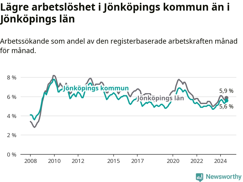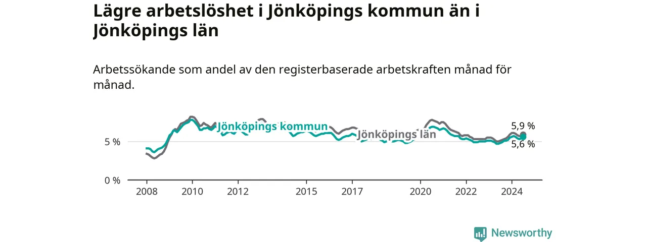 Graf: Arbetslöshet i Jönköpings kommun och Jönköpings län