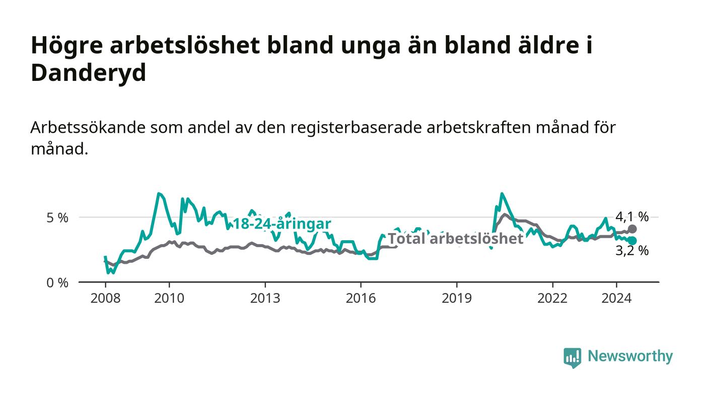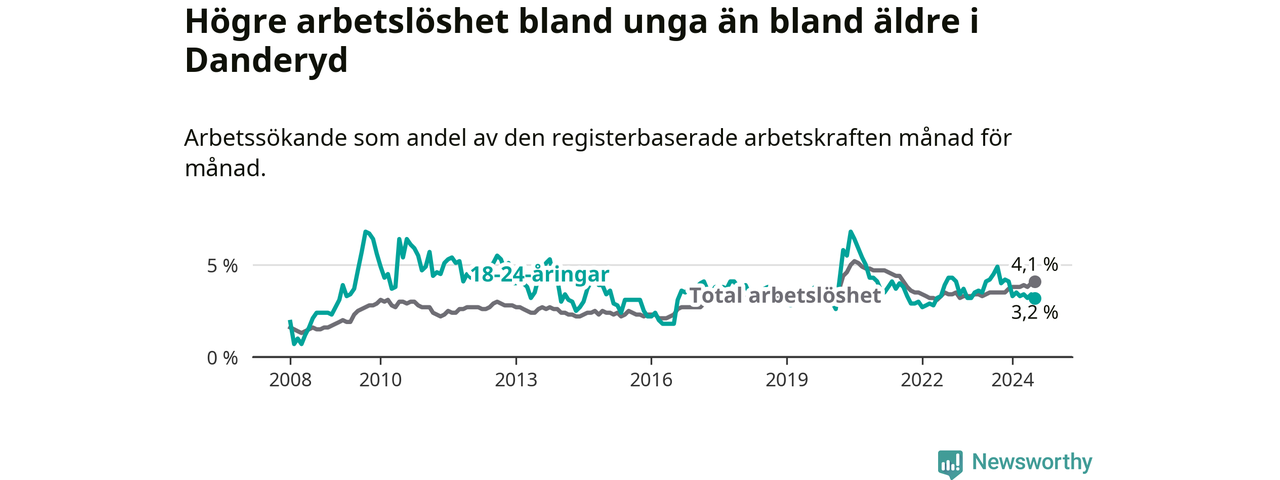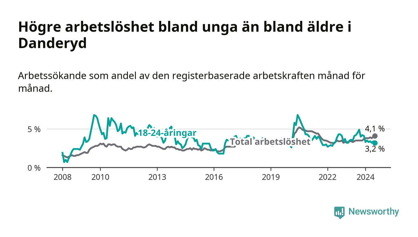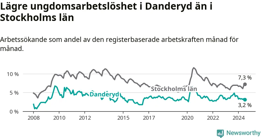 Den senaste månadsstatistiken från Arbetsförmedlingen visar på en nedgång i ungdomsarbetslöshet i Danderyds kommun med 1,0 procentenheter. Arbetslösheten bland personer i åldern 18–24 år låg i juli på 3,2 procent.
