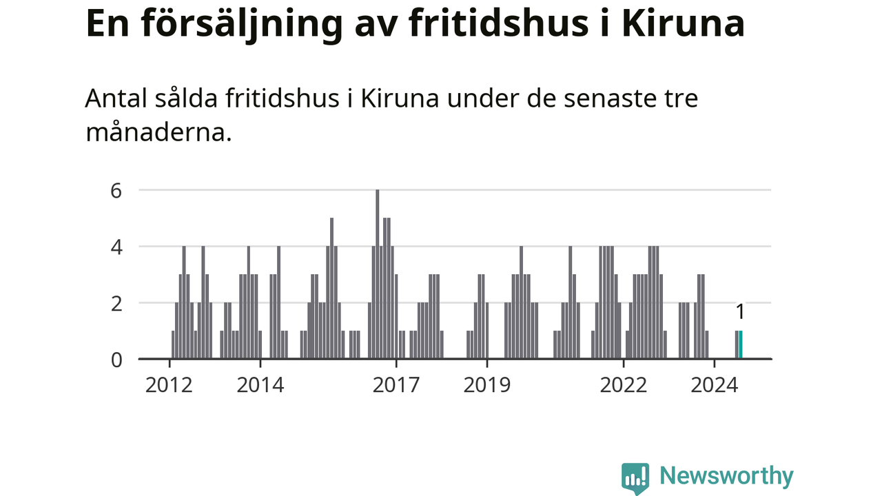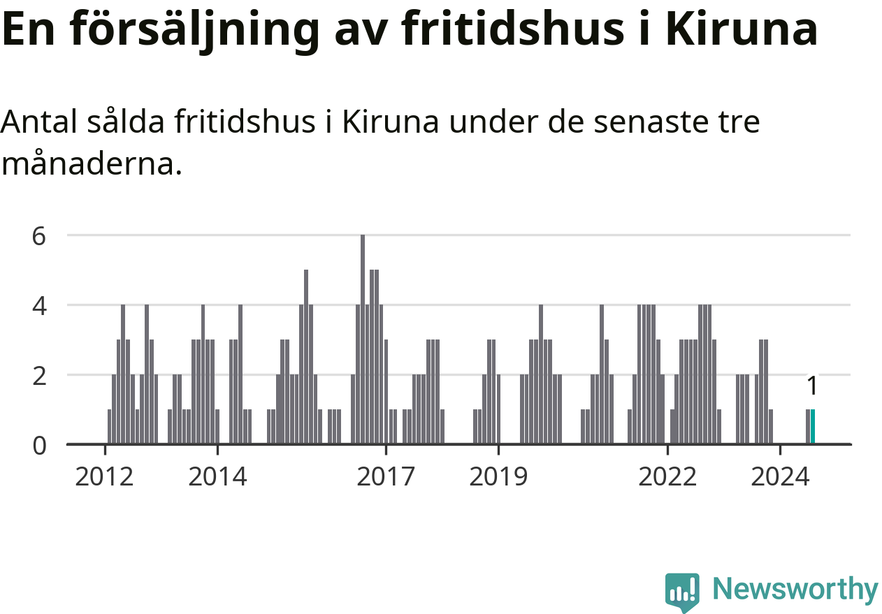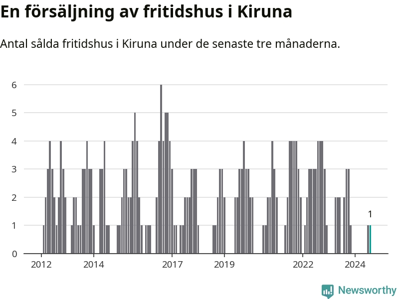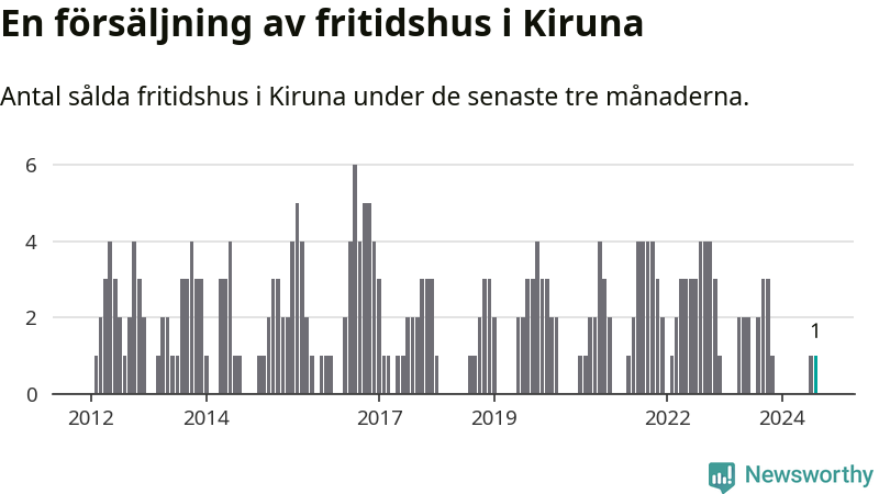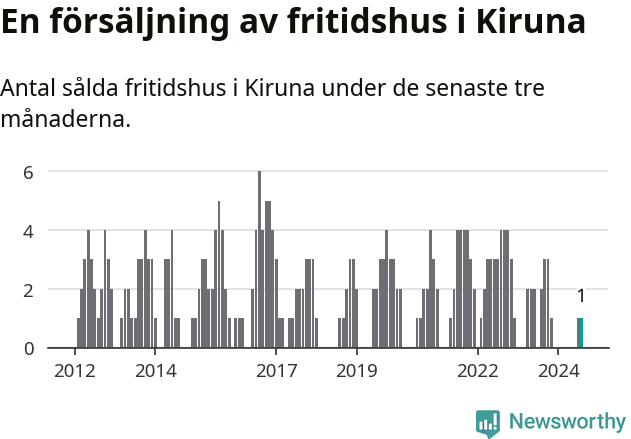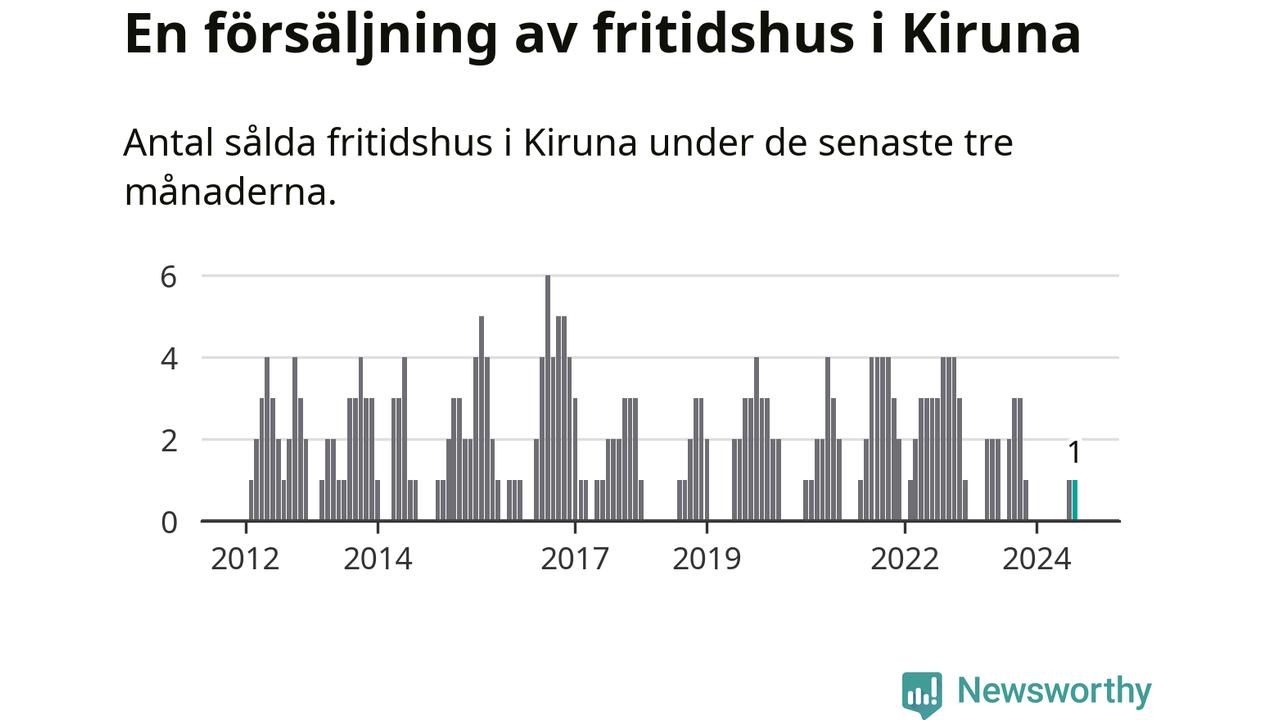 Mellan juni och augusti gjordes sammanlagt en affär med fritidshus i Kiruna kommun. Det kan jämföras med två vid motsvarande tid i fjol.