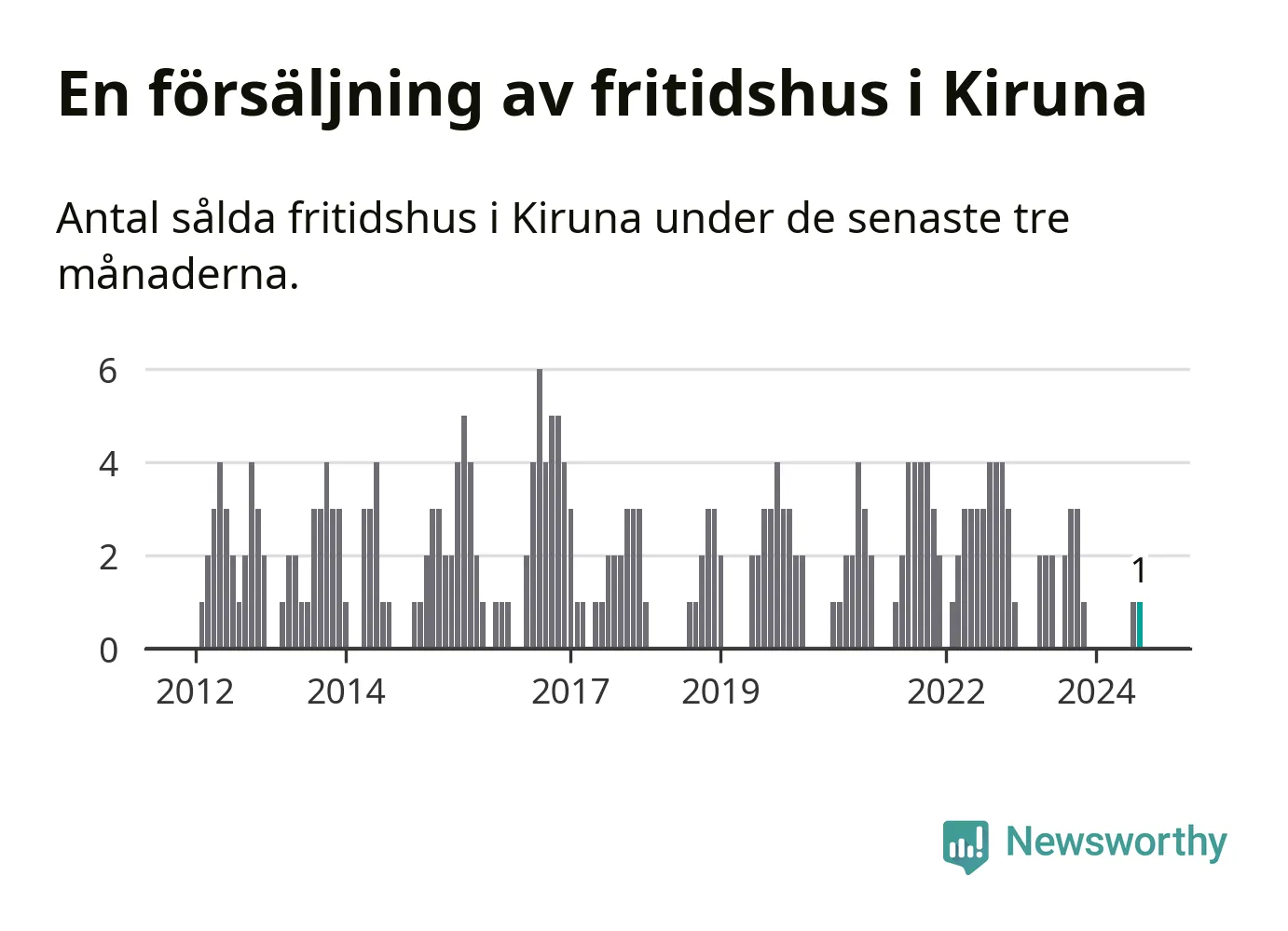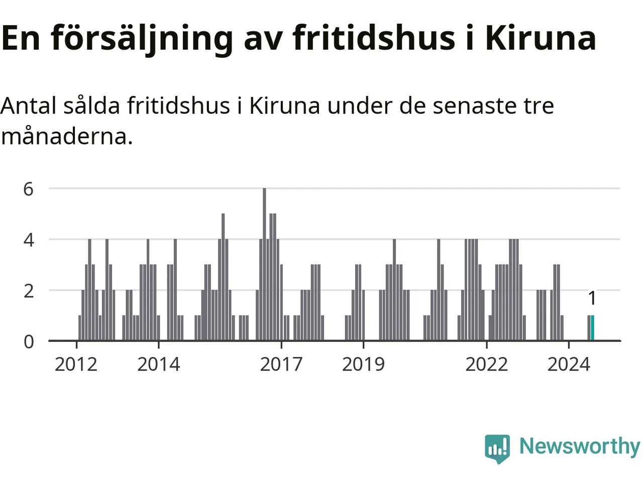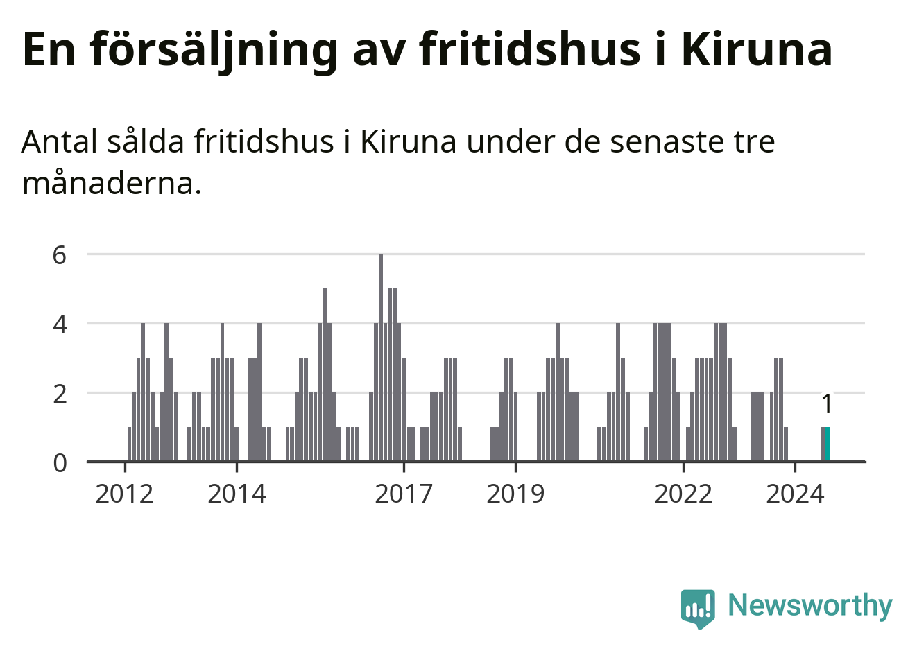 Mellan juni och augusti gjordes sammanlagt en affär med fritidshus i Kiruna kommun. Det kan jämföras med två vid motsvarande tid i fjol.