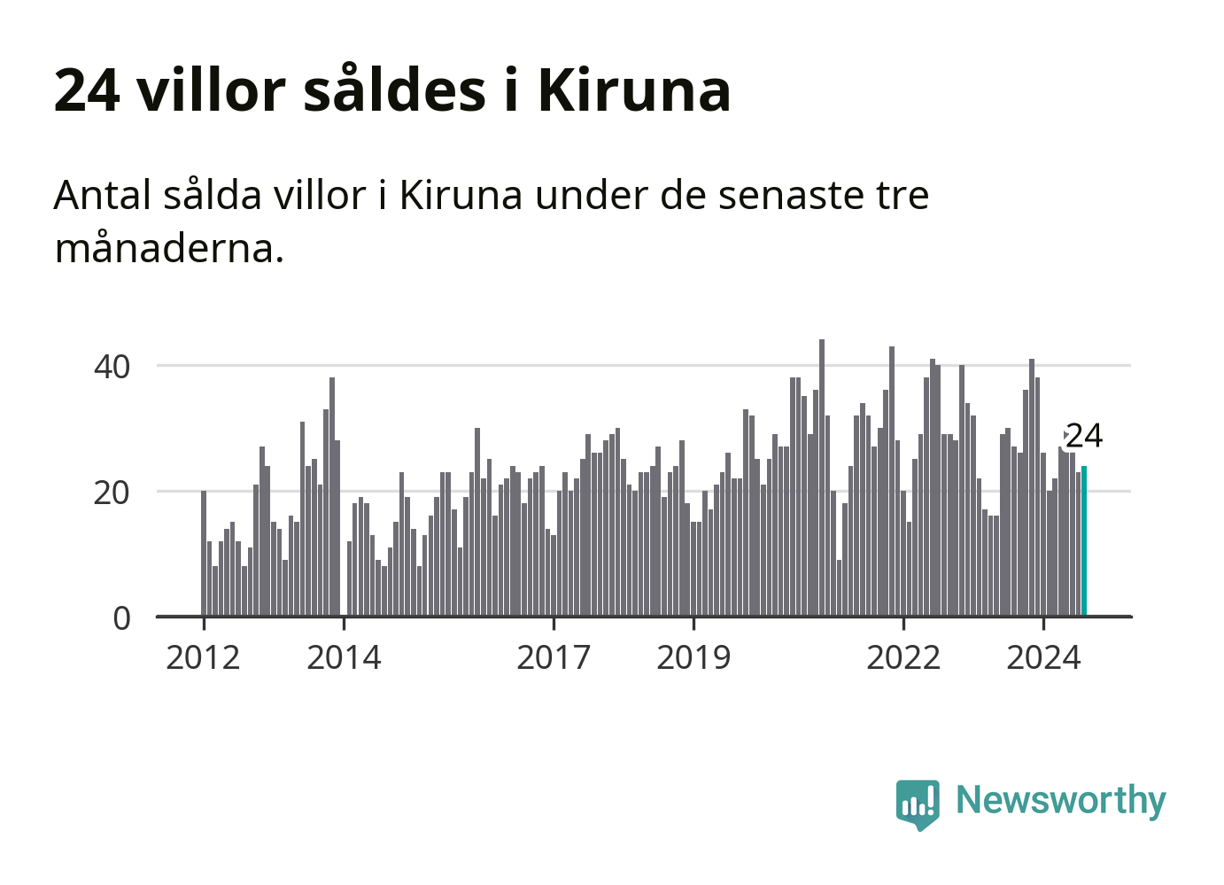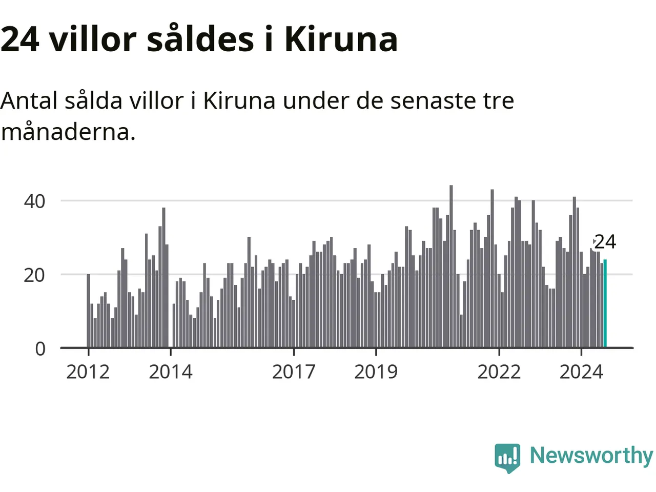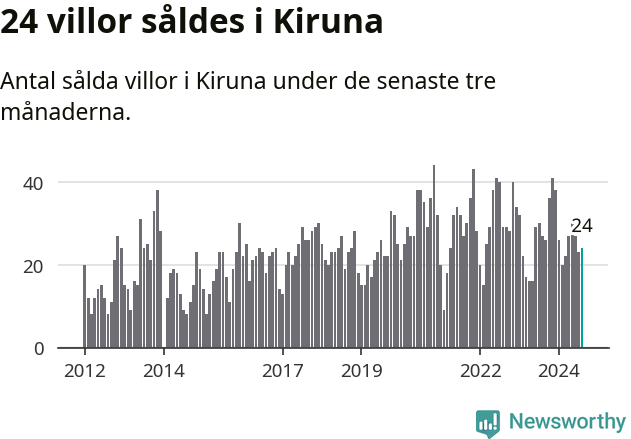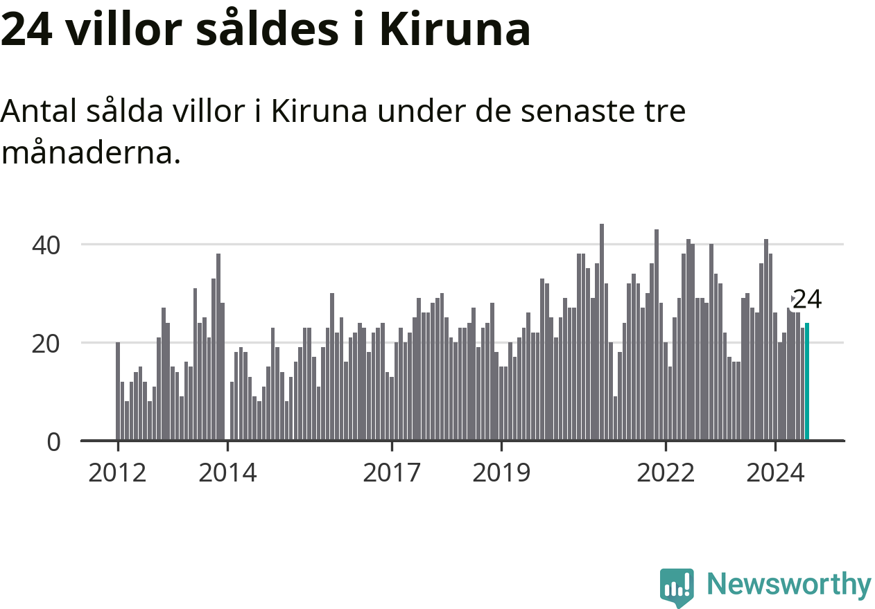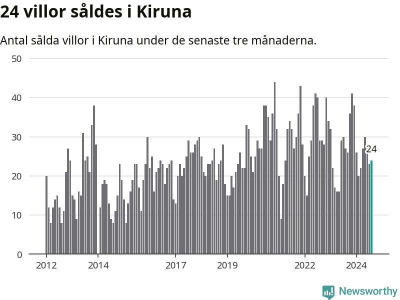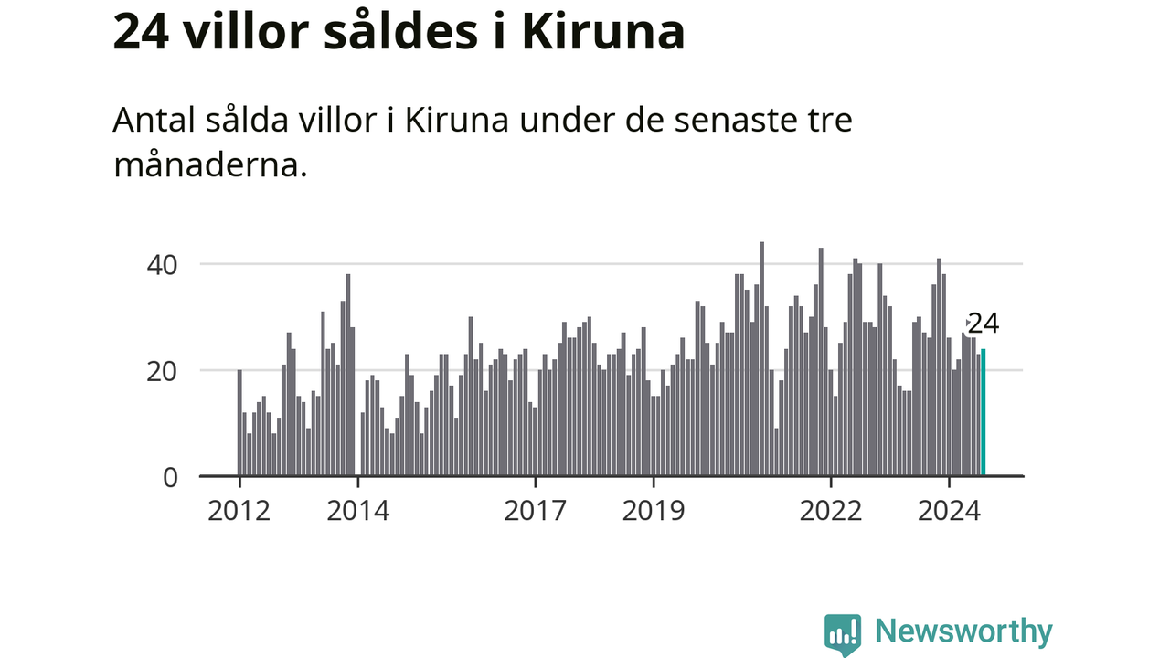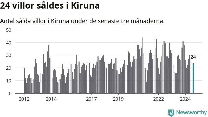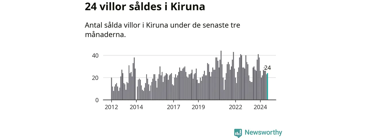 Mellan juni och augusti gjordes sammanlagt 24 affärer med villor i Kiruna kommun. Det kan jämföras med 27 vid motsvarande tid i fjol.