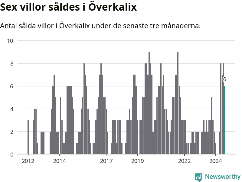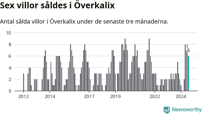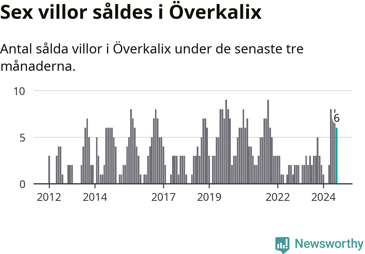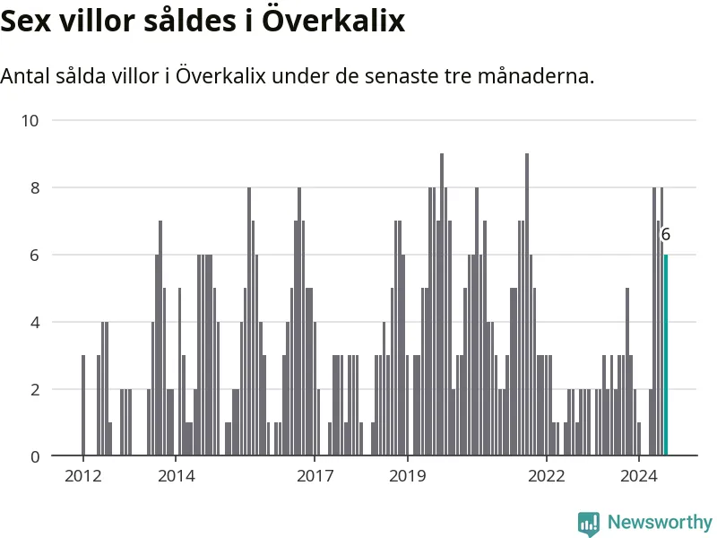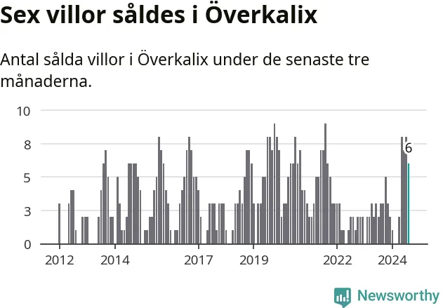 Mellan juni och augusti gjordes sammanlagt sex affärer med villor i Överkalix kommun. Det kan jämföras med tre vid motsvarande tid i fjol.