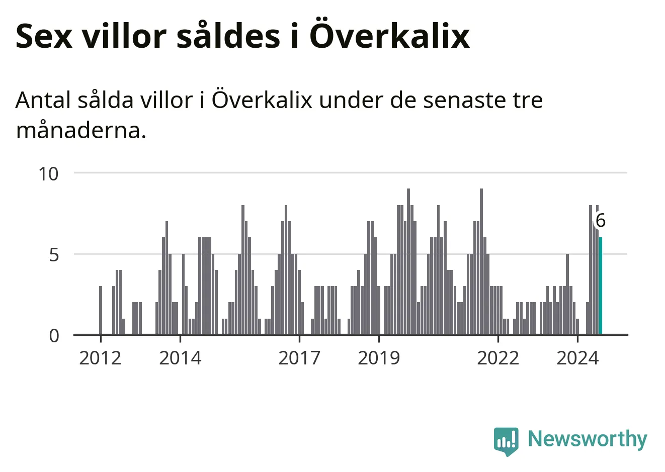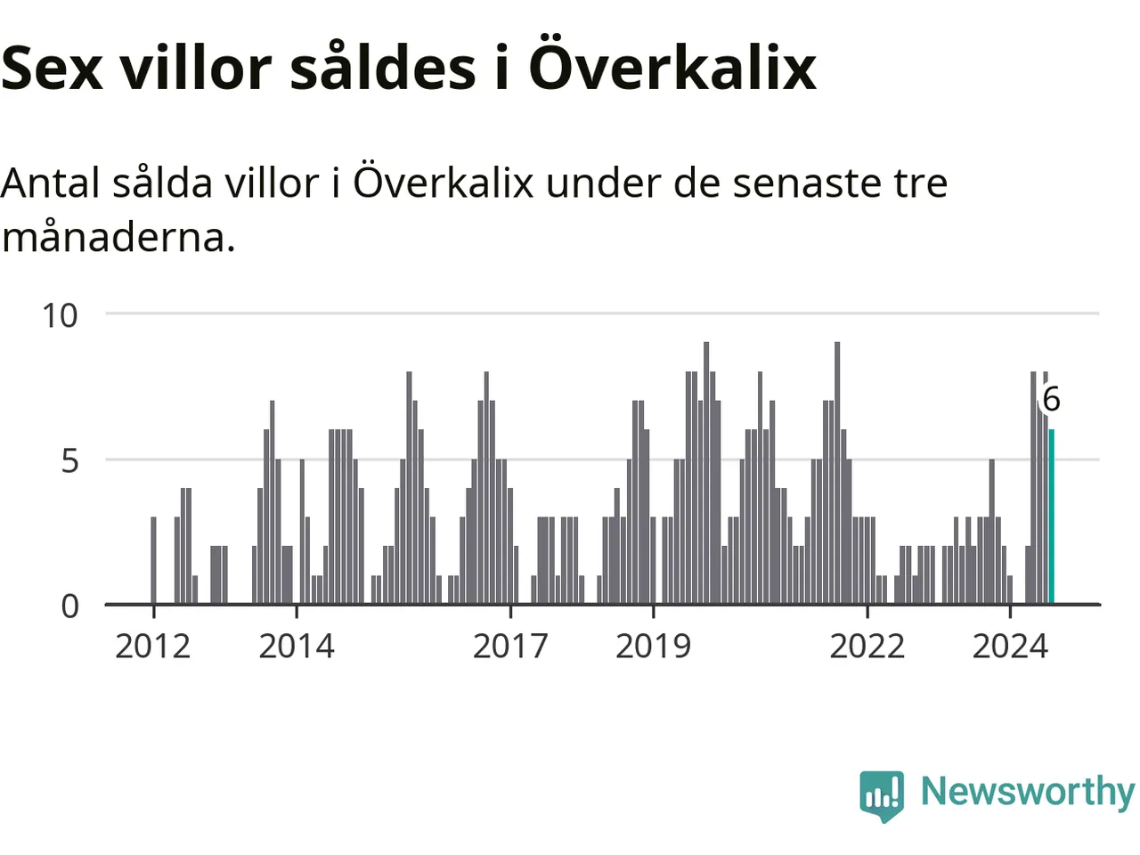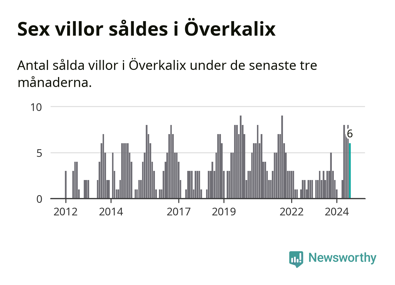 Mellan juni och augusti gjordes sammanlagt sex affärer med villor i Överkalix kommun. Det kan jämföras med tre vid motsvarande tid i fjol.