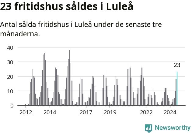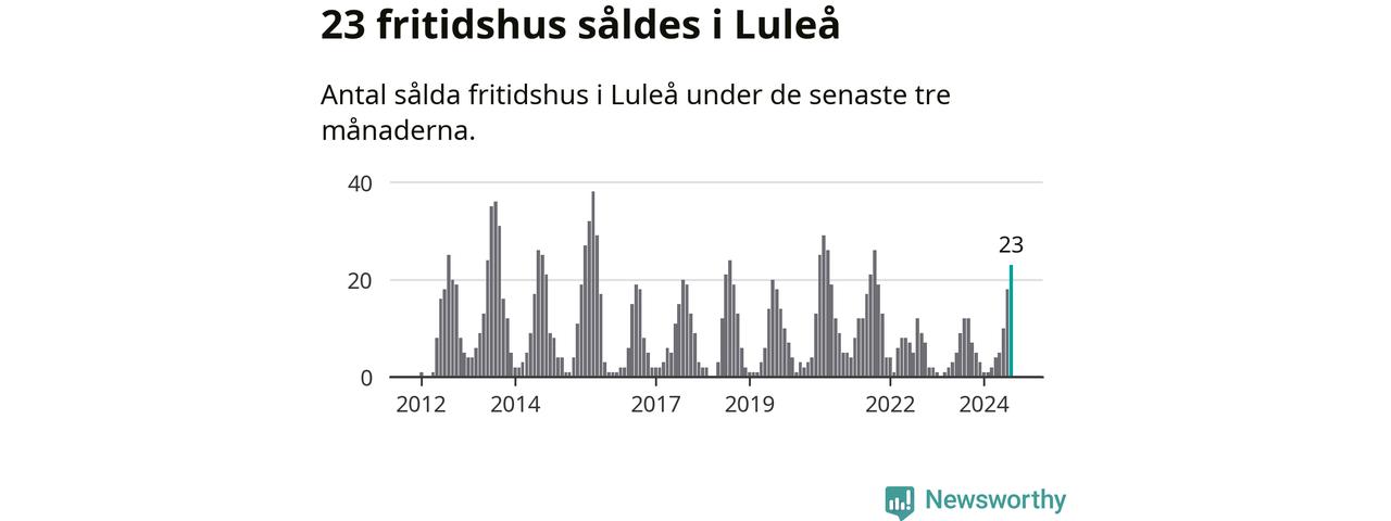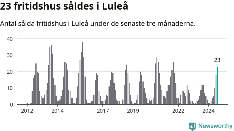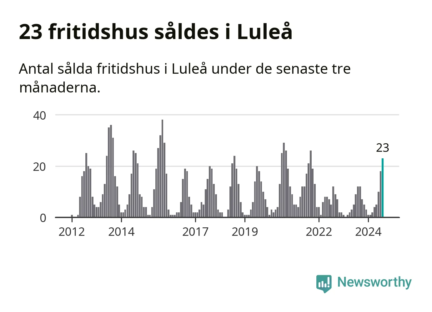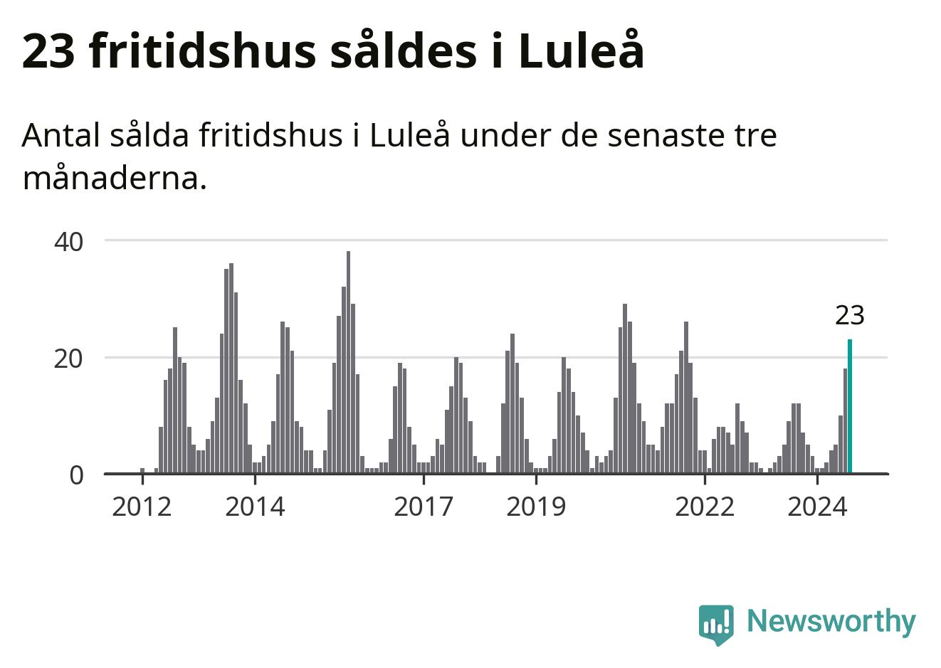 Mellan juni och augusti såldes 23 fritidshus i Luleå kommun. Det är relativt många sett till aktiviteten på bostadsmarknaden i kommunen under de senaste tolv månaderna, samt det historiska snittet för den här tiden på året.