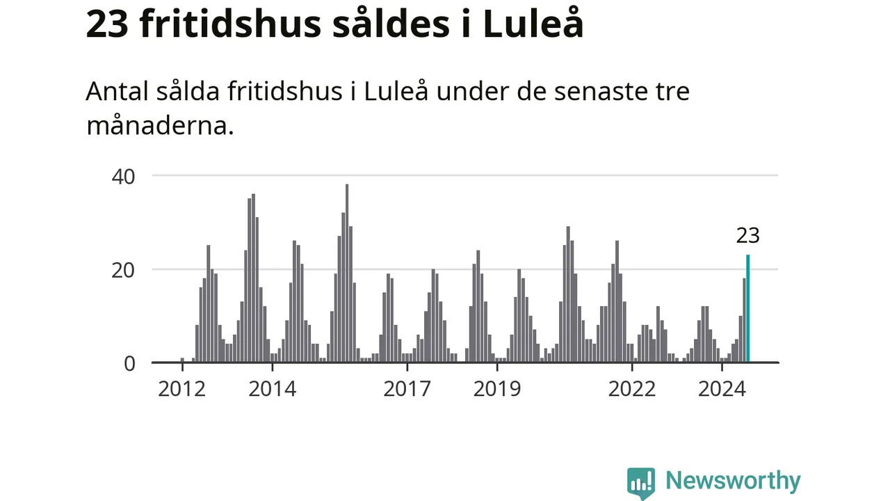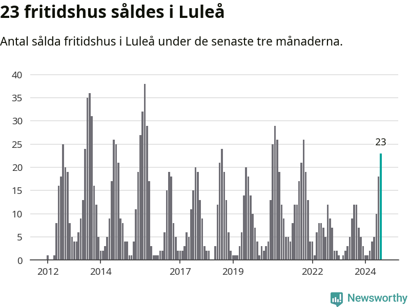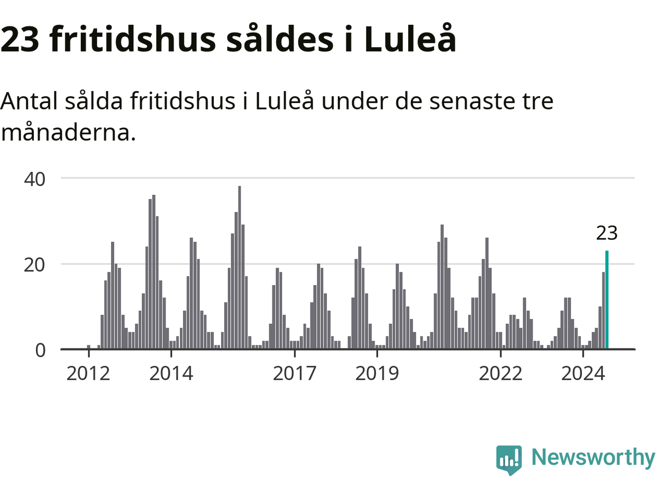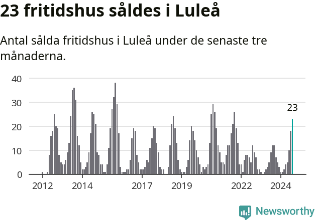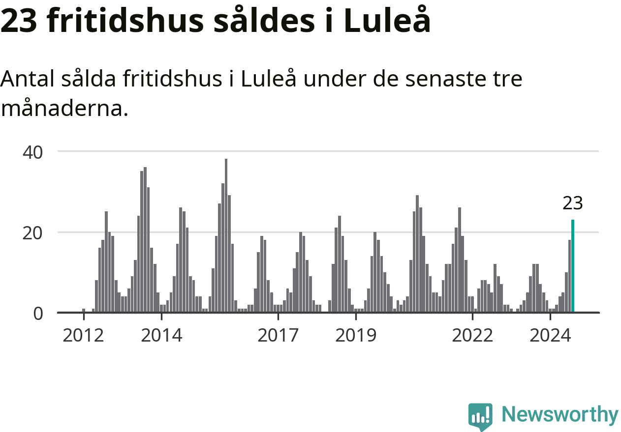 Mellan juni och augusti såldes 23 fritidshus i Luleå kommun. Det är relativt många sett till aktiviteten på bostadsmarknaden i kommunen under de senaste tolv månaderna, samt det historiska snittet för den här tiden på året.