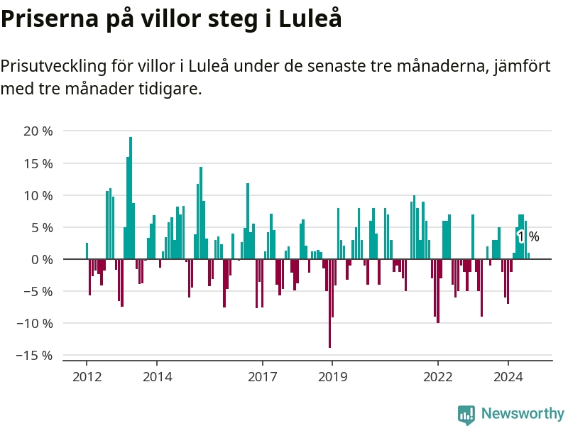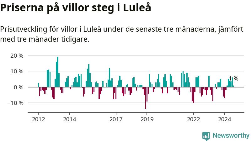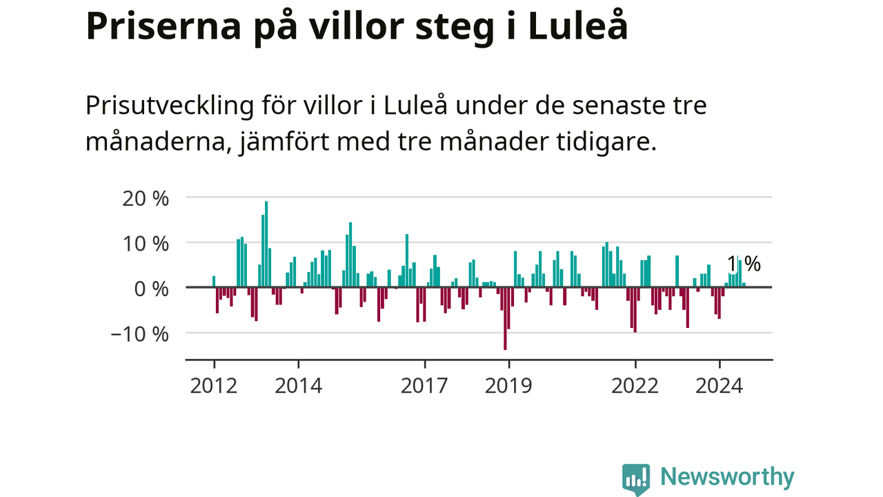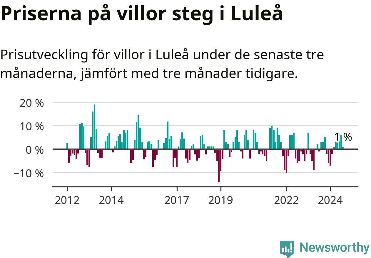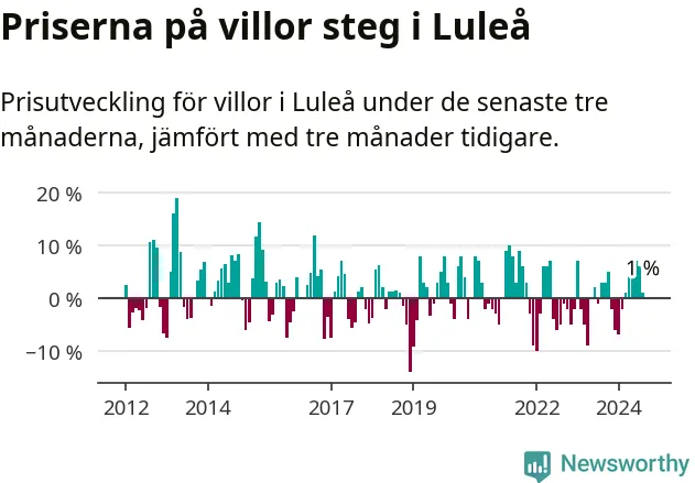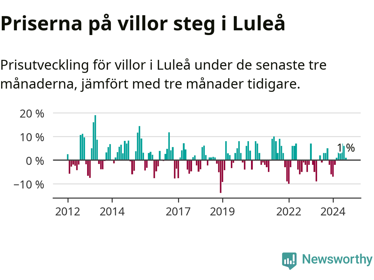 Villapriserna har gått upp i Luleå kommun. Medelpriset på försäljningarna under de senaste tre månaderna visar på en uppgång med 1 procent.