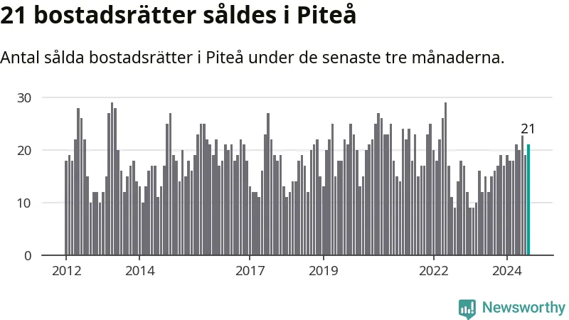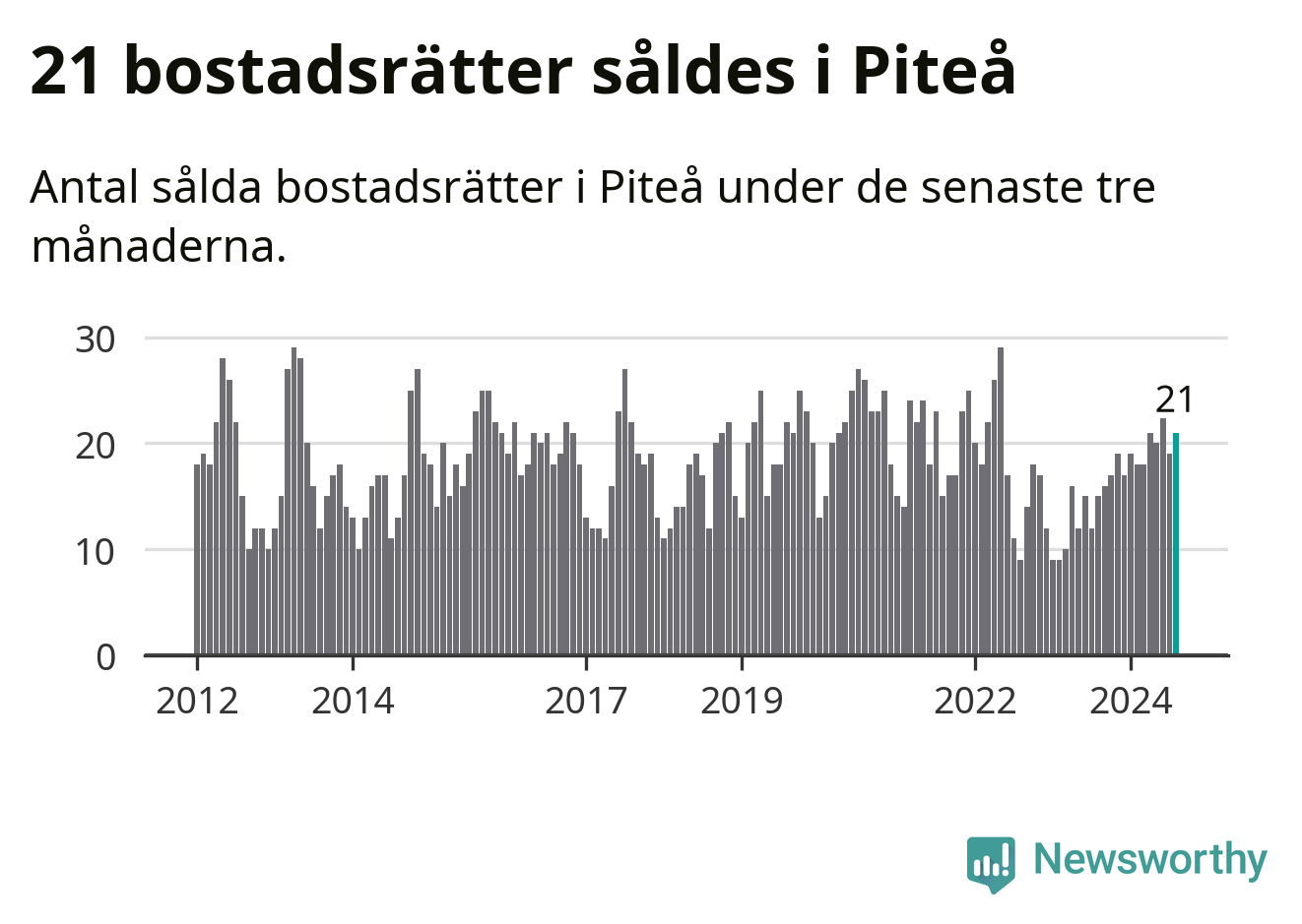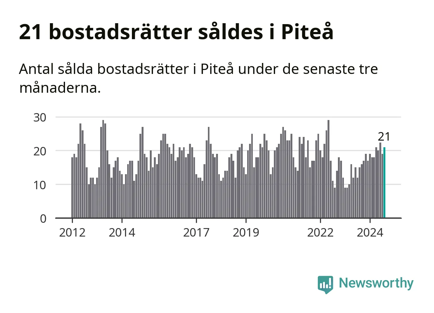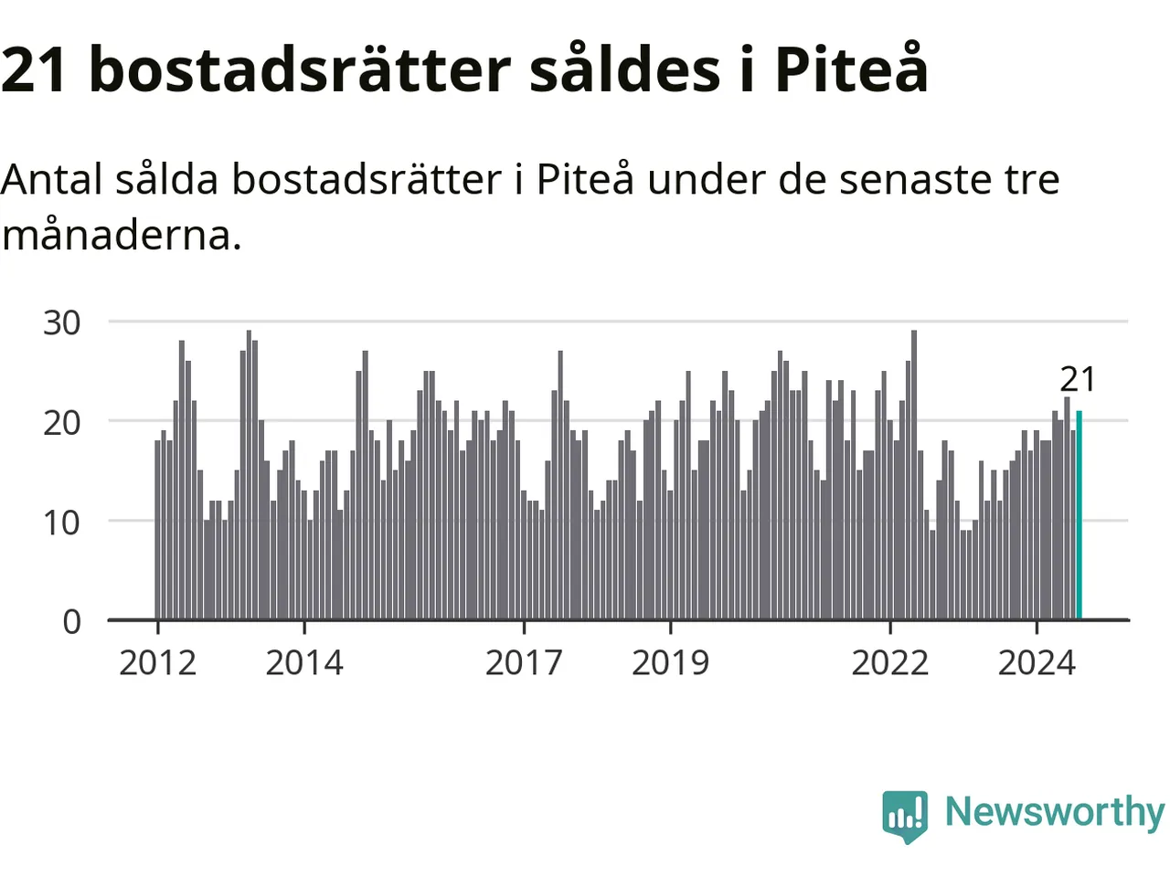 Mellan juni och augusti gjordes sammanlagt 21 affärer med bostadsrätter i Piteå kommun. Det kan jämföras med 15 vid motsvarande tid i fjol.