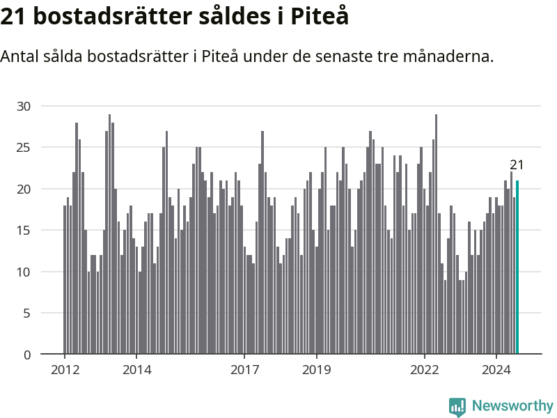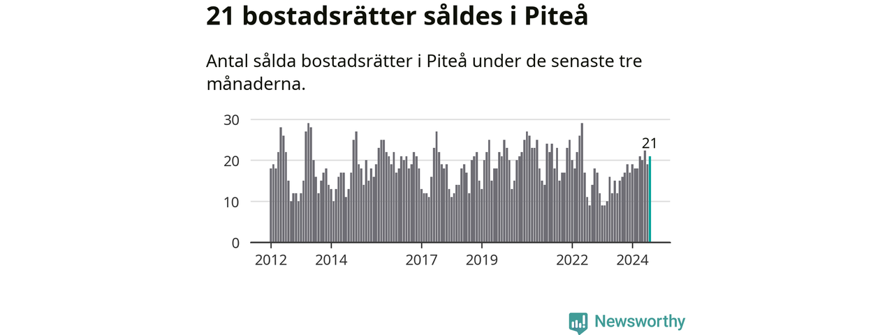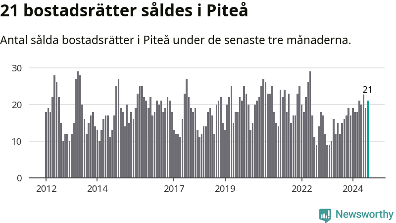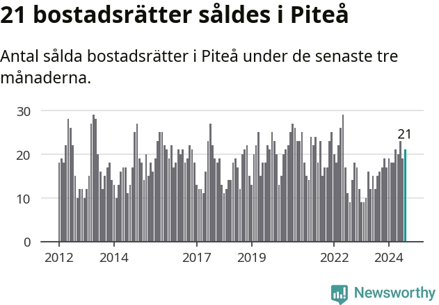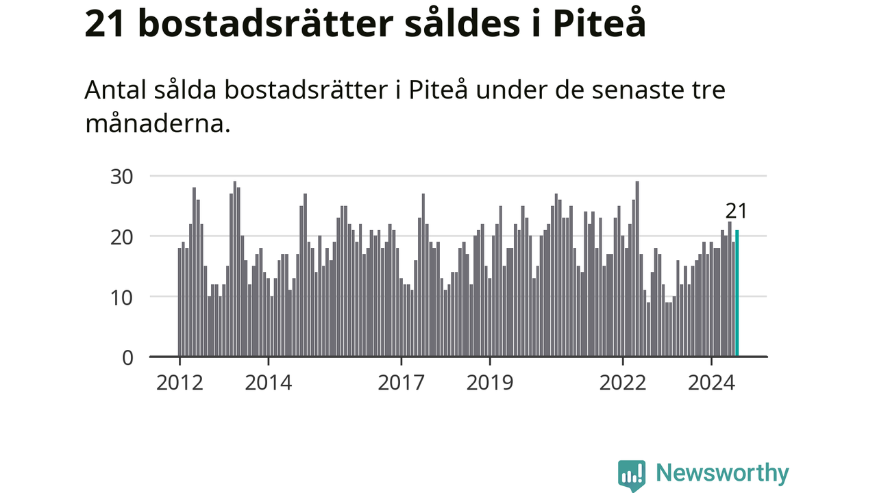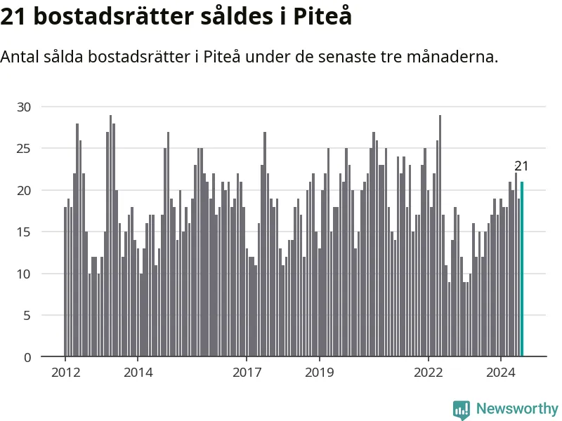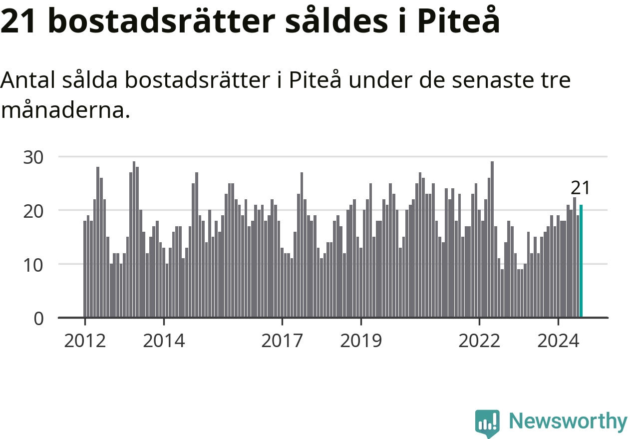Mellan juni och augusti gjordes sammanlagt 21 affärer med bostadsrätter i Piteå kommun. Det kan jämföras med 15 vid motsvarande tid i fjol.