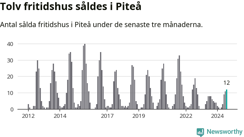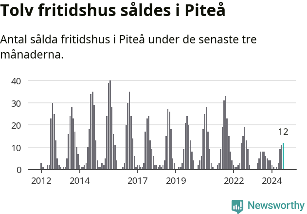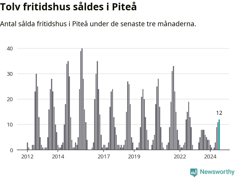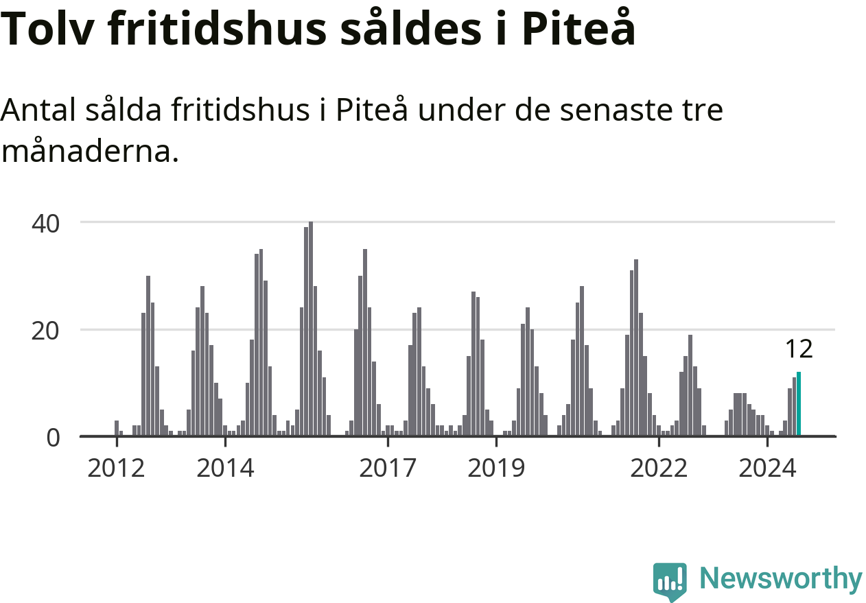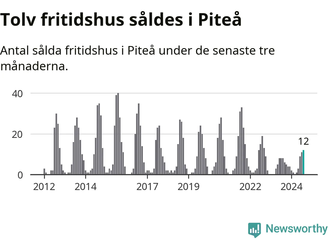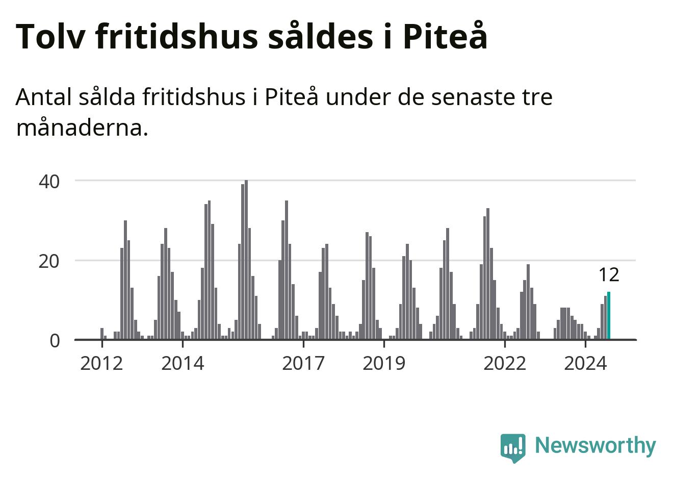 Mellan juni och augusti gjordes sammanlagt tolv affärer med fritidshus i Piteå kommun. Det kan jämföras med åtta vid motsvarande tid i fjol.