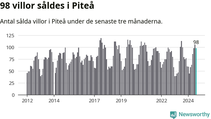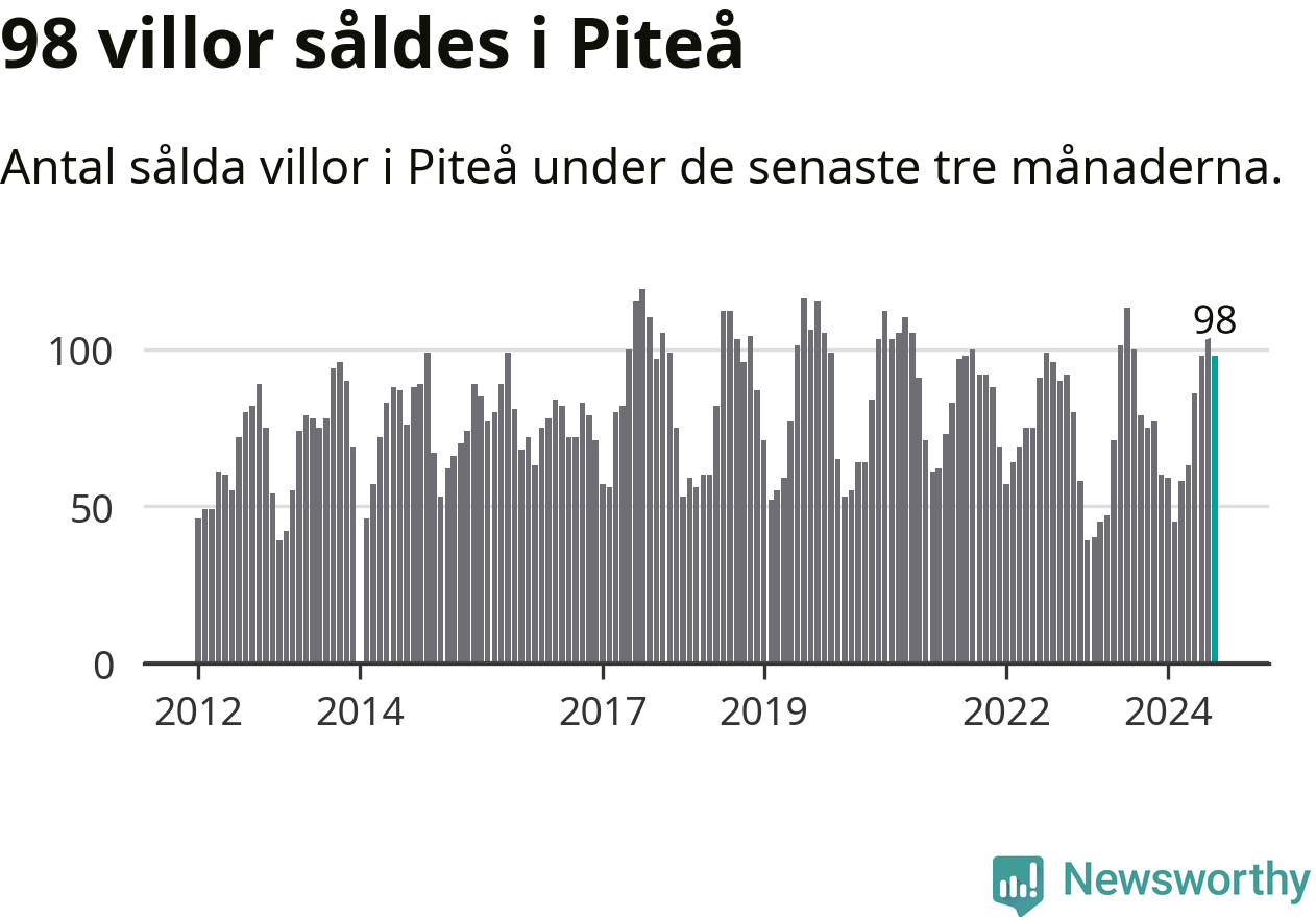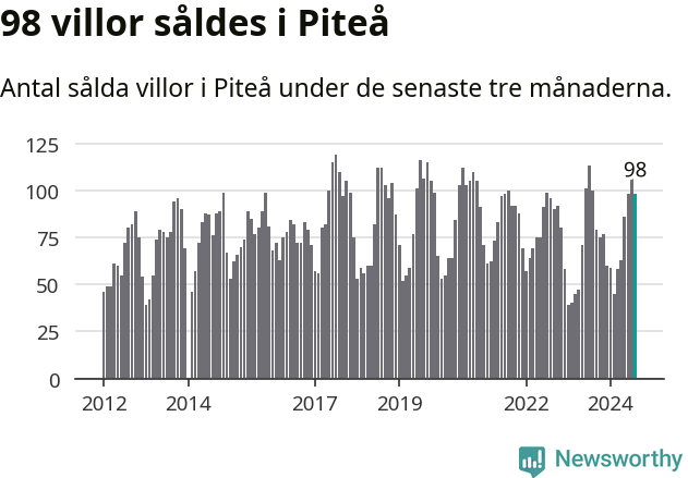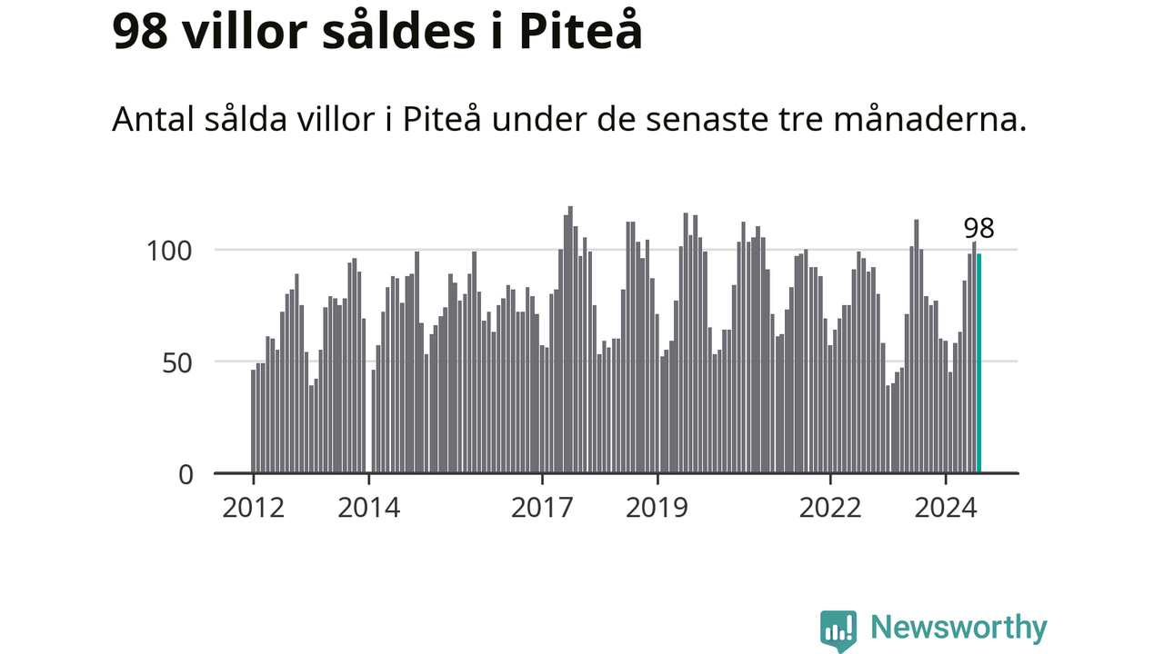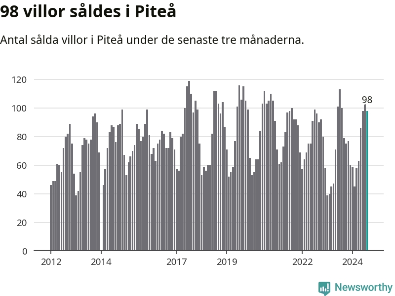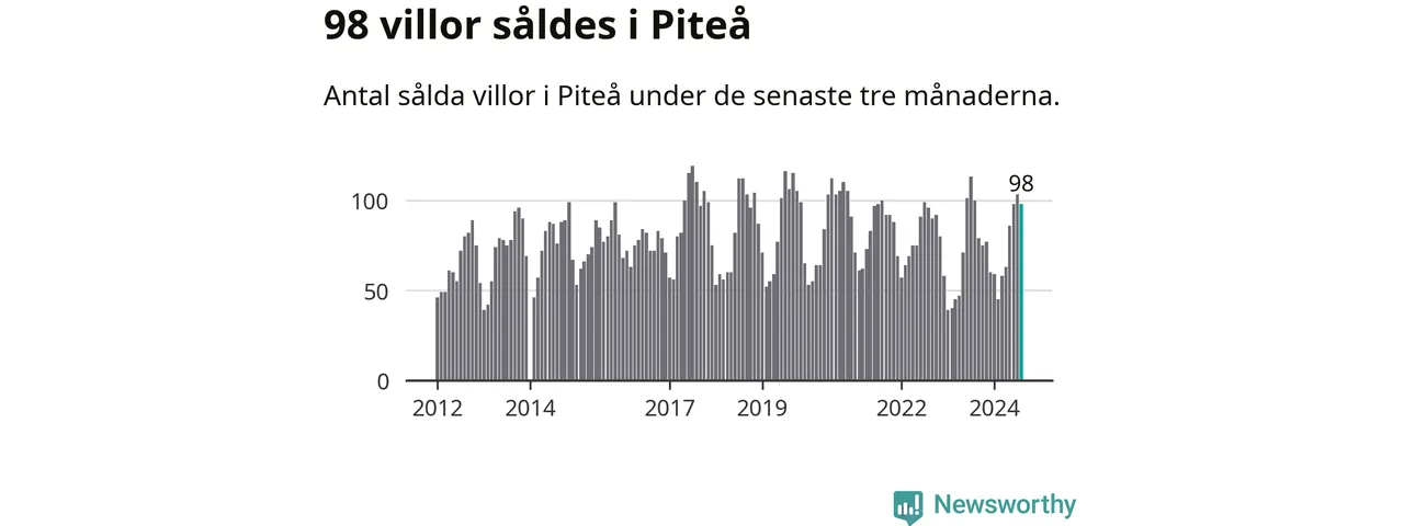 Sammanlagt såldes 98 villor i Piteå kommun mellan juni och augusti till ett genomsnittligt pris på 2,2 miljoner kronor. I fjol gjordes 100 affärer vid den här tiden på året.