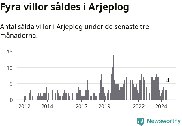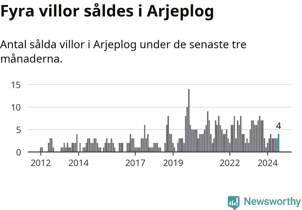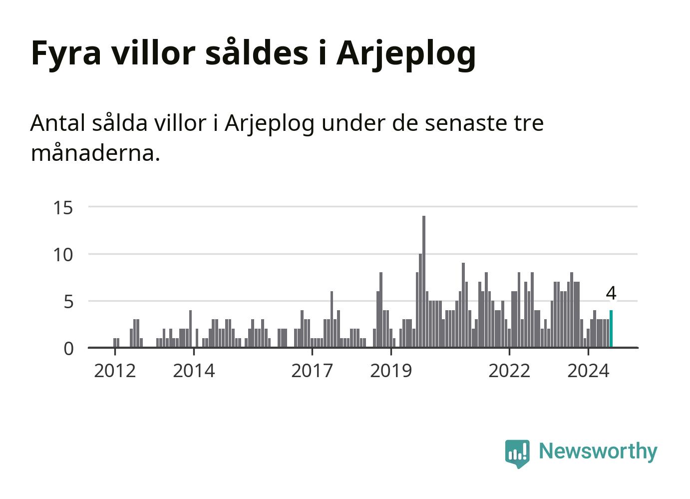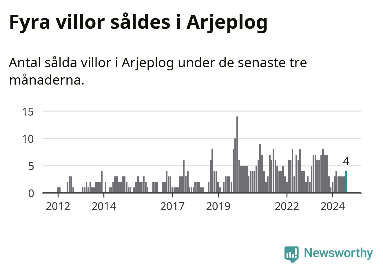 Mellan juni och augusti gjordes sammanlagt fyra affärer med villor i Arjeplogs kommun. Det kan jämföras med åtta vid motsvarande tid i fjol.