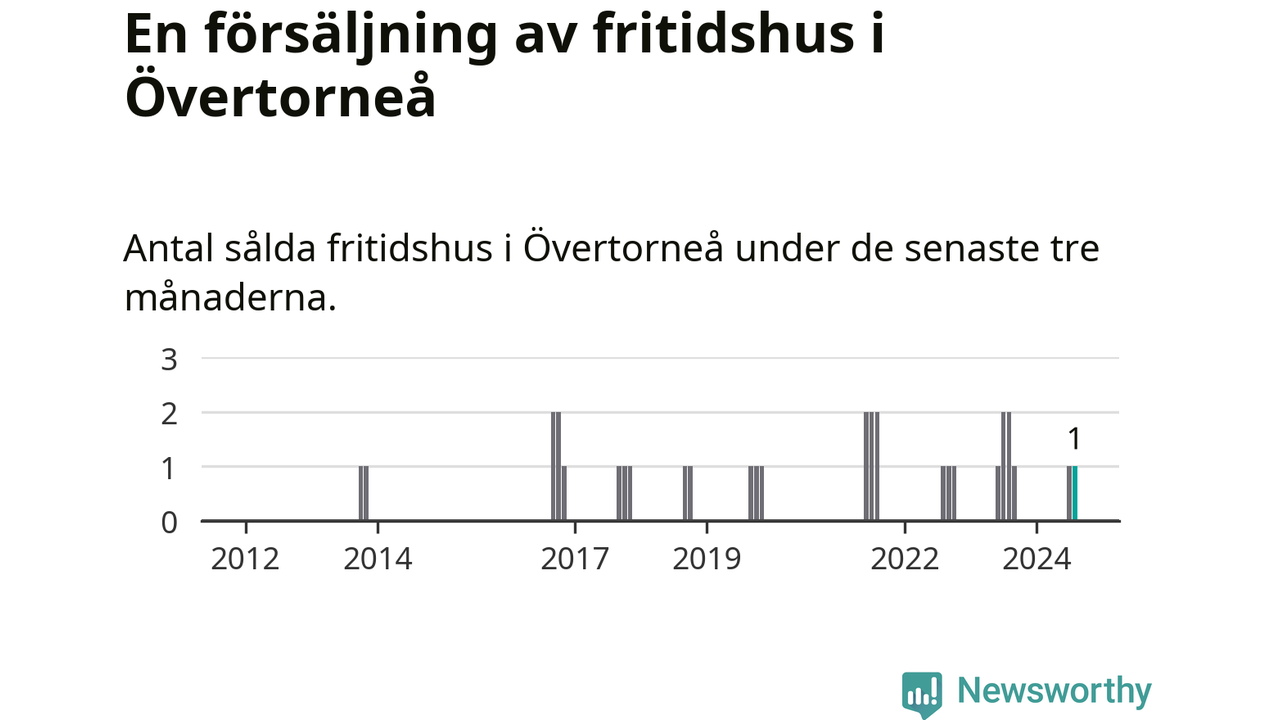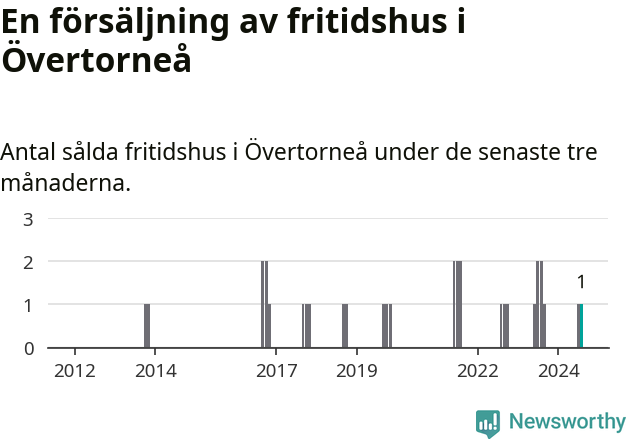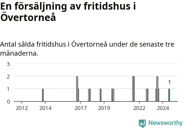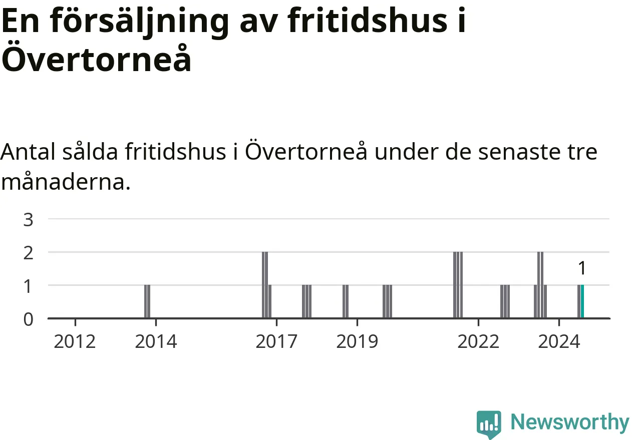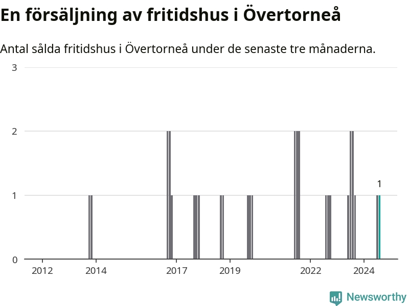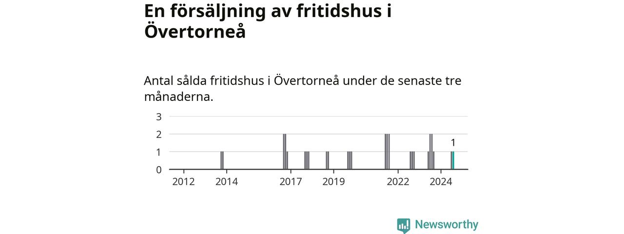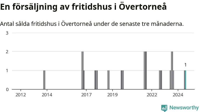Mellan juni och augusti gjordes sammanlagt en affär med fritidshus i Övertorneå kommun. Det kan jämföras med två vid motsvarande tid i fjol.