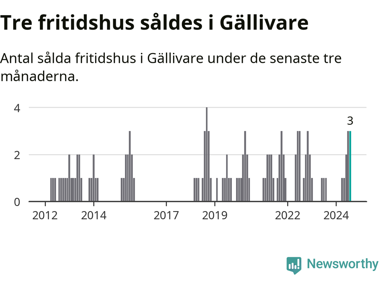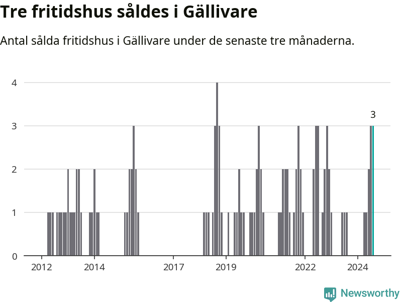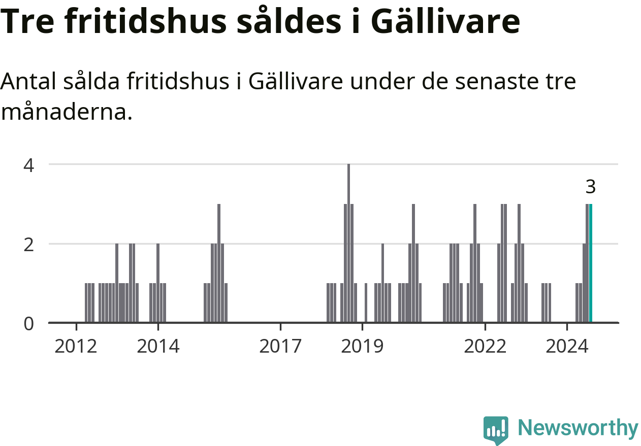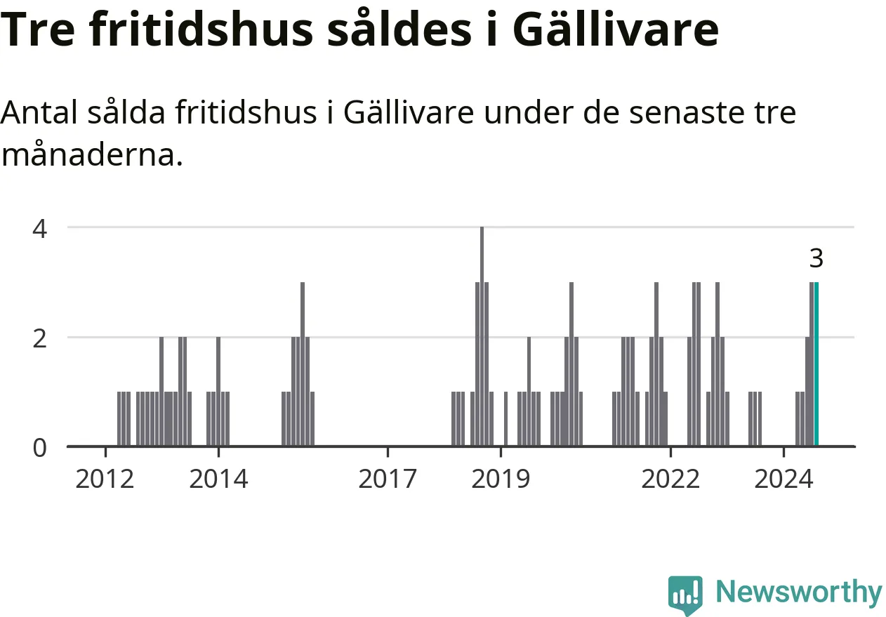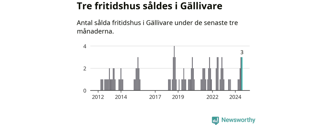 Mellan juni och augusti gjordes sammanlagt tre affärer med fritidshus i Gällivare kommun. Det kan jämföras med ett vid motsvarande tid i fjol.