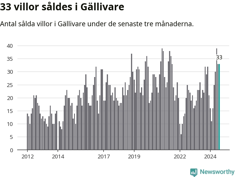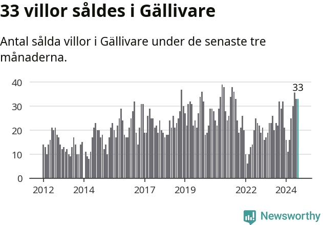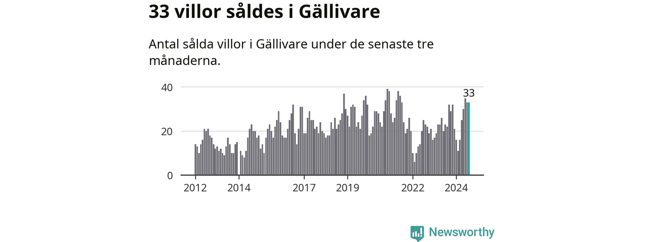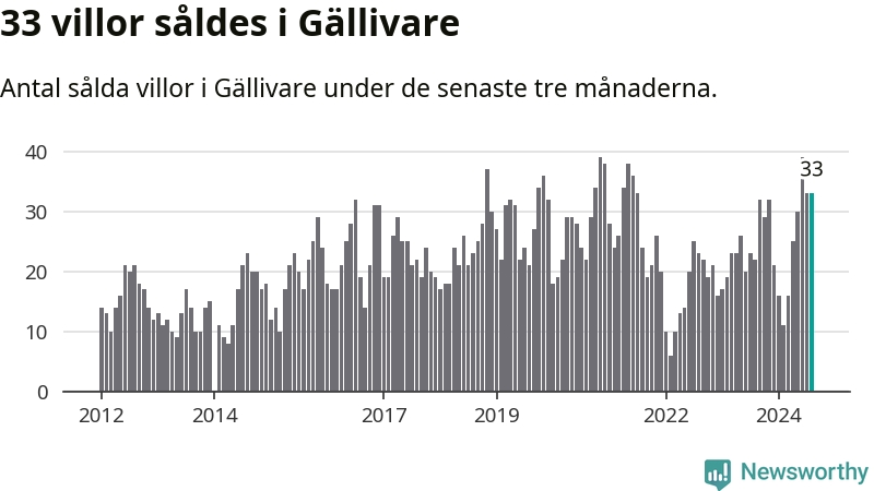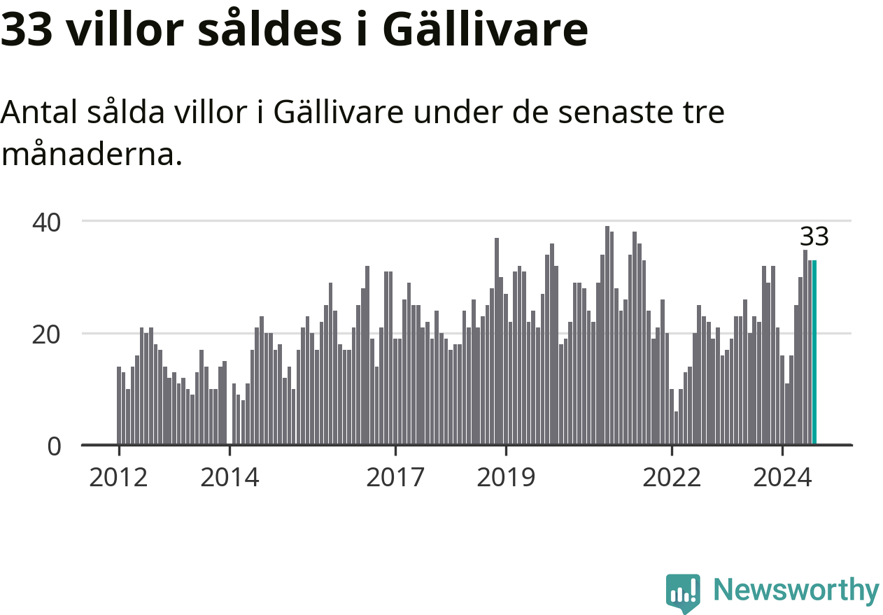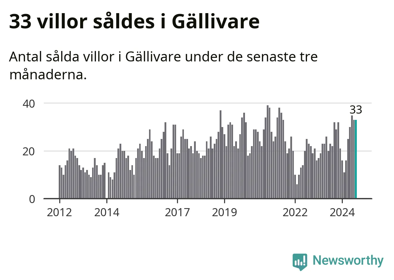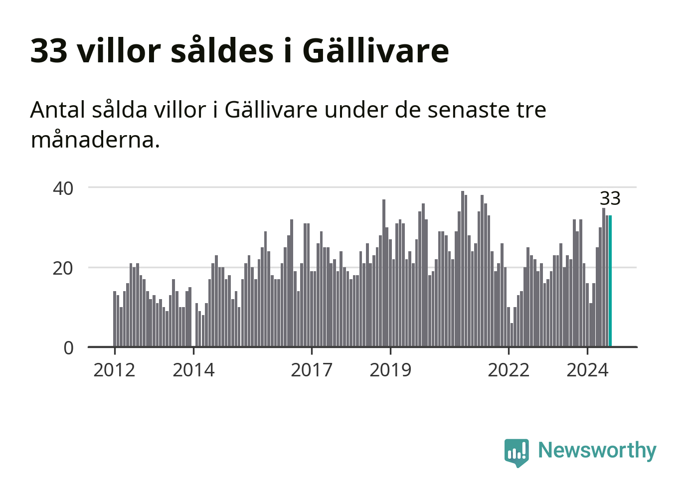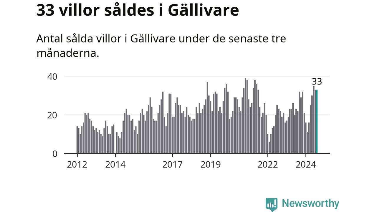 Mellan juni och augusti gjordes sammanlagt 33 affärer med villor i Gällivare kommun. Det kan jämföras med 22 vid motsvarande tid i fjol.