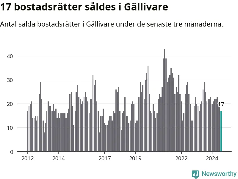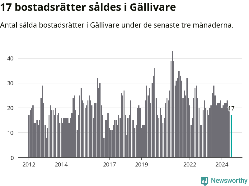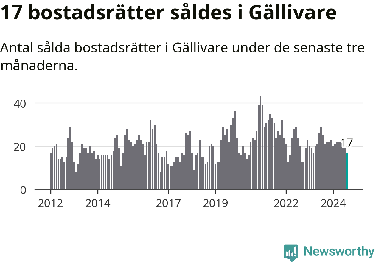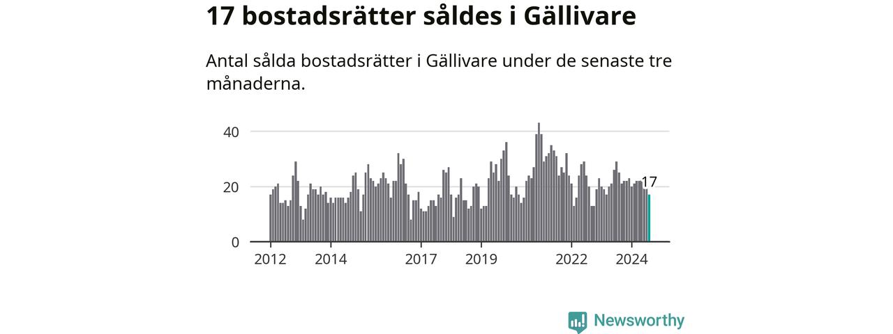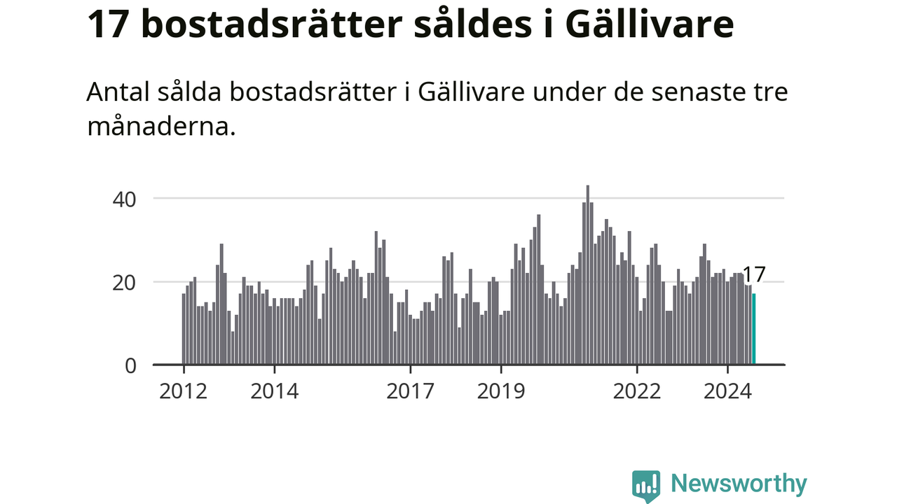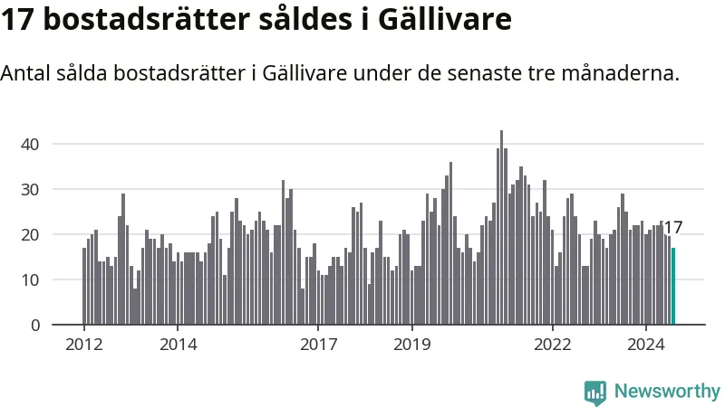 Mellan juni och augusti gjordes sammanlagt 17 affärer med bostadsrätter i Gällivare kommun. Det kan jämföras med 25 vid motsvarande tid i fjol.