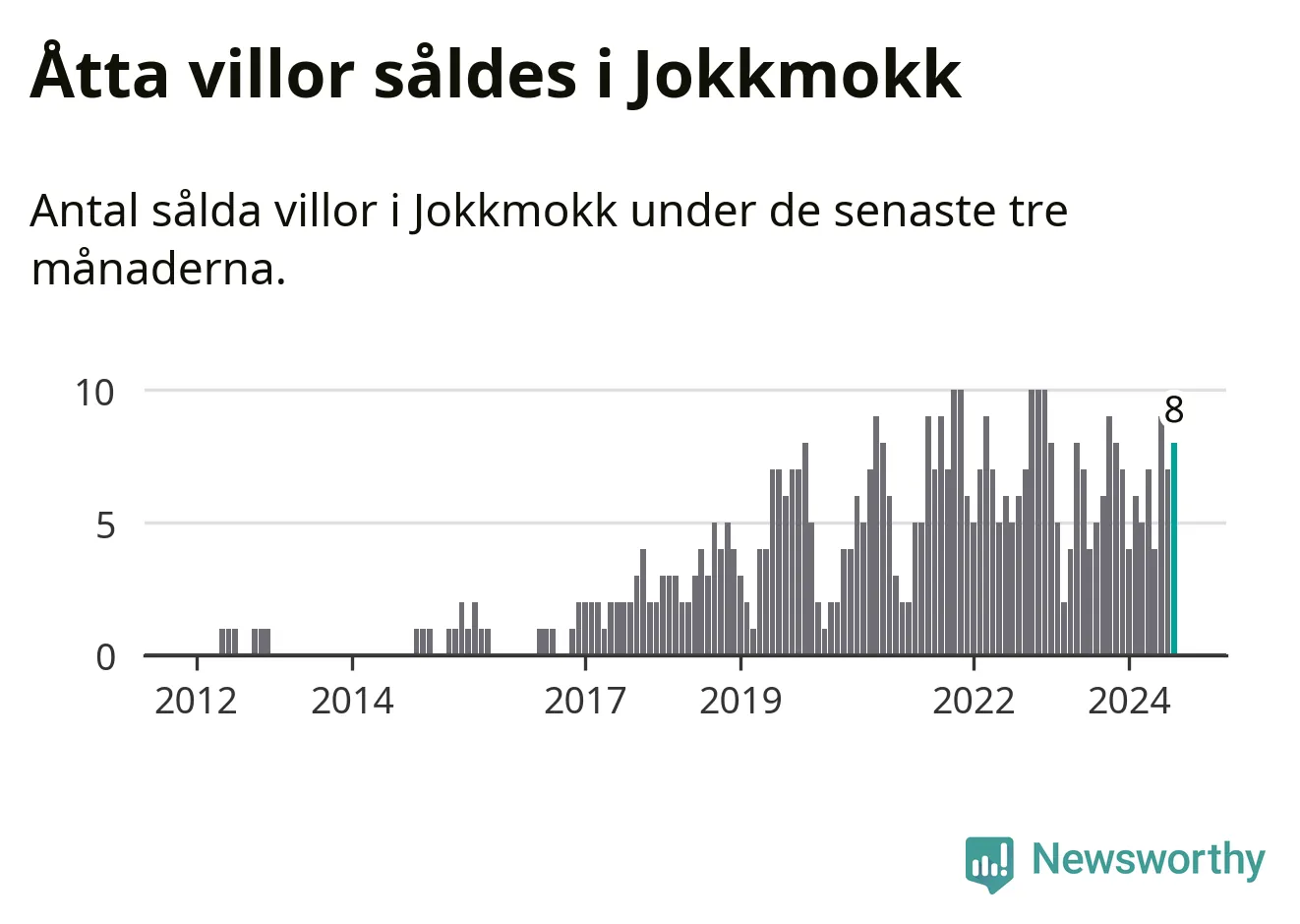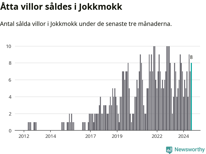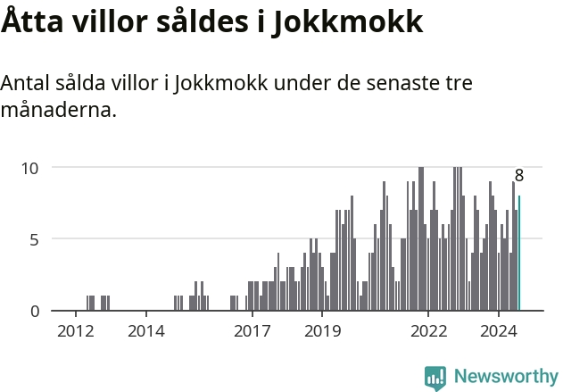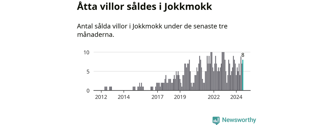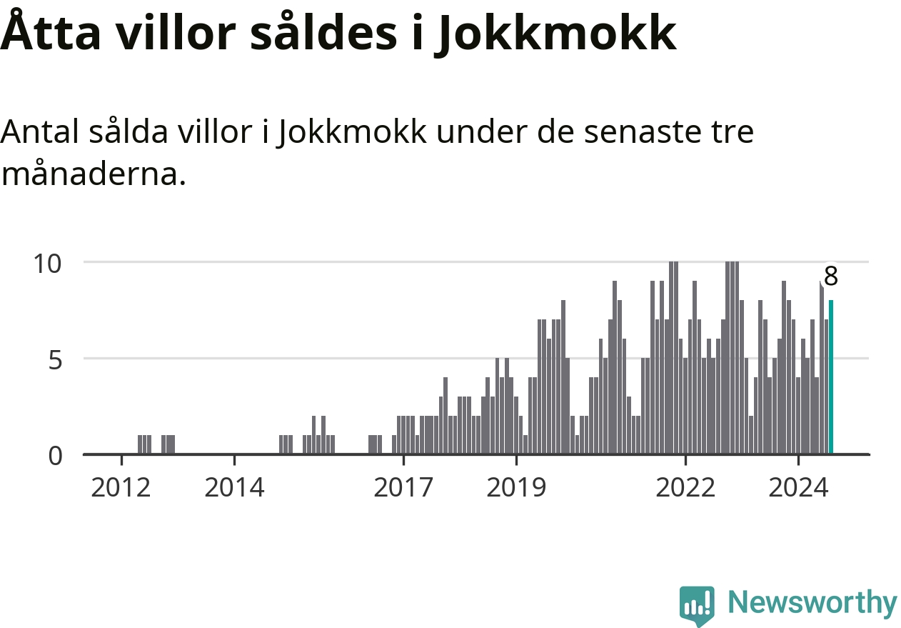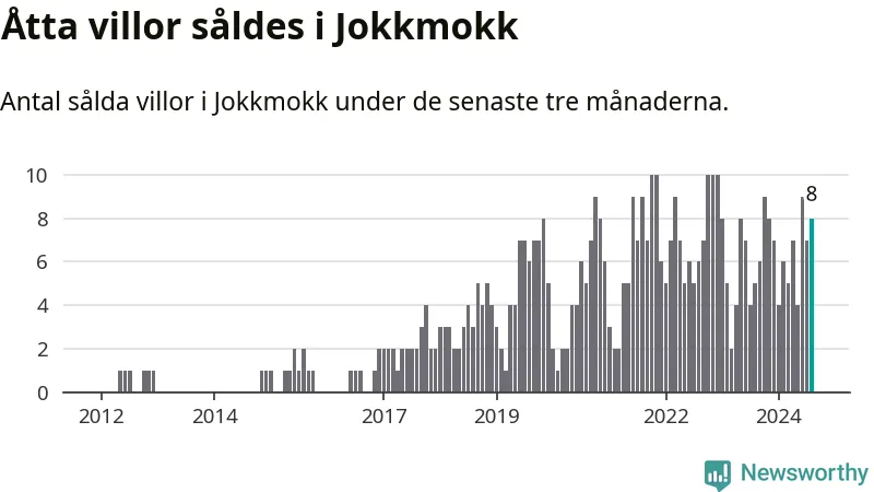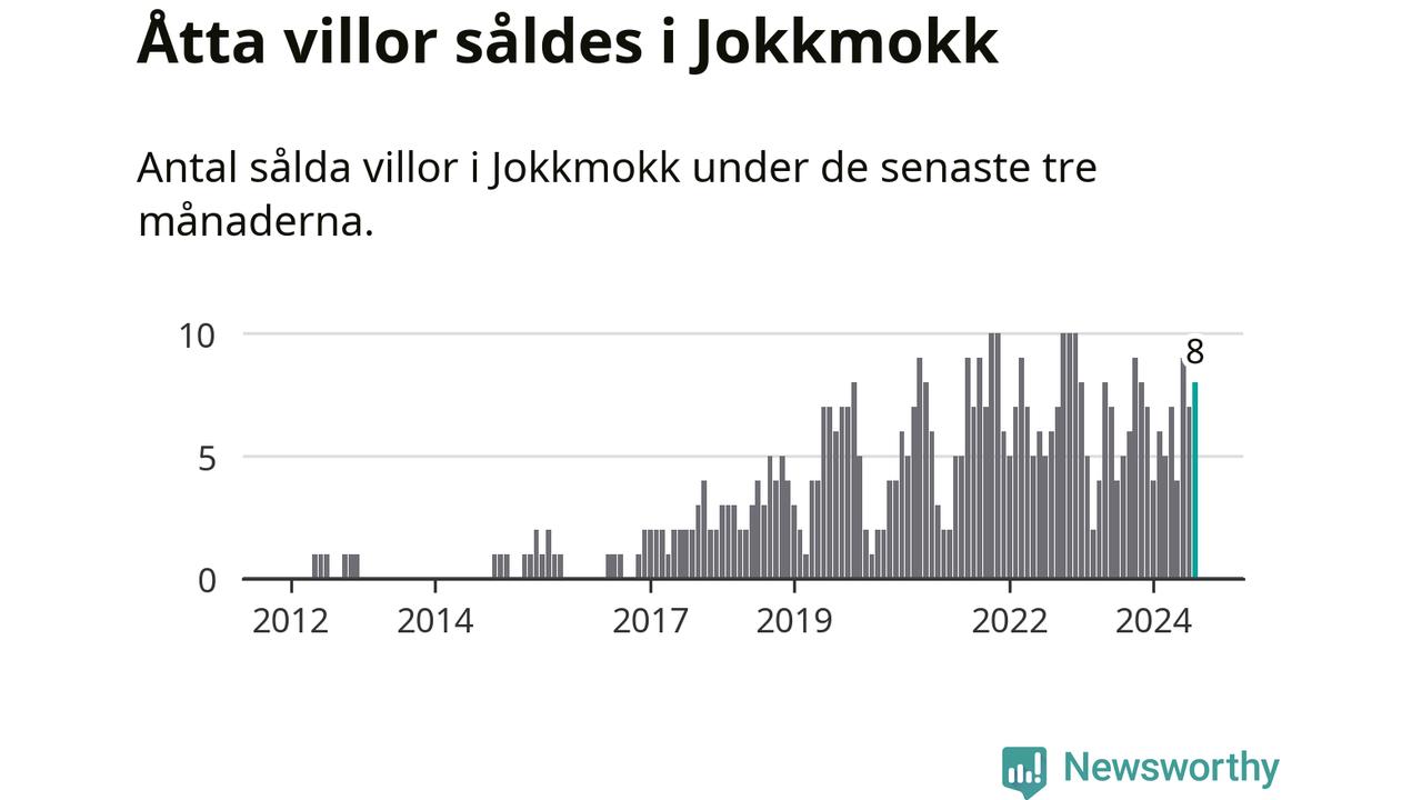 Mellan juni och augusti gjordes sammanlagt åtta affärer med villor i Jokkmokks kommun. Det kan jämföras med fem vid motsvarande tid i fjol.