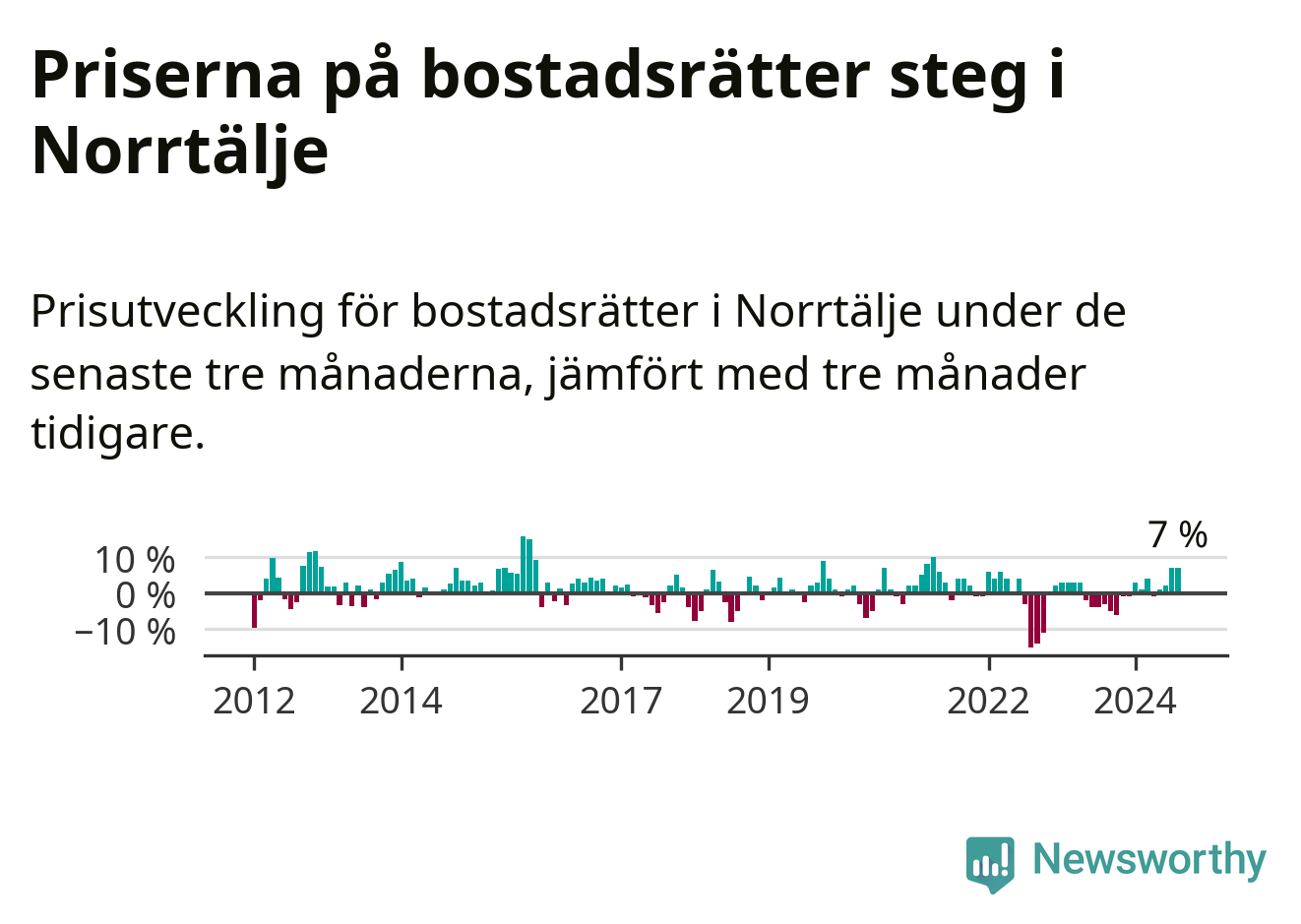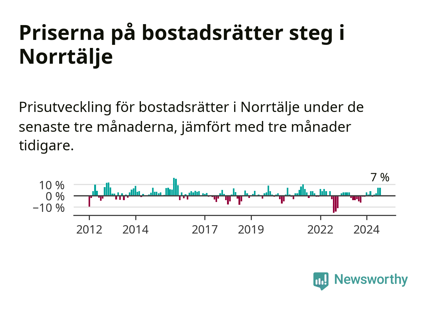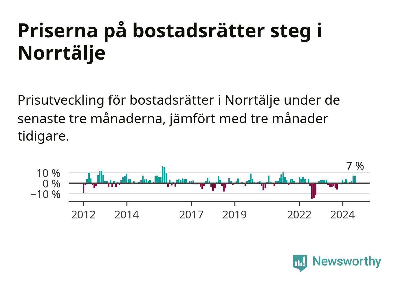 Priserna på bostadsrätter har gått upp i Norrtälje kommun. Medelpriset på försäljningarna under de senaste tre månaderna visar på en uppgång med 7 procent.