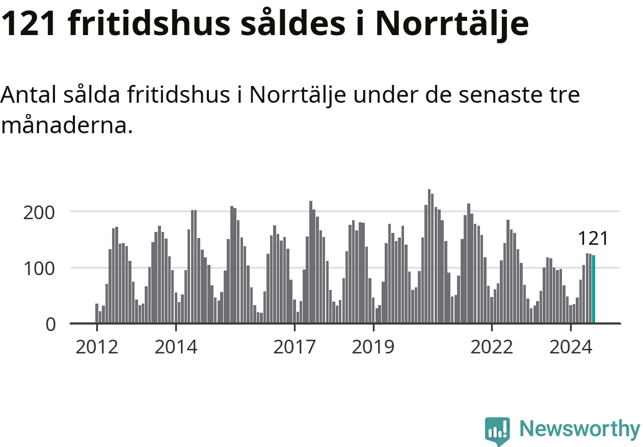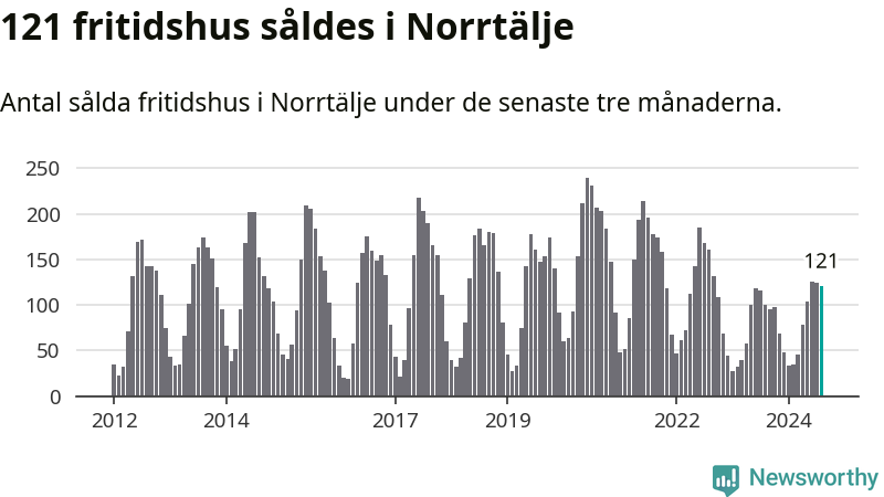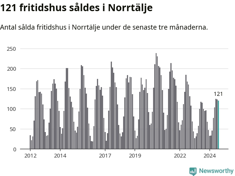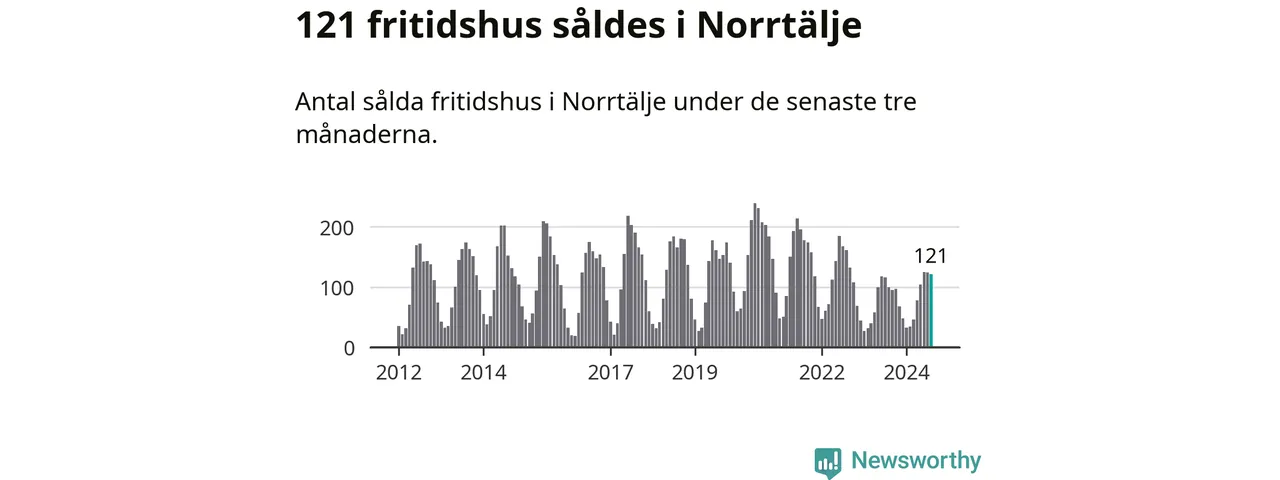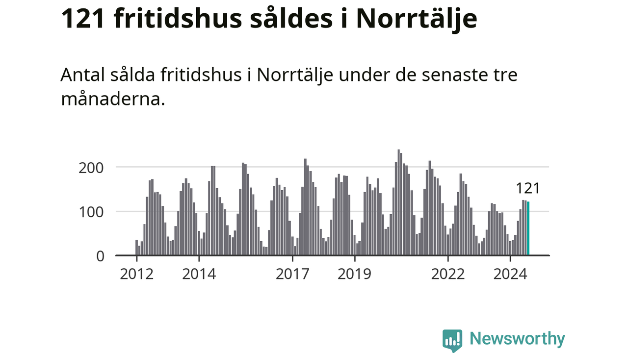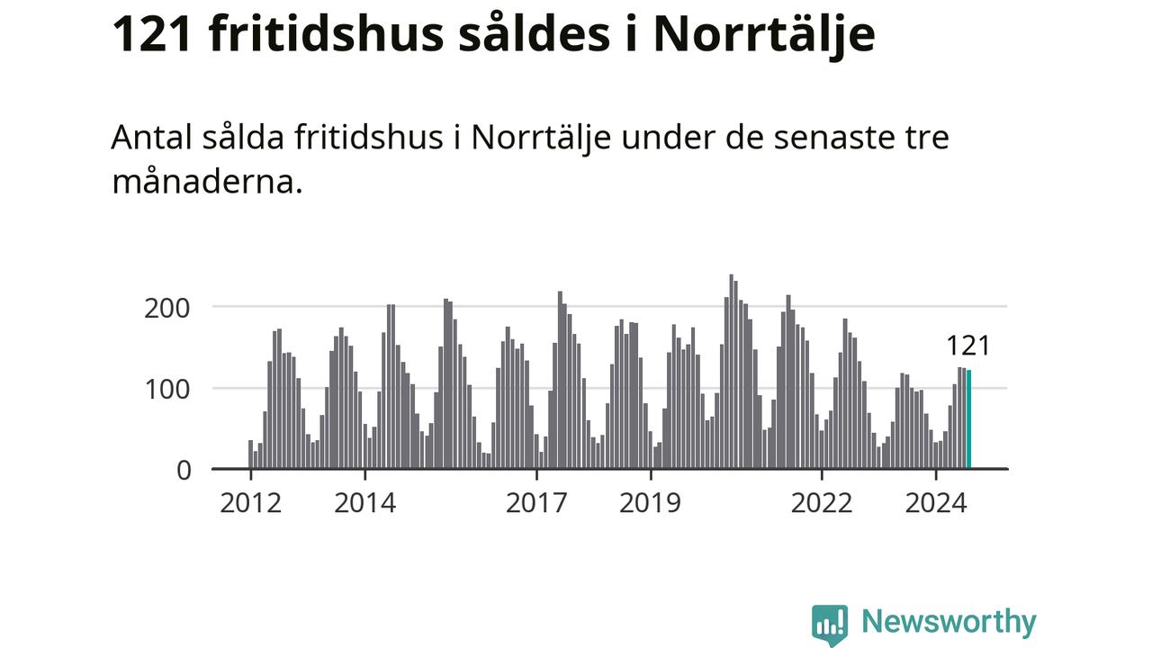 Sammanlagt såldes 121 fritidshus i Norrtälje kommun mellan juni och augusti till ett genomsnittligt pris på 2,5 miljoner kronor. I fjol gjordes 100 affärer vid den här tiden på året.
