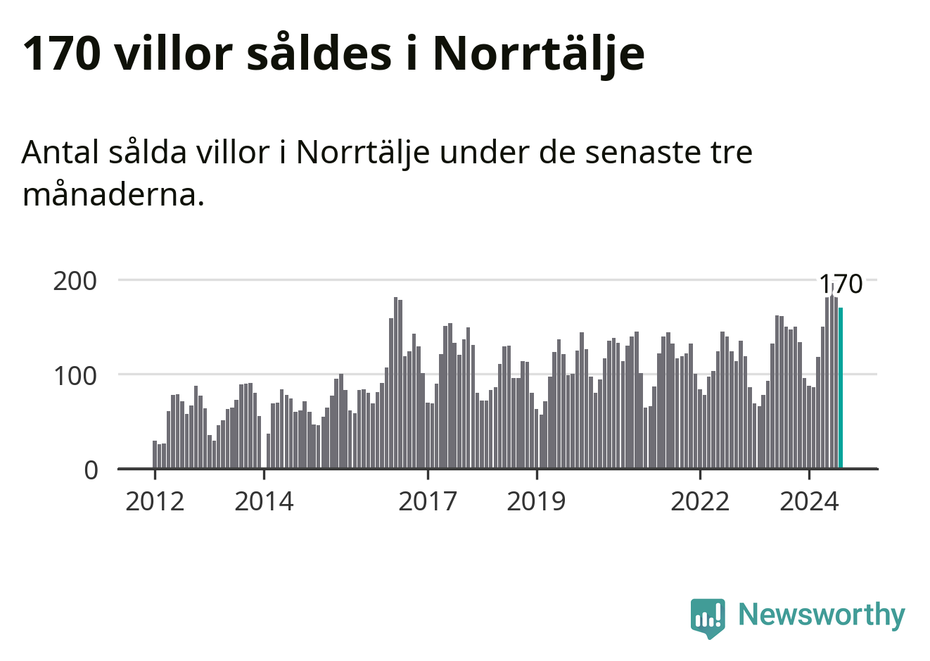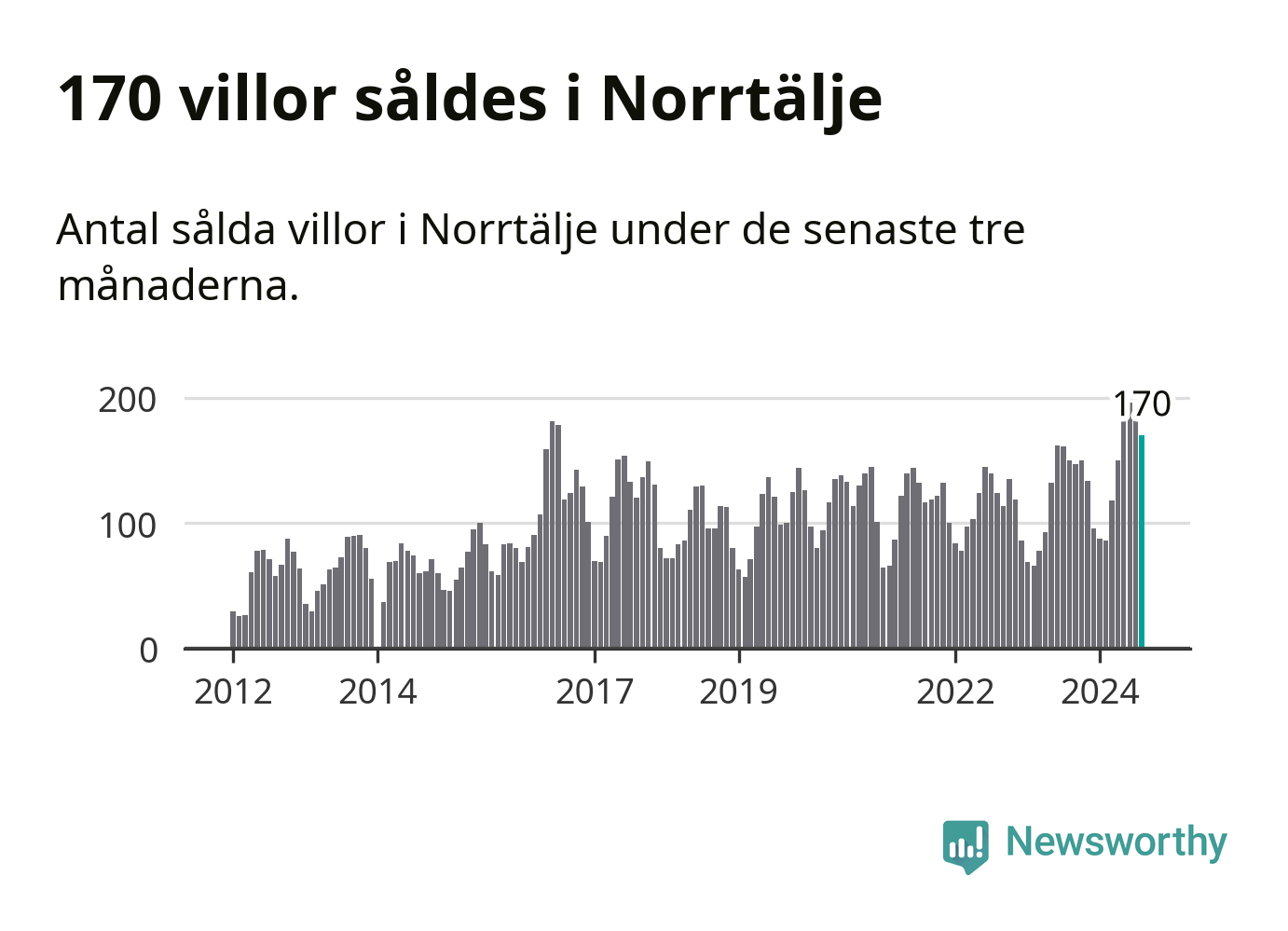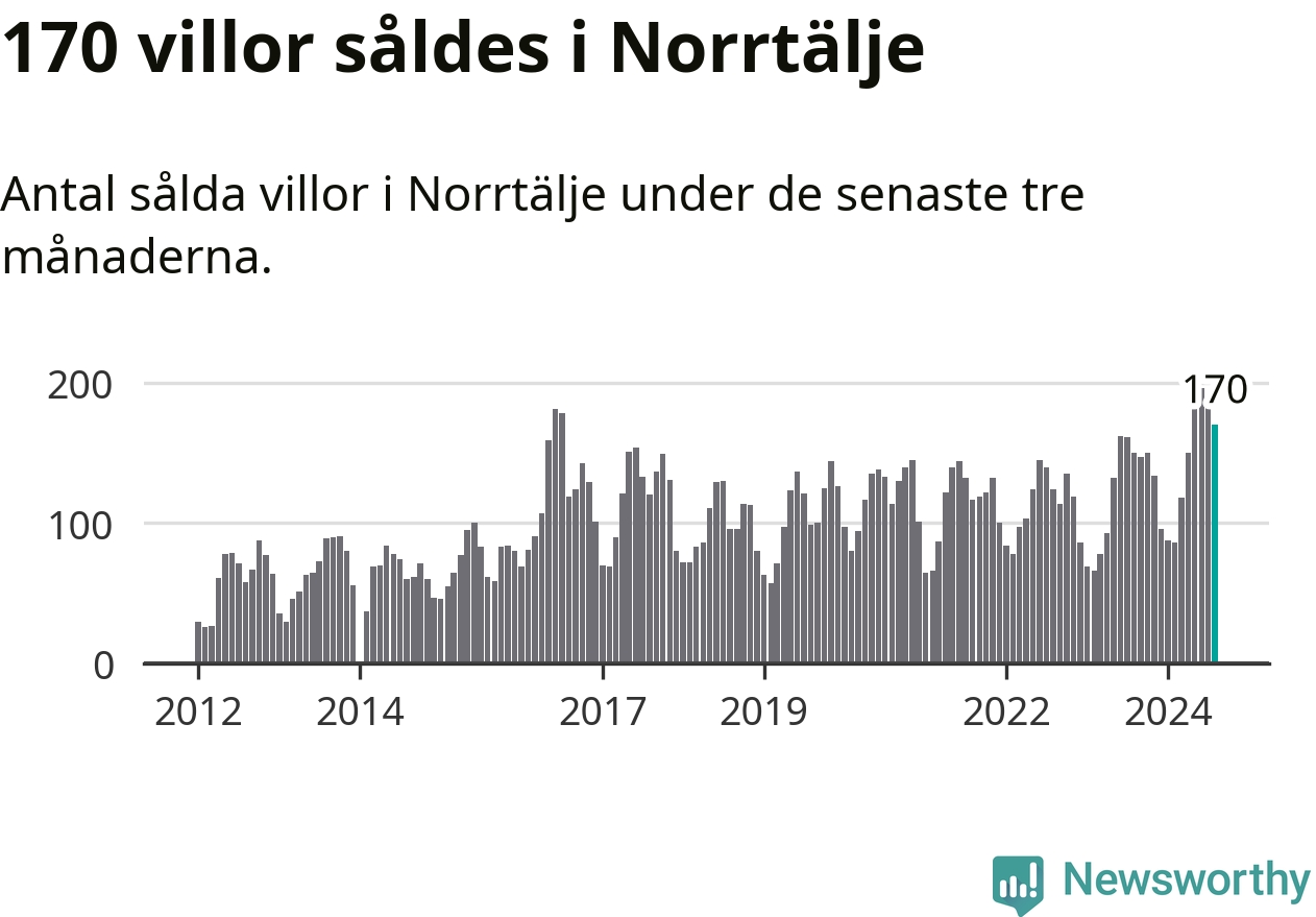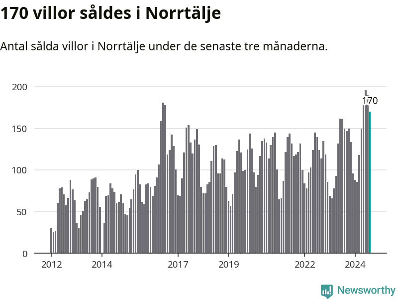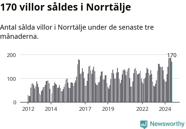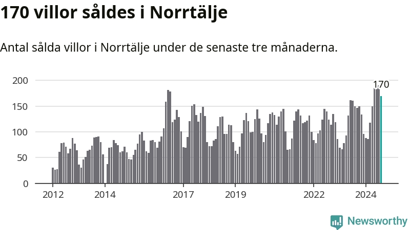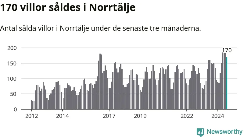 Sammanlagt såldes 170 villor i Norrtälje kommun mellan juni och augusti till ett genomsnittligt pris på 3,4 miljoner kronor. I fjol gjordes 150 affärer vid den här tiden på året.