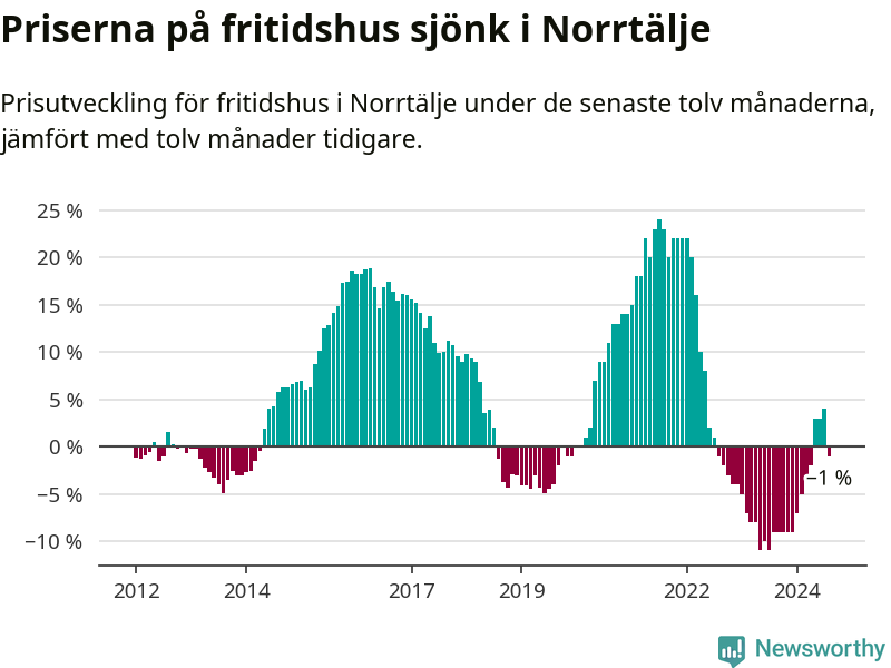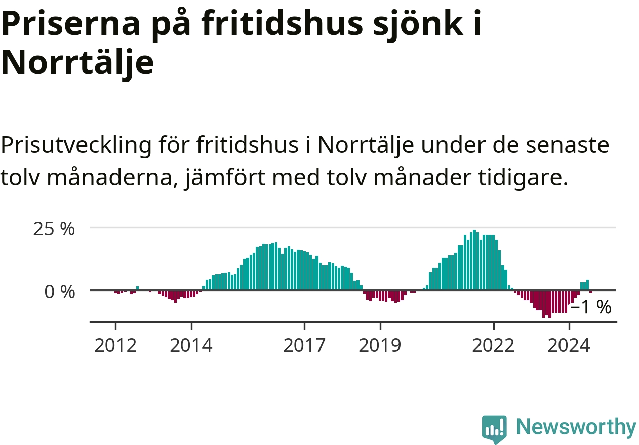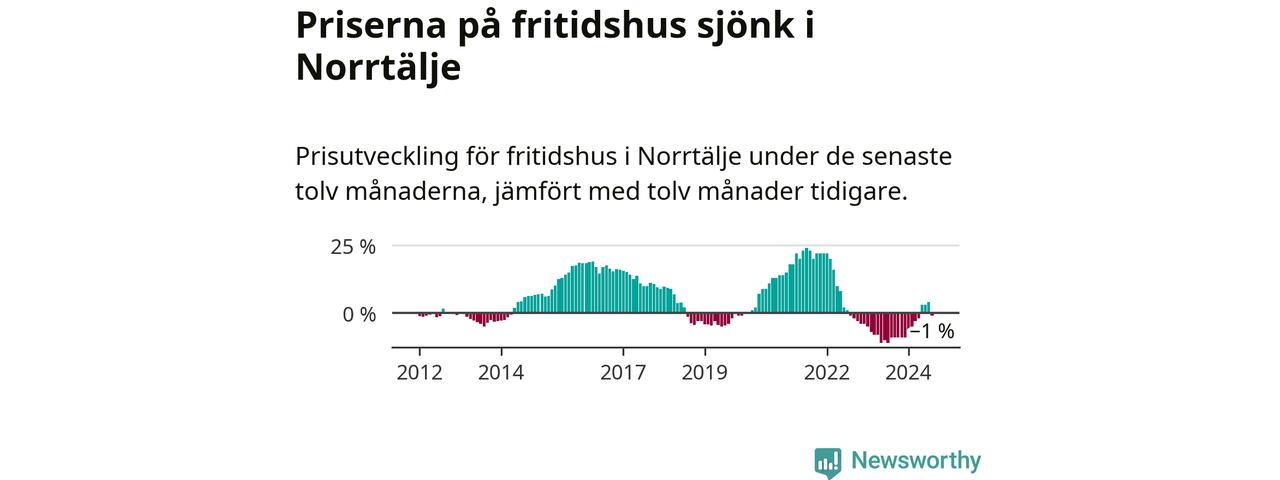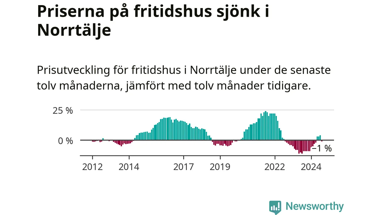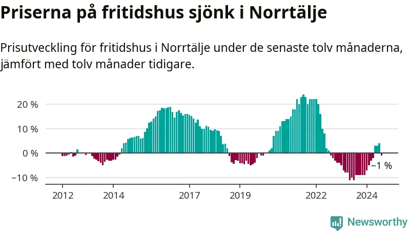 Priserna på fritidshus har gått ner i Norrtälje kommun. Medelpriset på försäljningarna under de senaste tolv månaderna visar på en nedgång med 1 procent.