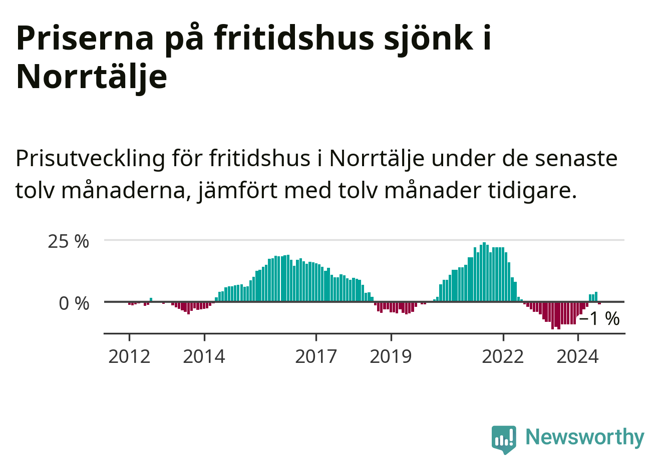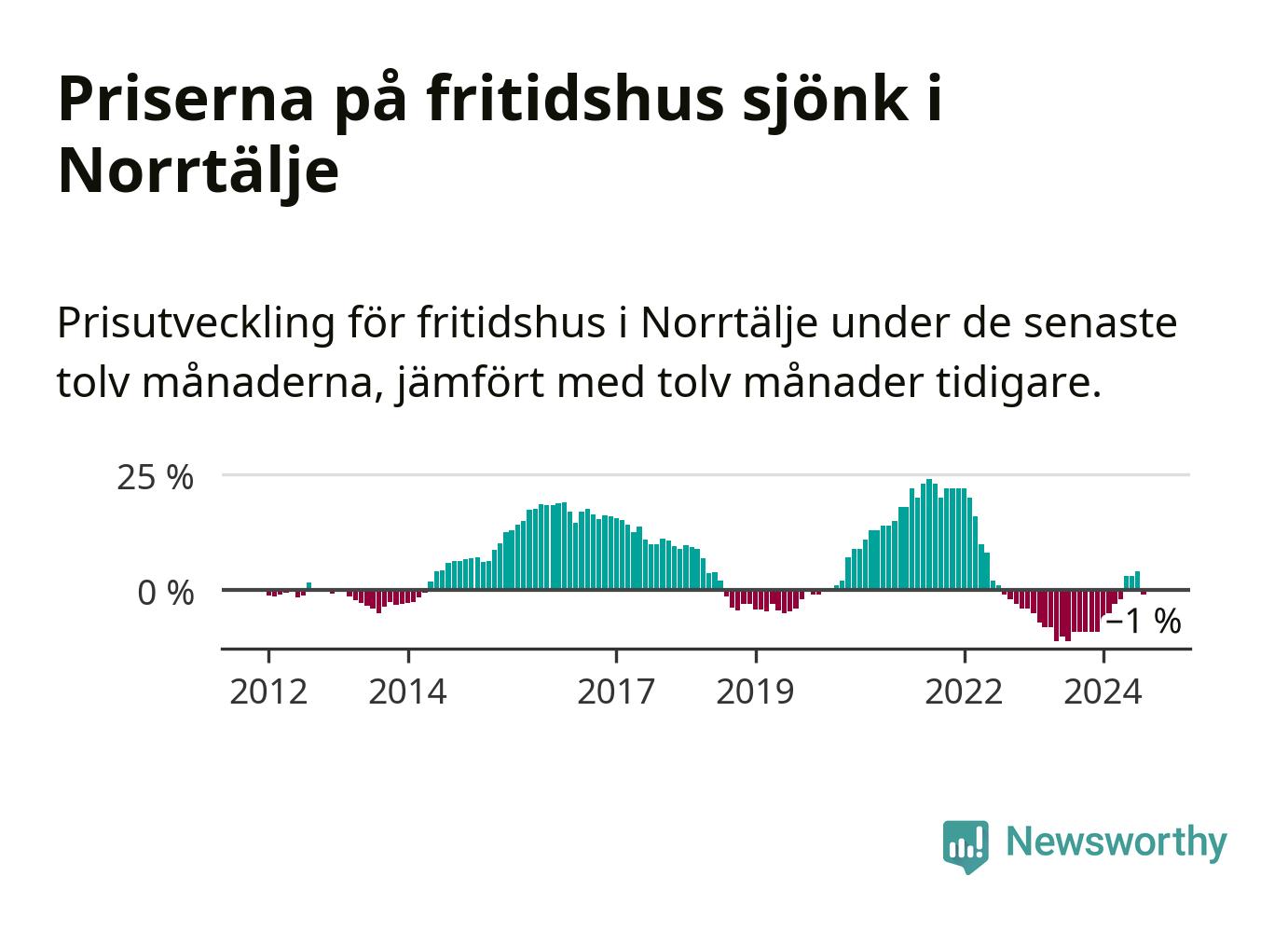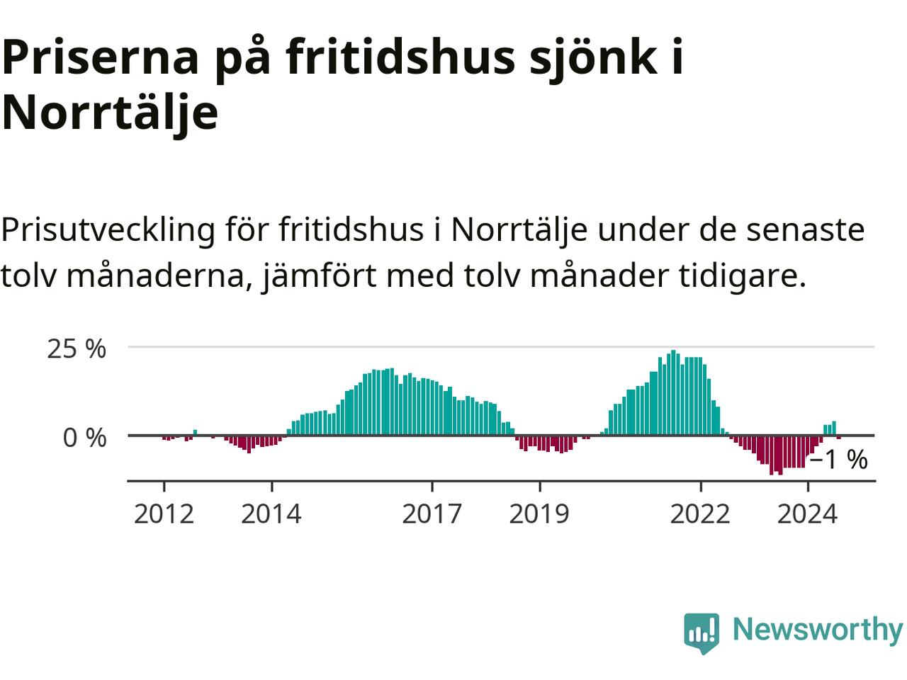 Priserna på fritidshus har gått ner i Norrtälje kommun. Medelpriset på försäljningarna under de senaste tolv månaderna visar på en nedgång med 1 procent.