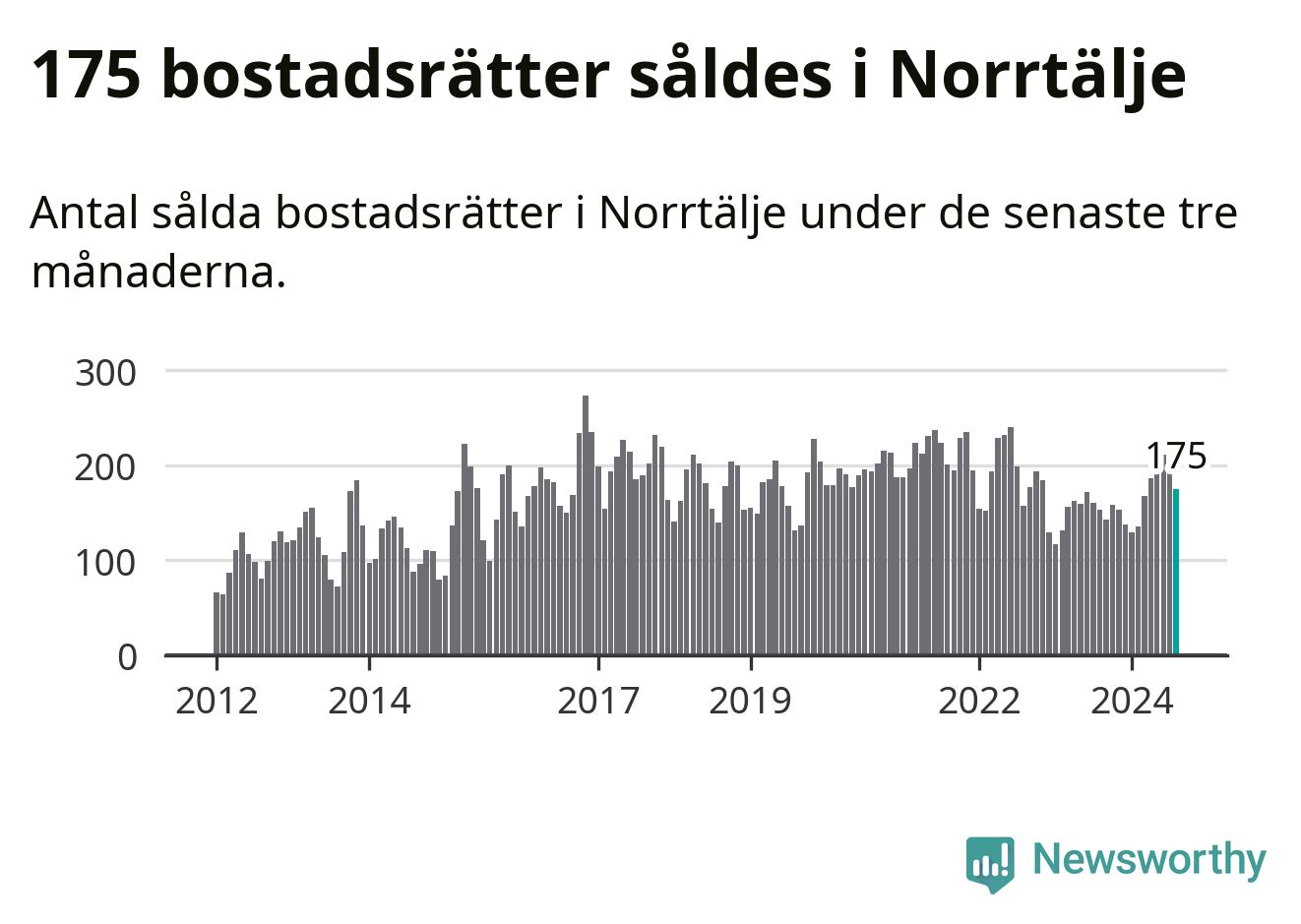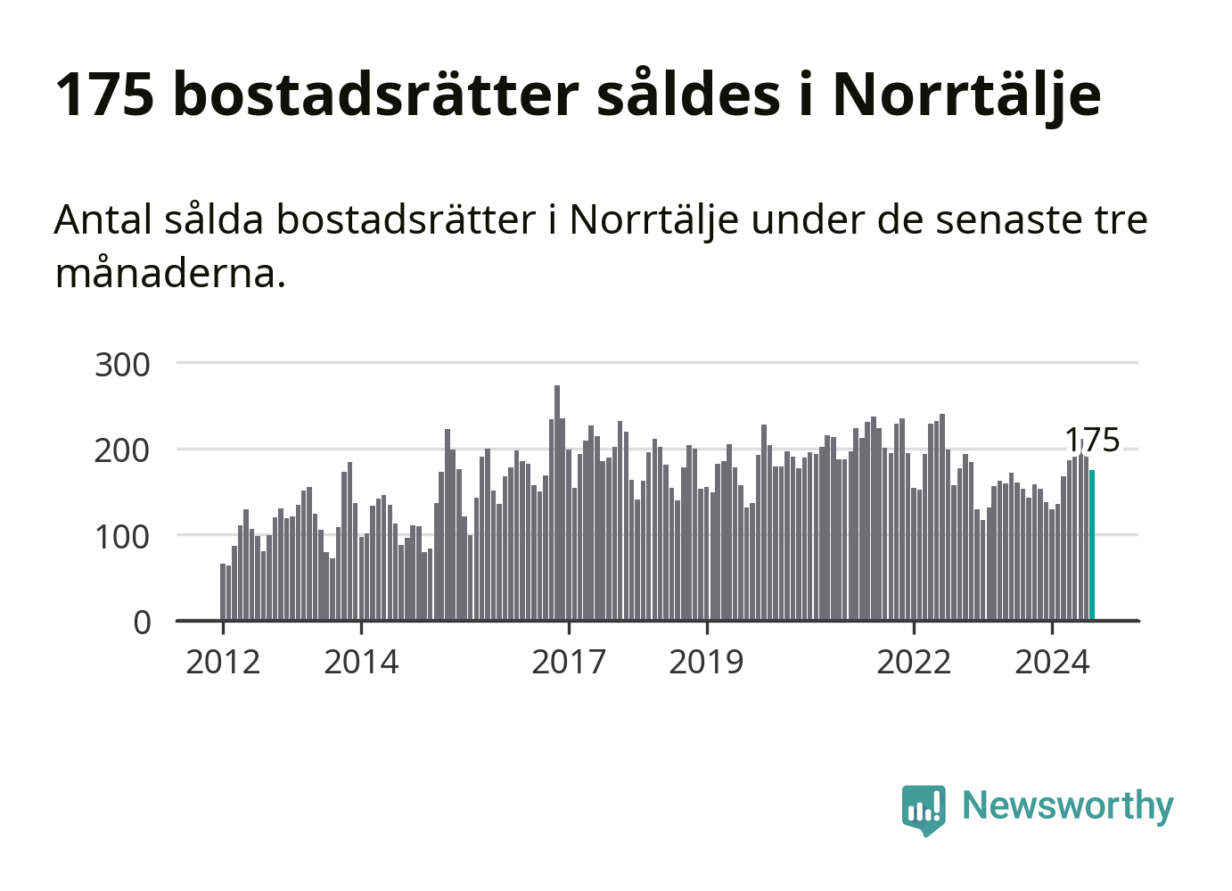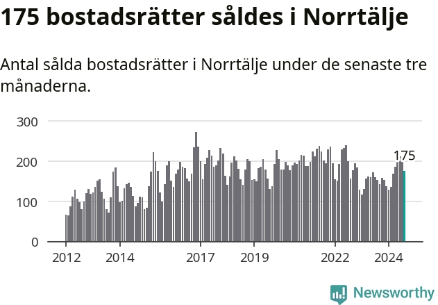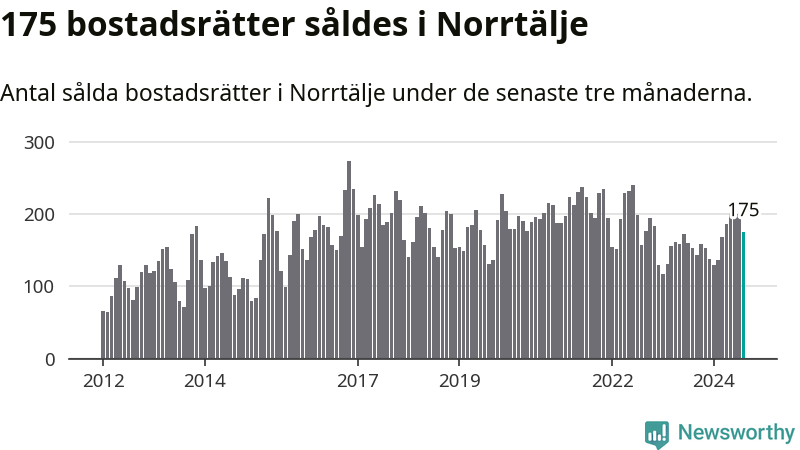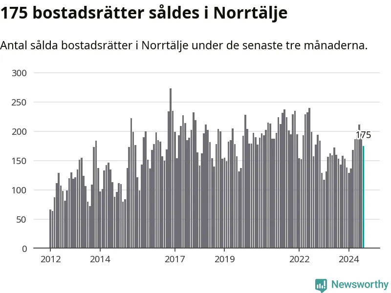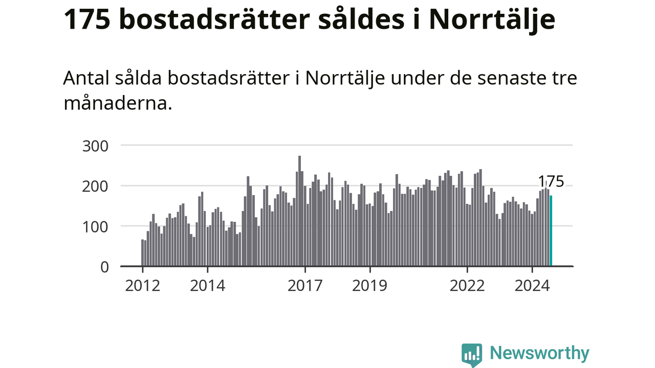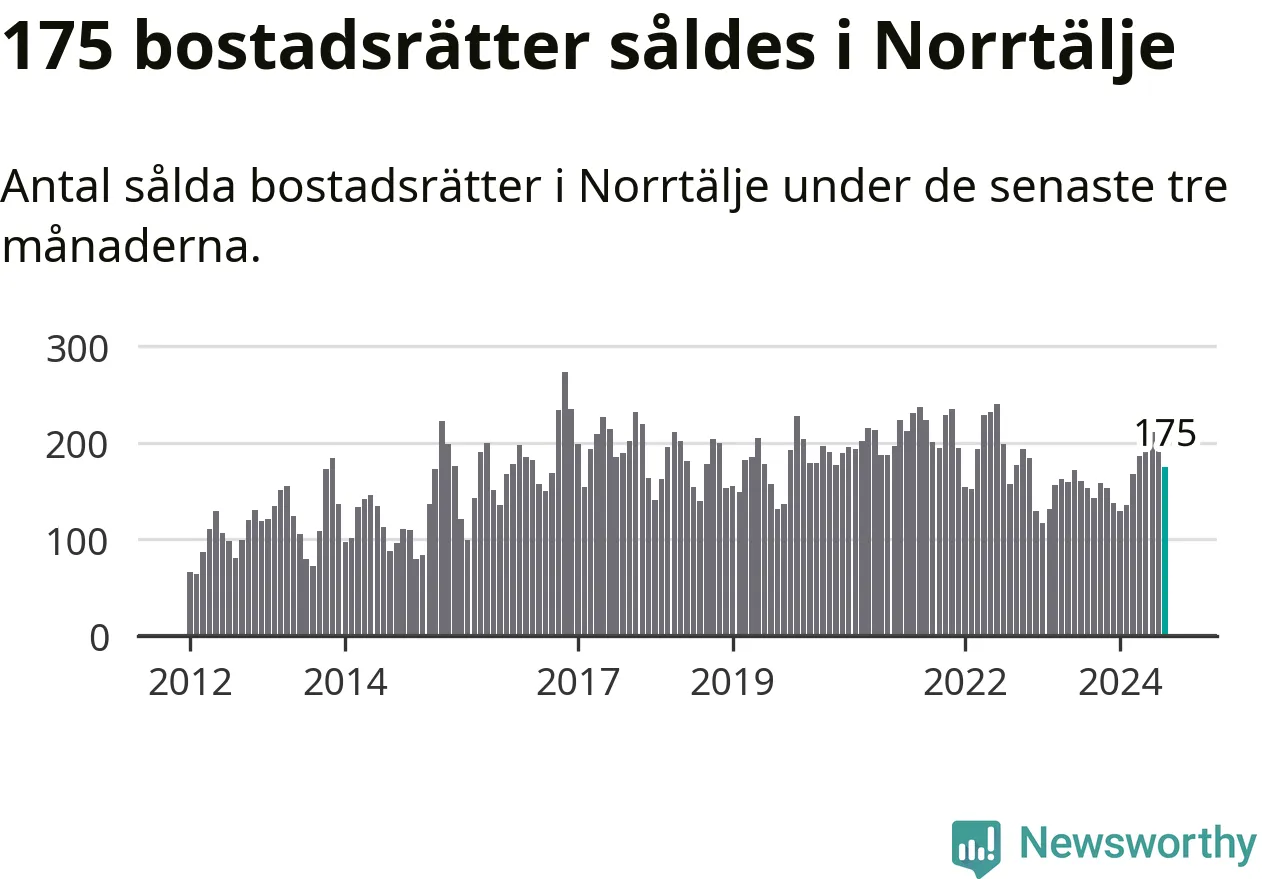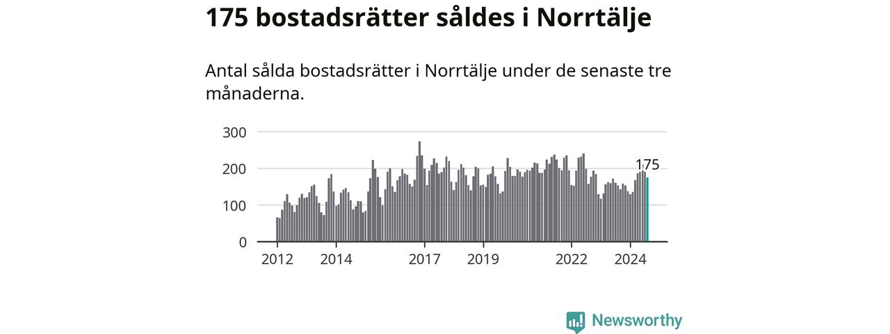 Sammanlagt såldes 175 bostadsrätter i Norrtälje kommun mellan juni och augusti till ett genomsnittligt pris på 2,0 miljoner kronor. I fjol gjordes 153 affärer vid den här tiden på året.