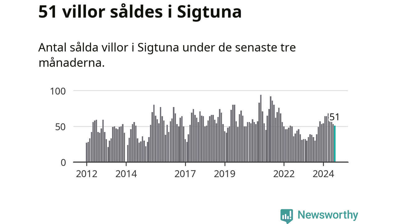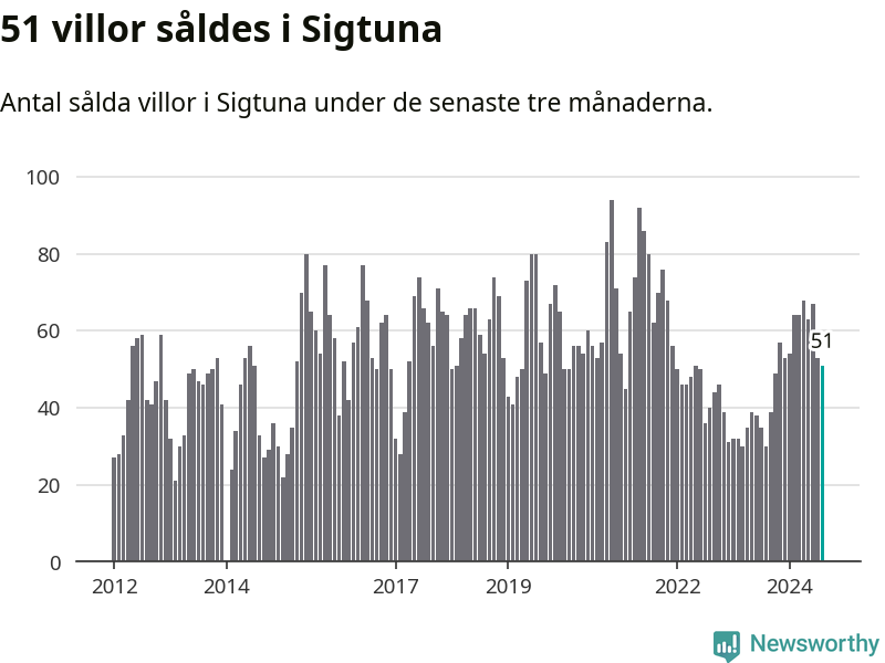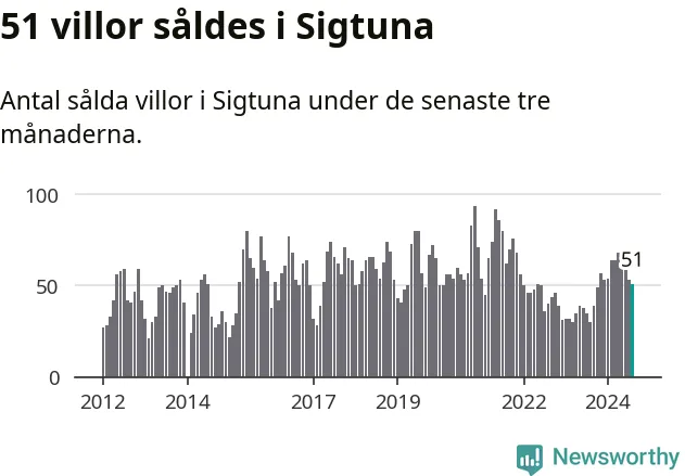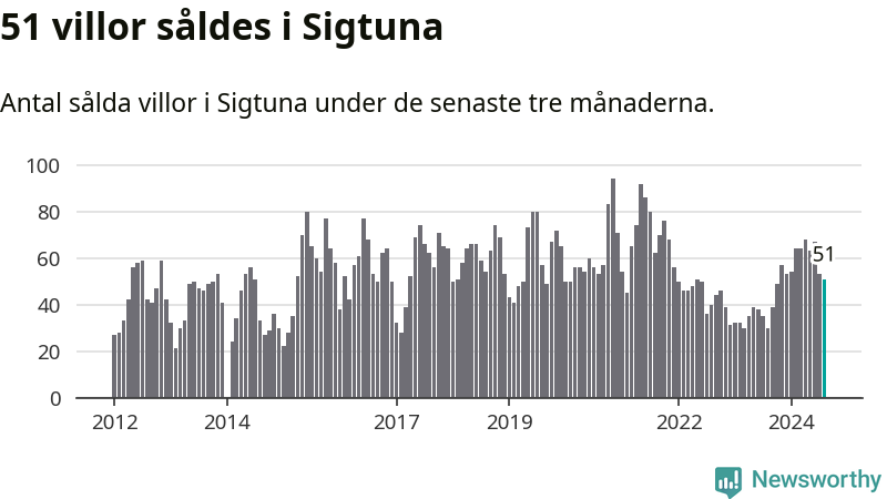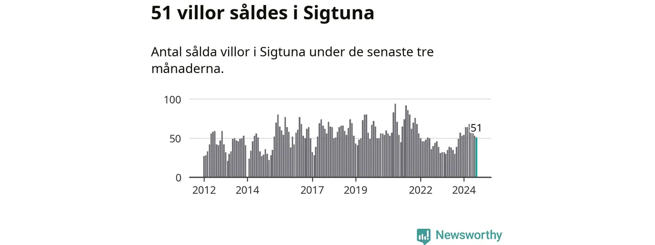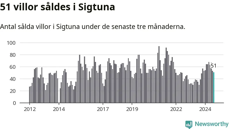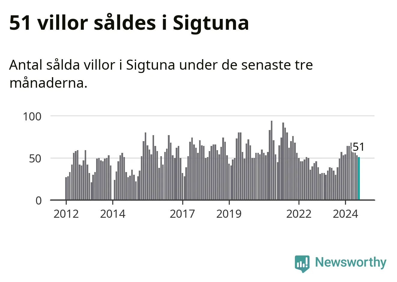 Sammanlagt såldes 51 villor i Sigtuna kommun mellan juni och augusti till ett genomsnittligt pris på 5,1 miljoner kronor. I fjol gjordes 30 affärer vid den här tiden på året.