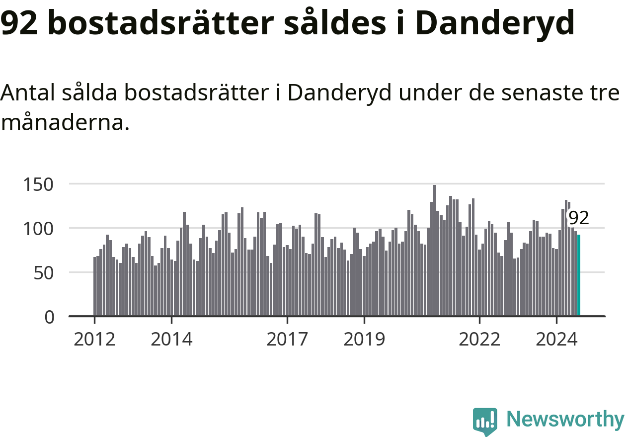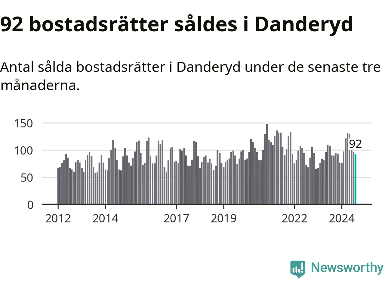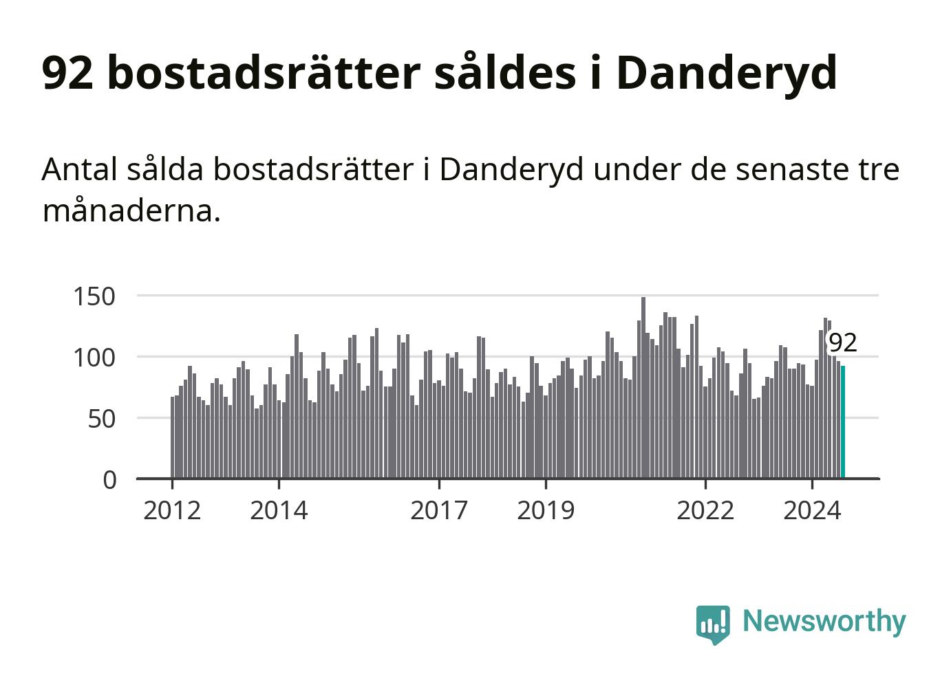 Sammanlagt såldes 92 bostadsrätter i Danderyds kommun mellan juni och augusti till ett genomsnittligt pris på 4,1 miljoner kronor. I fjol gjordes 90 affärer vid den här tiden på året.
