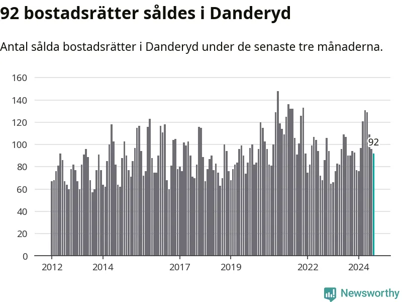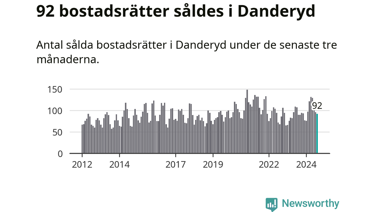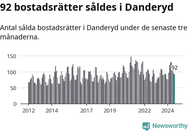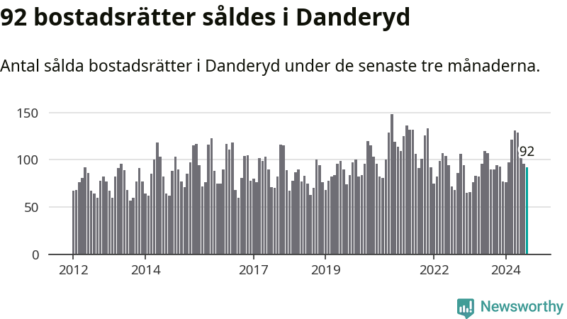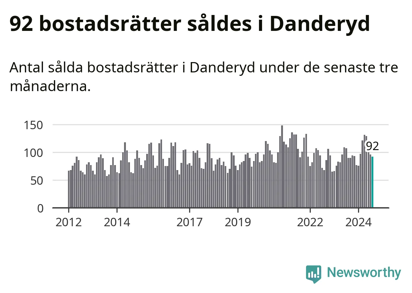Sammanlagt såldes 92 bostadsrätter i Danderyds kommun mellan juni och augusti till ett genomsnittligt pris på 4,1 miljoner kronor. I fjol gjordes 90 affärer vid den här tiden på året.