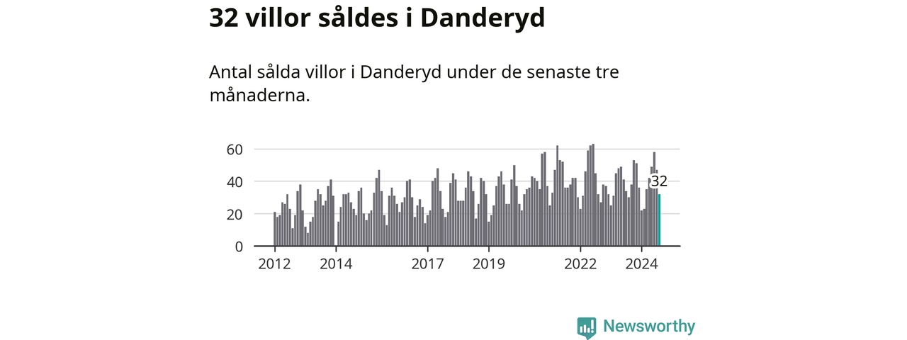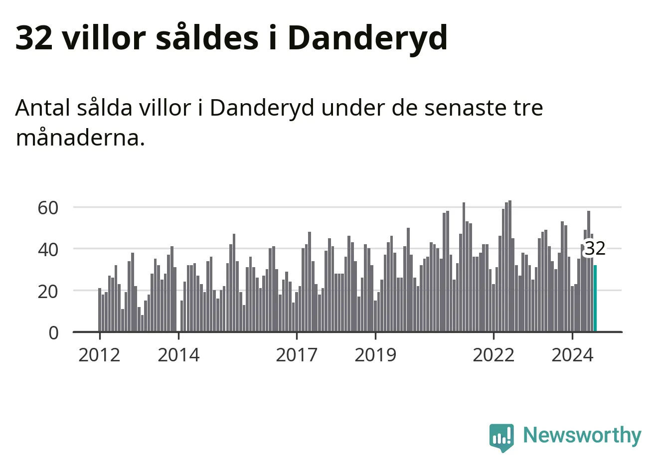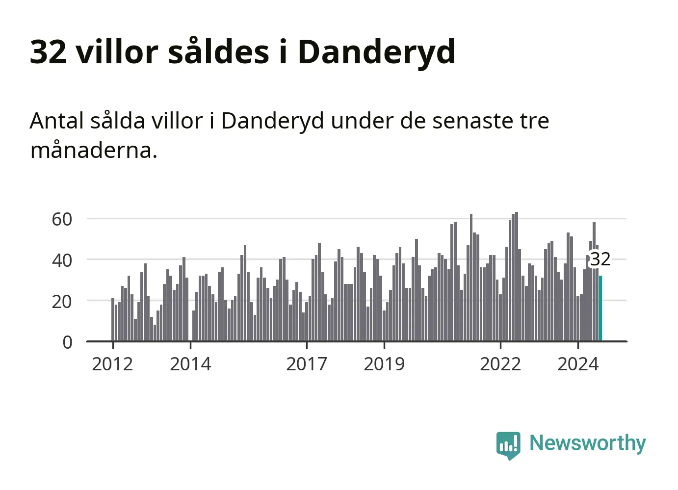 Mellan juni och augusti gjordes sammanlagt 32 affärer med villor i Danderyds kommun. Det kan jämföras med 30 vid motsvarande tid i fjol.