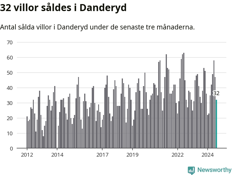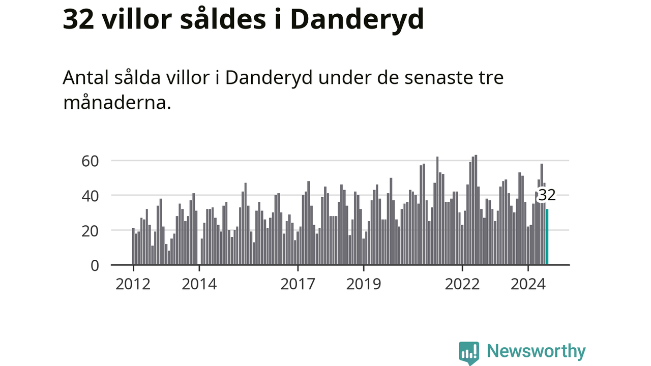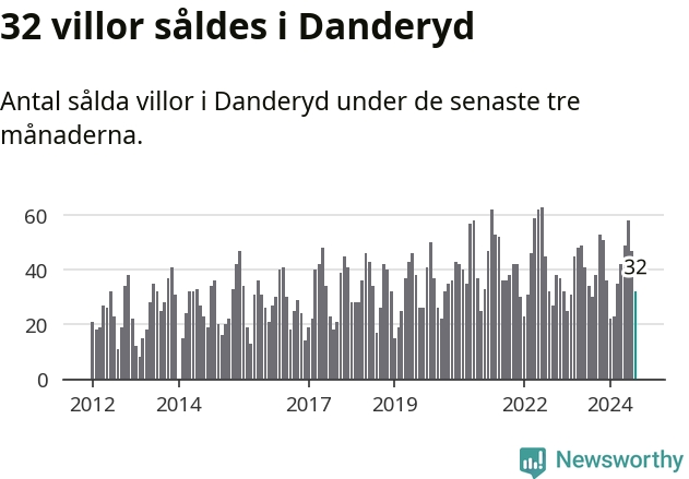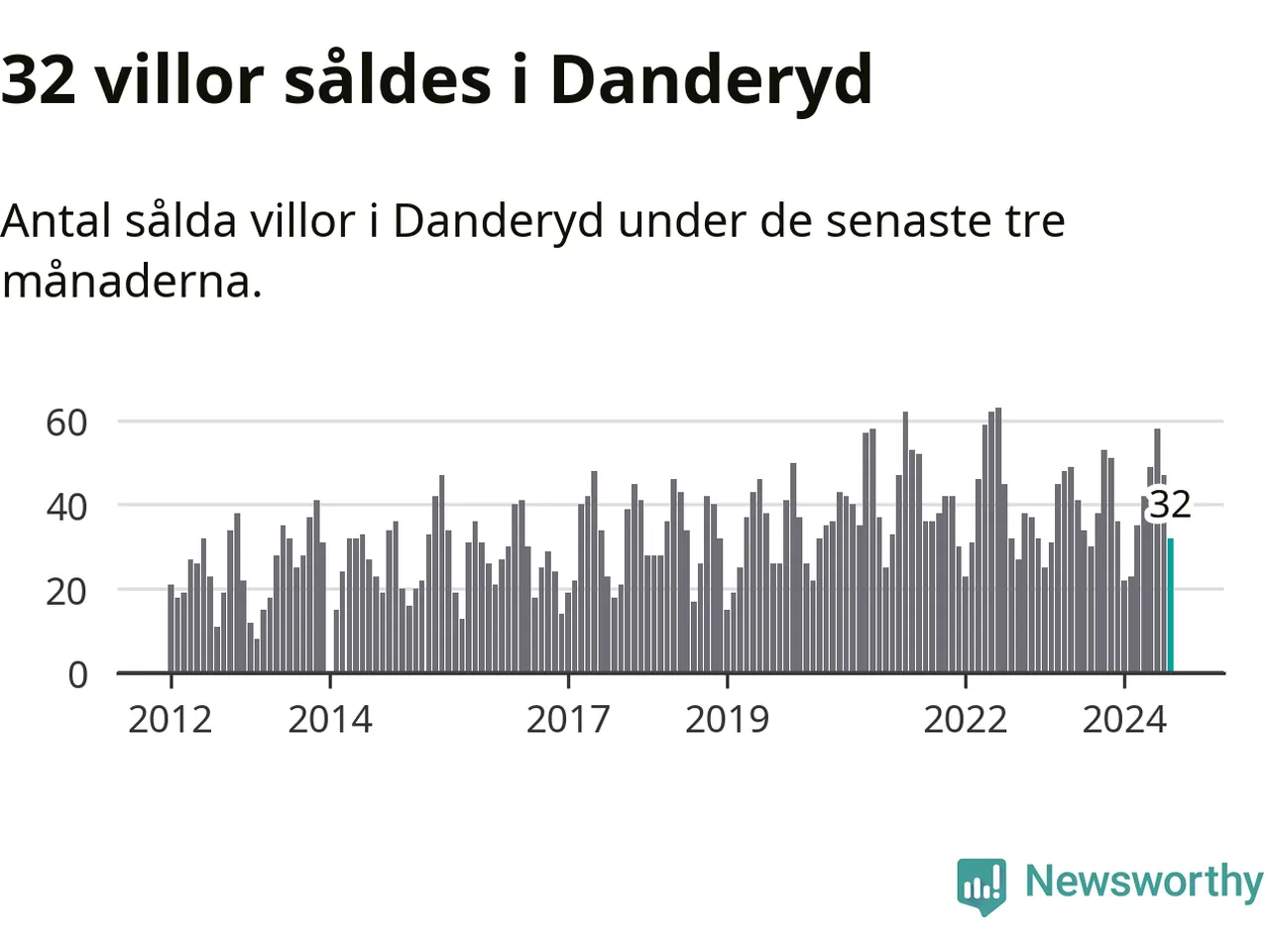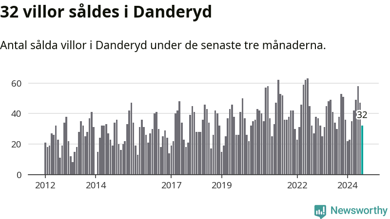 Mellan juni och augusti gjordes sammanlagt 32 affärer med villor i Danderyds kommun. Det kan jämföras med 30 vid motsvarande tid i fjol.