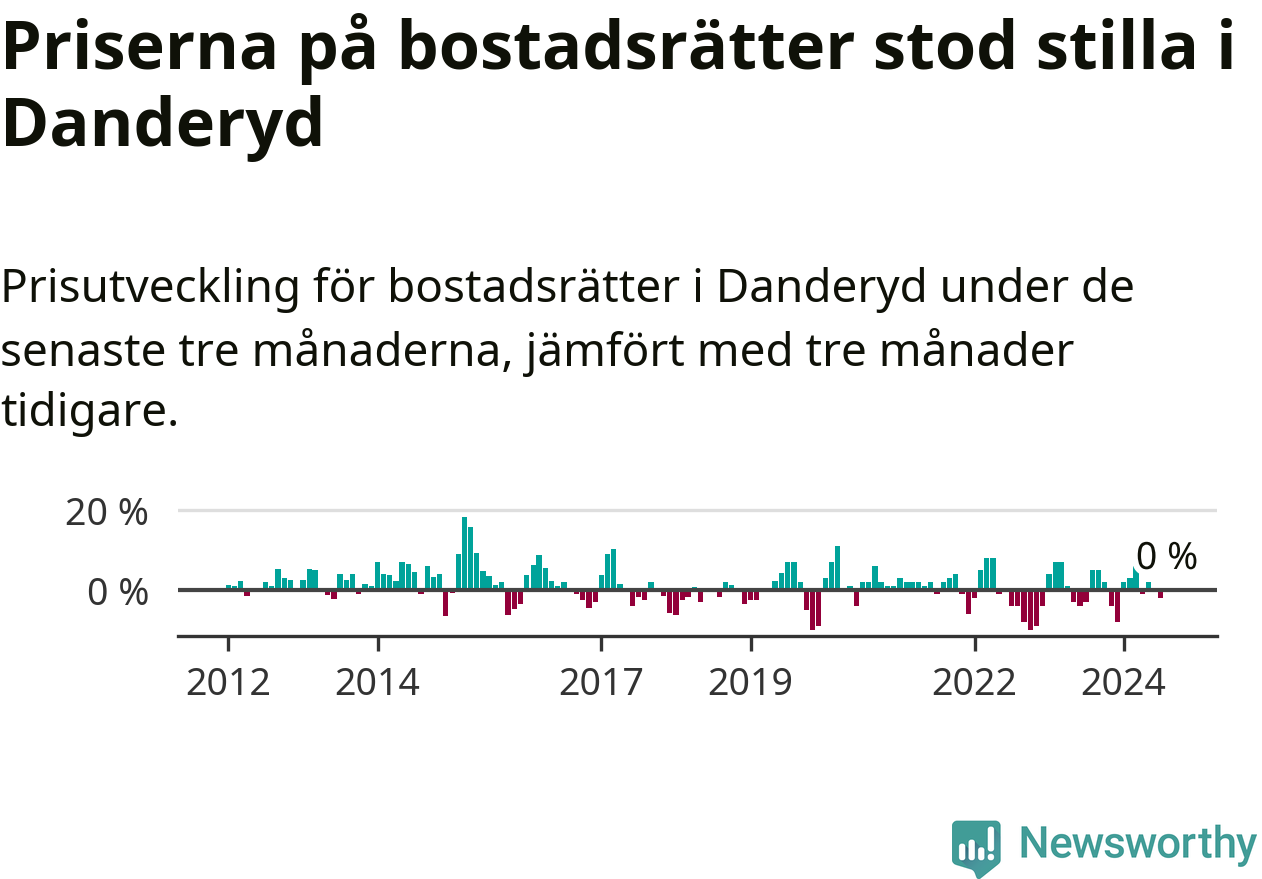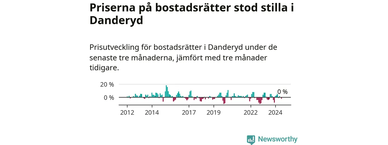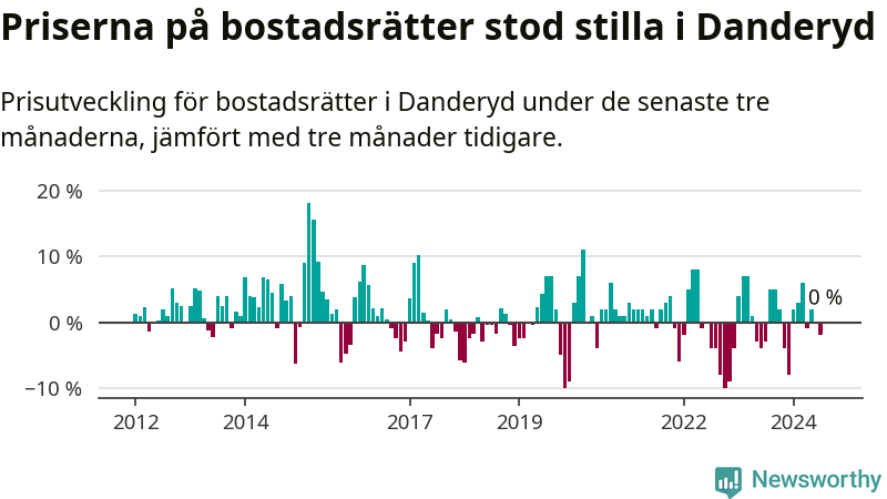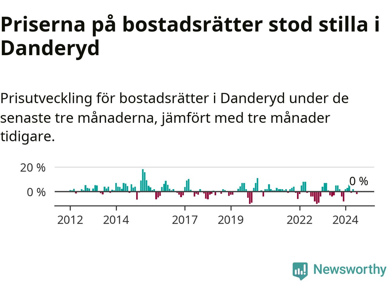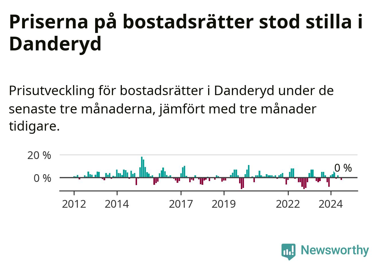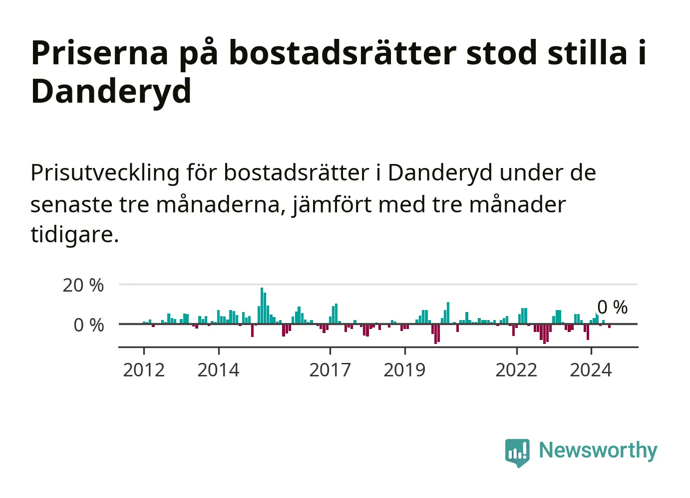 Priserna på bostadsrätter står i stort sett stilla i Danderyds kommun. Medelpriset på de på försäljningarna under de senaste tre månaderna låg på samma nivå som för tre månader sedan.