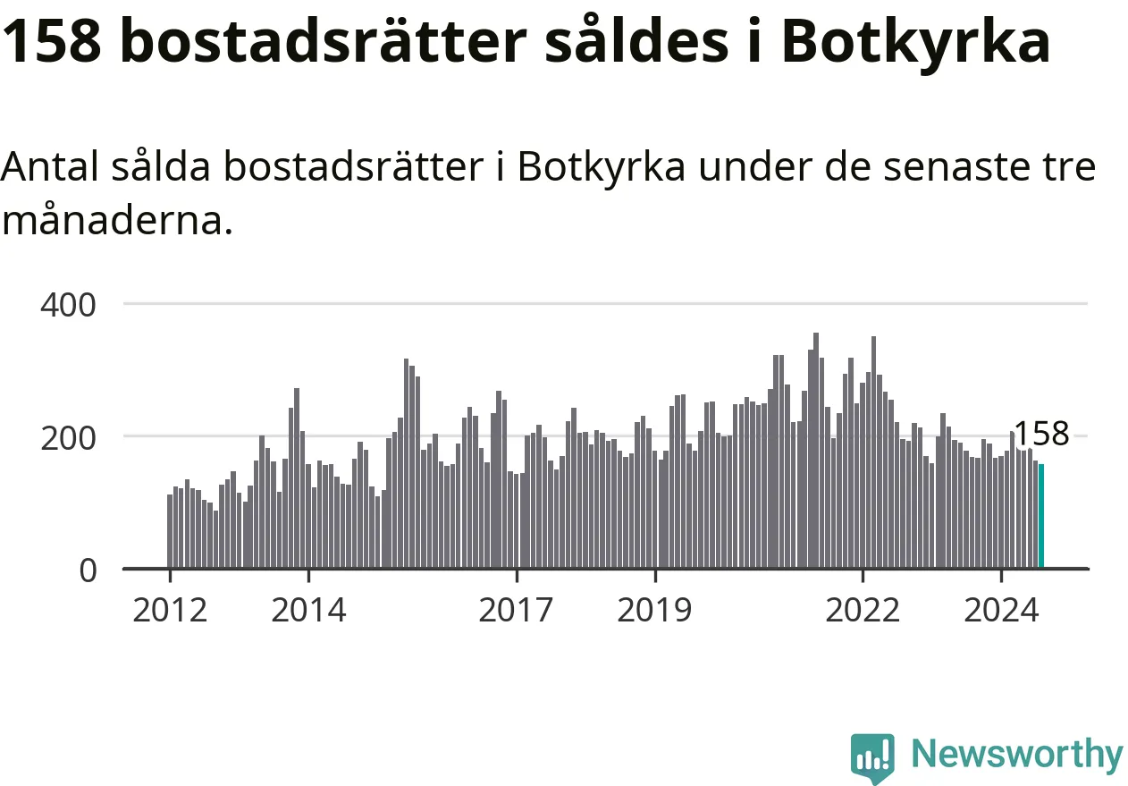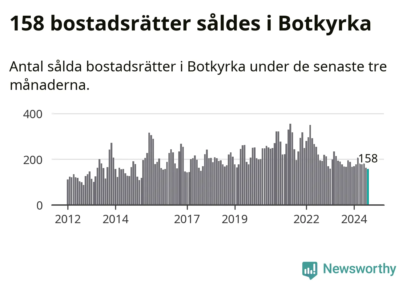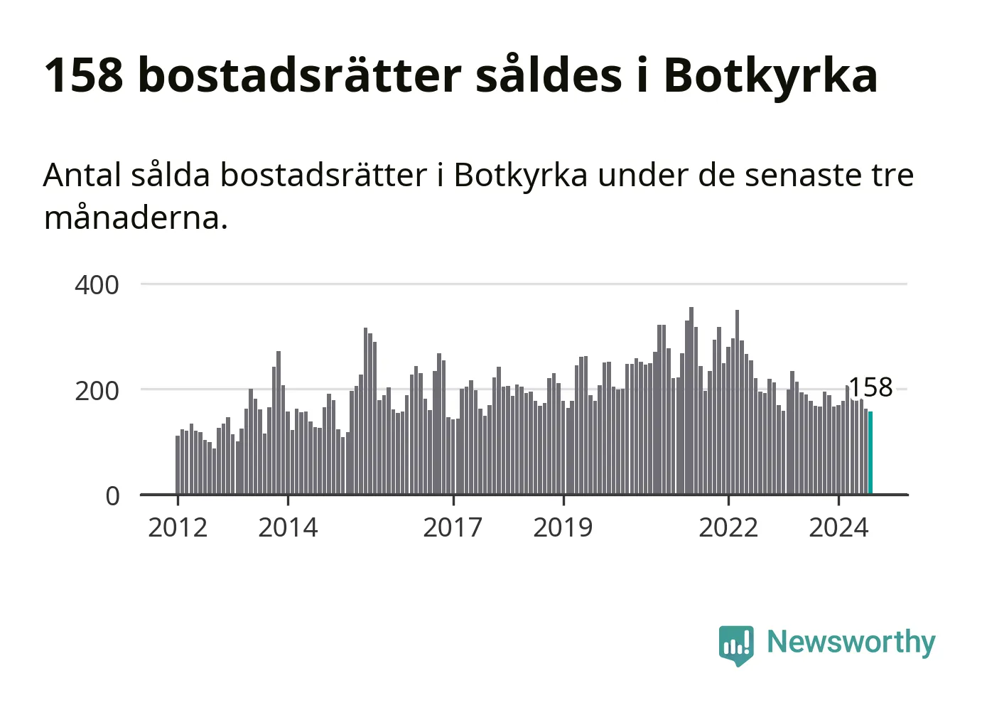 Mellan juni och augusti såldes 158 bostadsrätter i Botkyrka kommun. Det är färre än någon tremånadersperiod sedan 2017.
