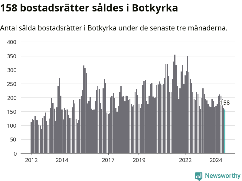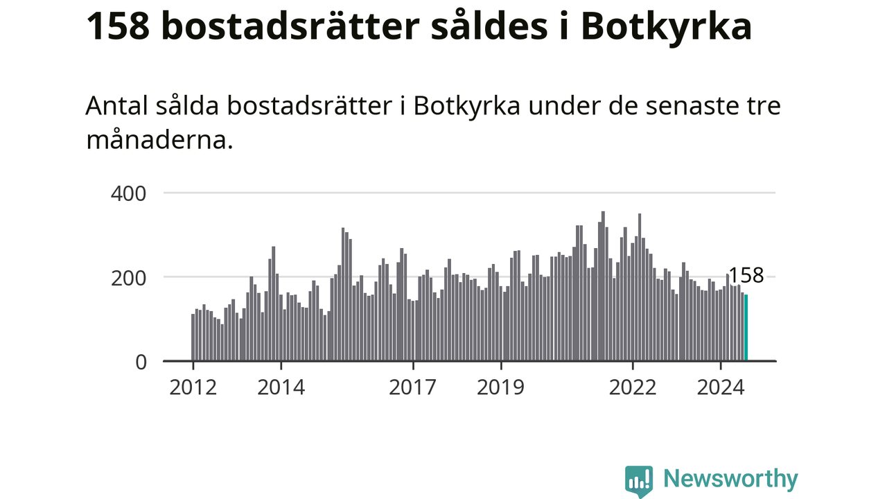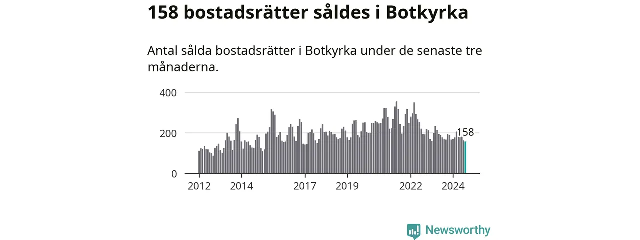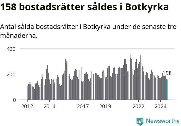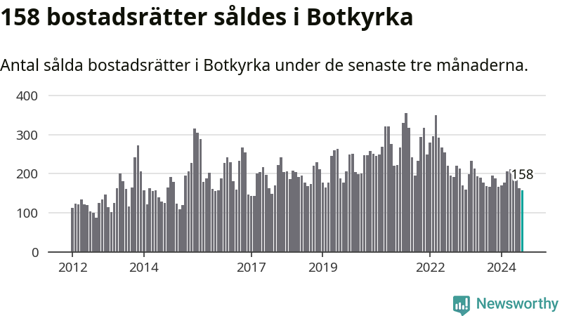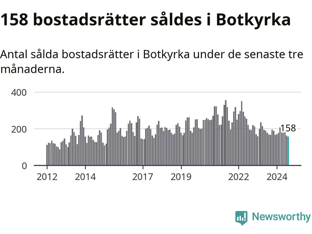 Mellan juni och augusti såldes 158 bostadsrätter i Botkyrka kommun. Det är färre än någon tremånadersperiod sedan 2017.