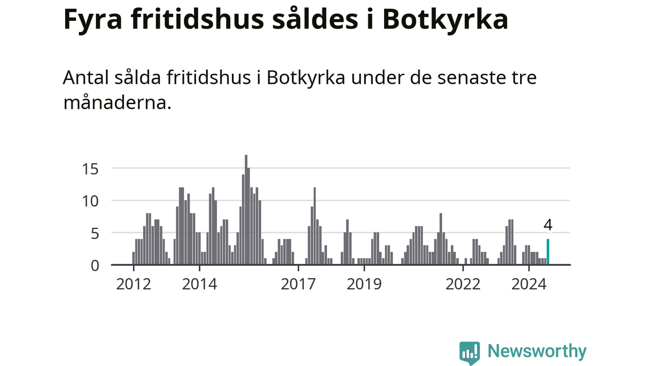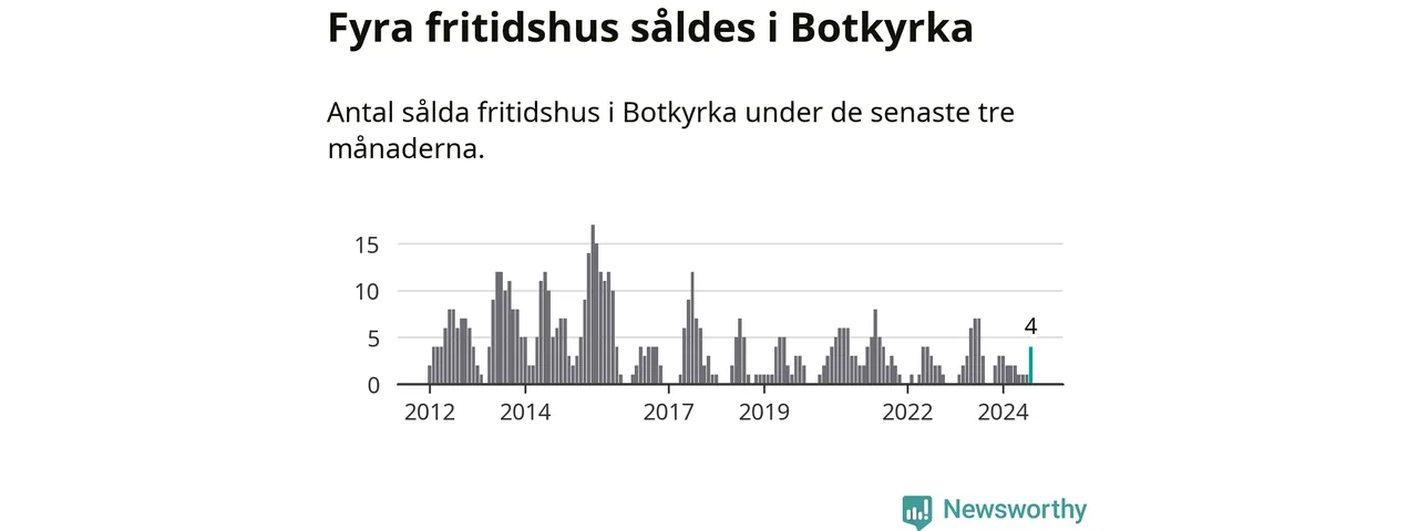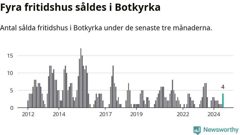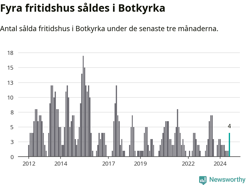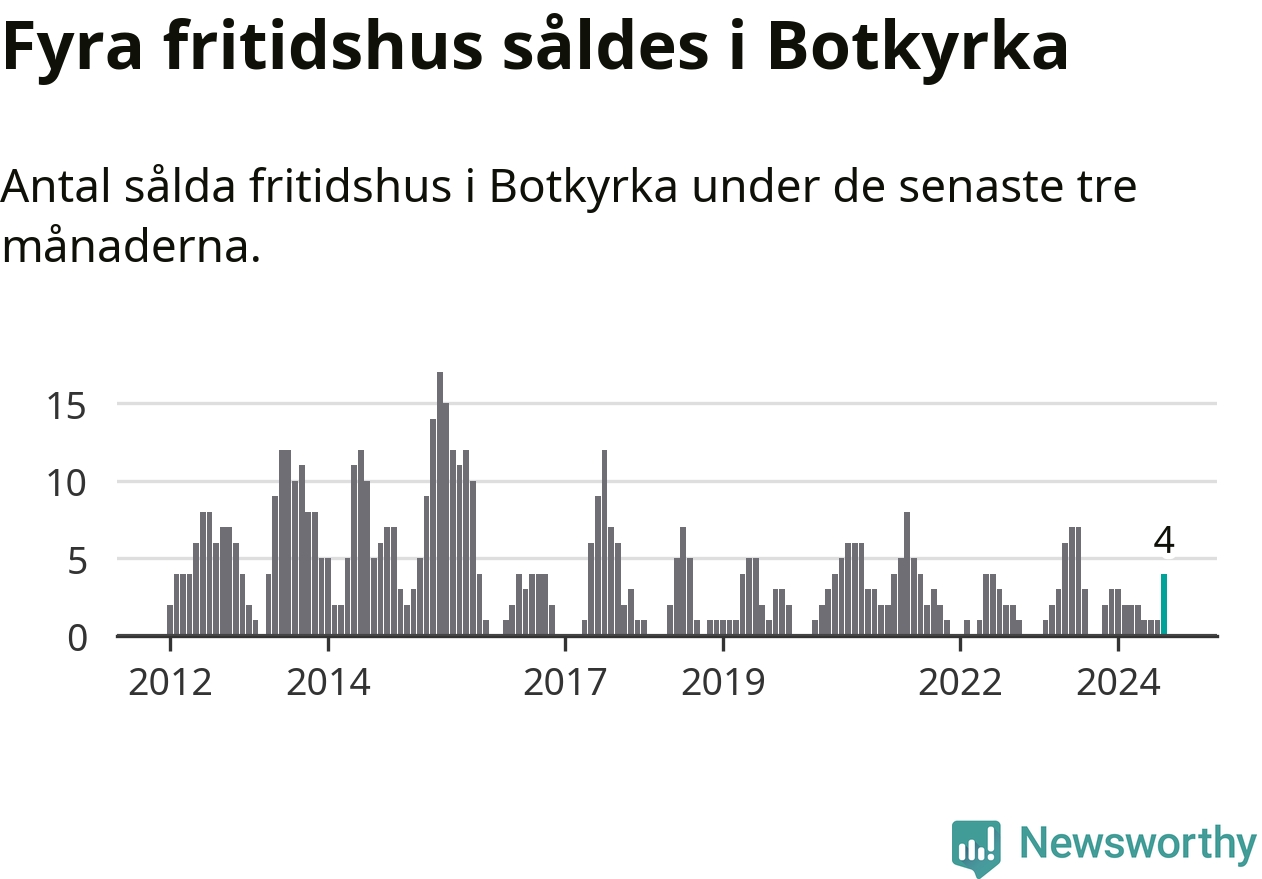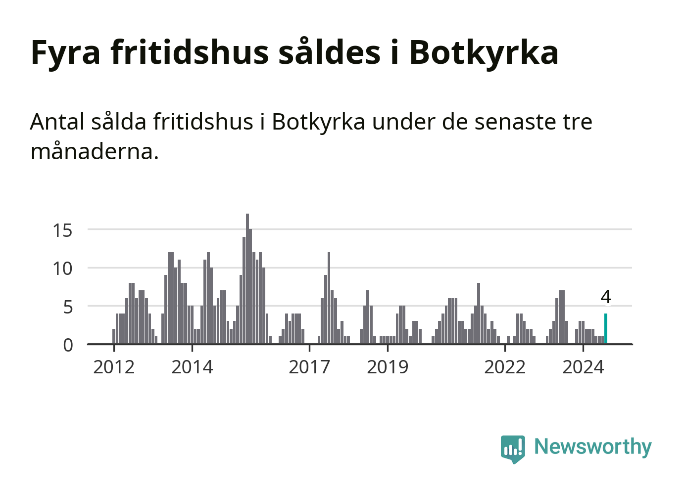 Mellan juni och augusti gjordes sammanlagt fyra affärer med fritidshus i Botkyrka kommun. Det kan jämföras med tre vid motsvarande tid i fjol.
