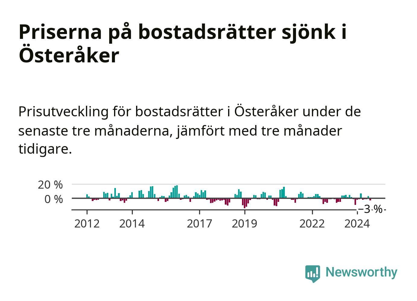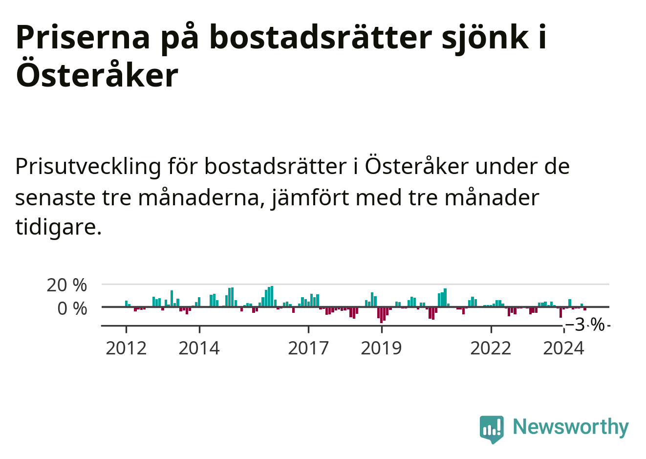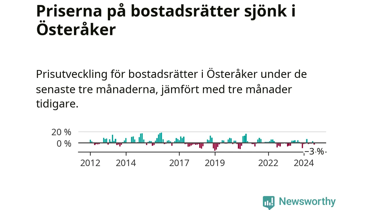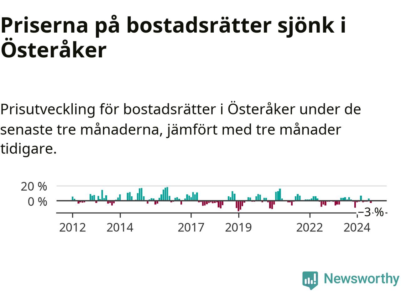 Priserna på bostadsrätter har gått ner i Österåkers kommun. Medelpriset på försäljningarna under de senaste tre månaderna visar på en nedgång med 3 procent.