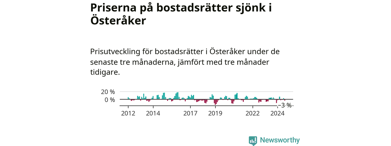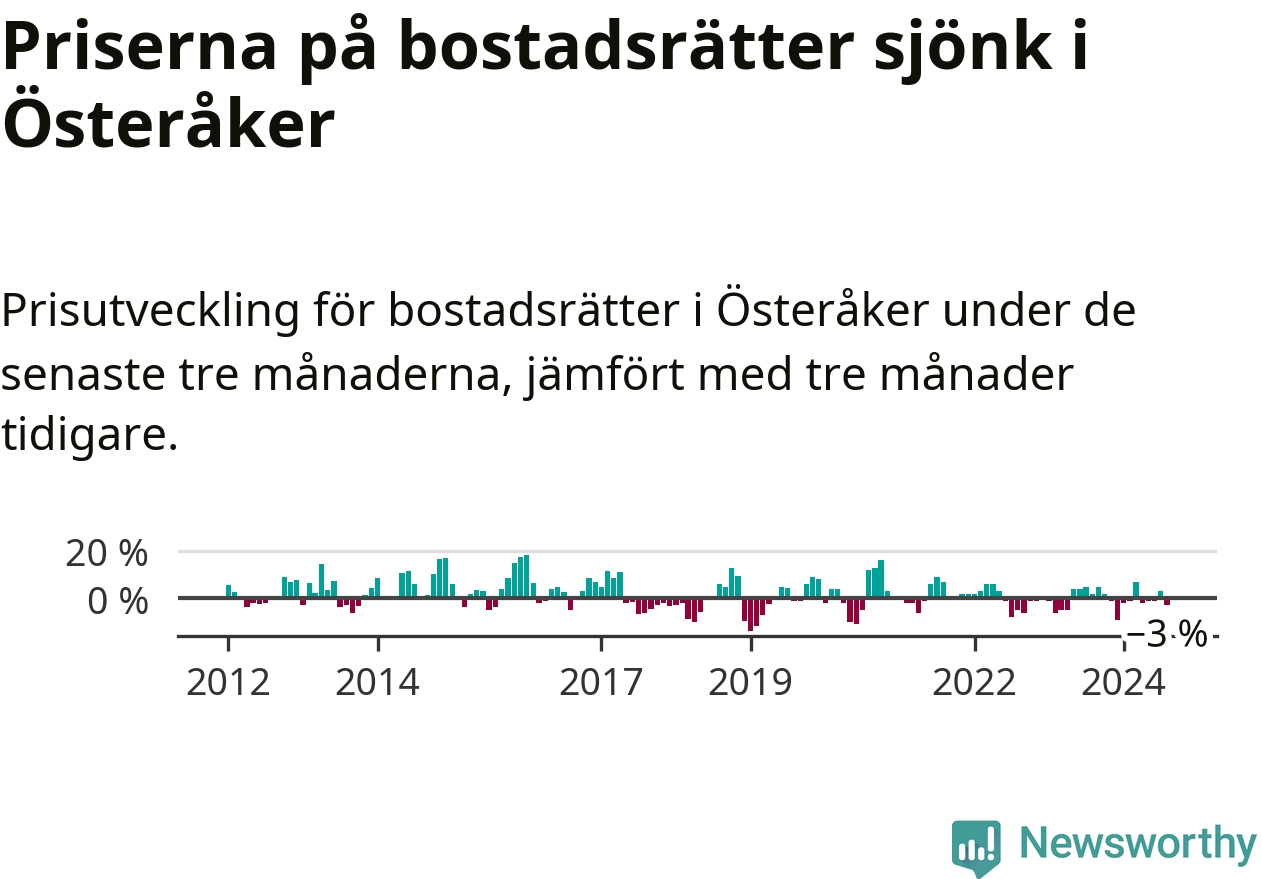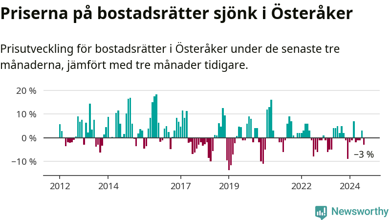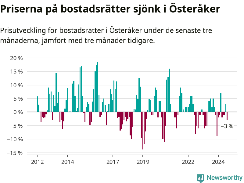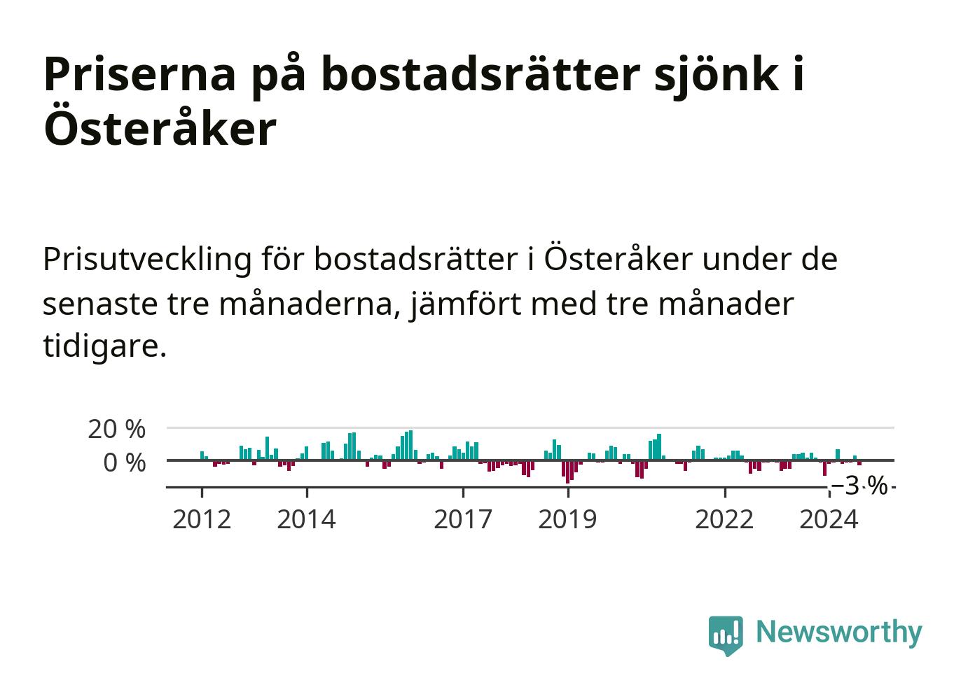 Priserna på bostadsrätter har gått ner i Österåkers kommun. Medelpriset på försäljningarna under de senaste tre månaderna visar på en nedgång med 3 procent.