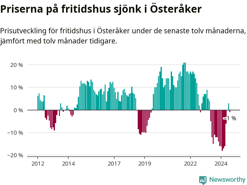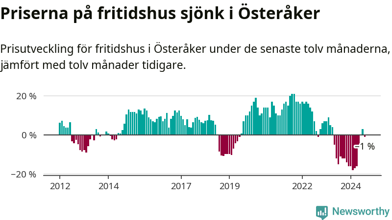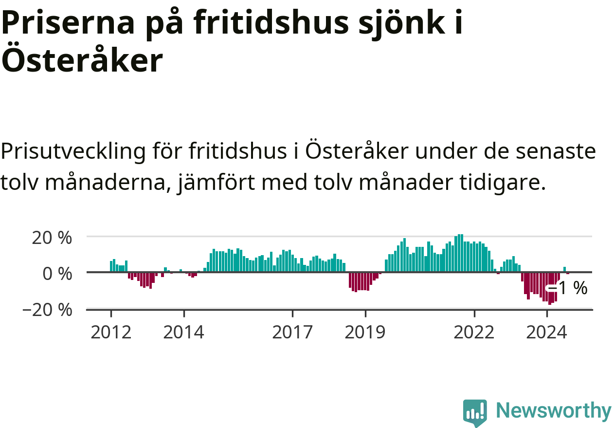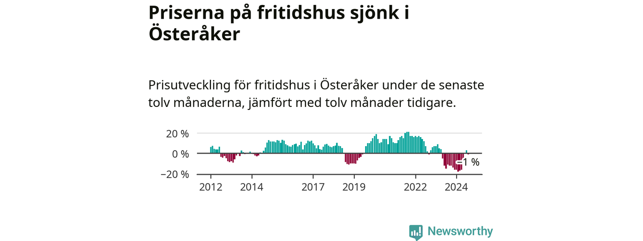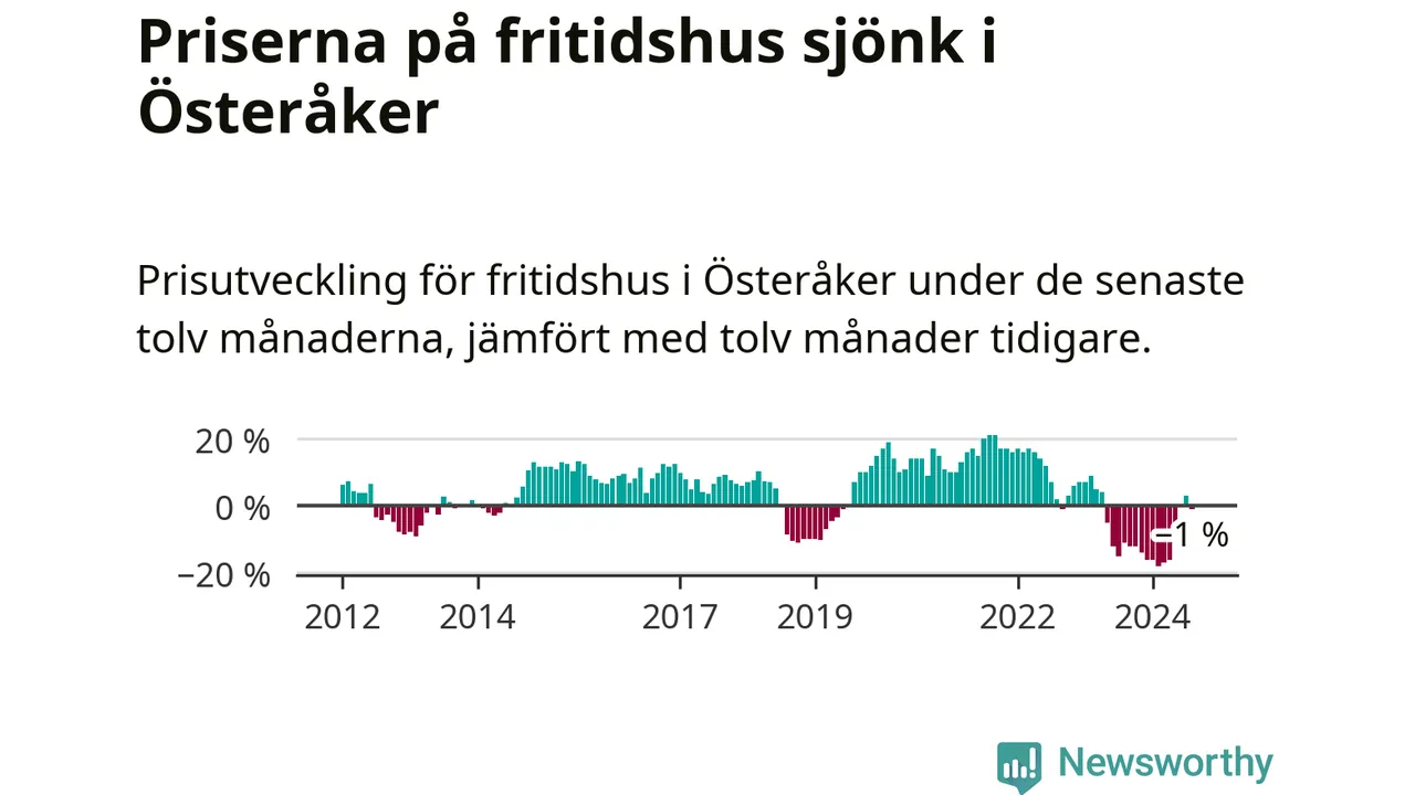Priserna på fritidshus har gått ner i Österåkers kommun. Medelpriset på försäljningarna under de senaste tolv månaderna visar på en nedgång med 1 procent.
